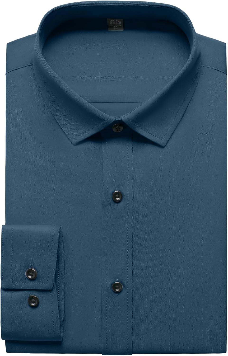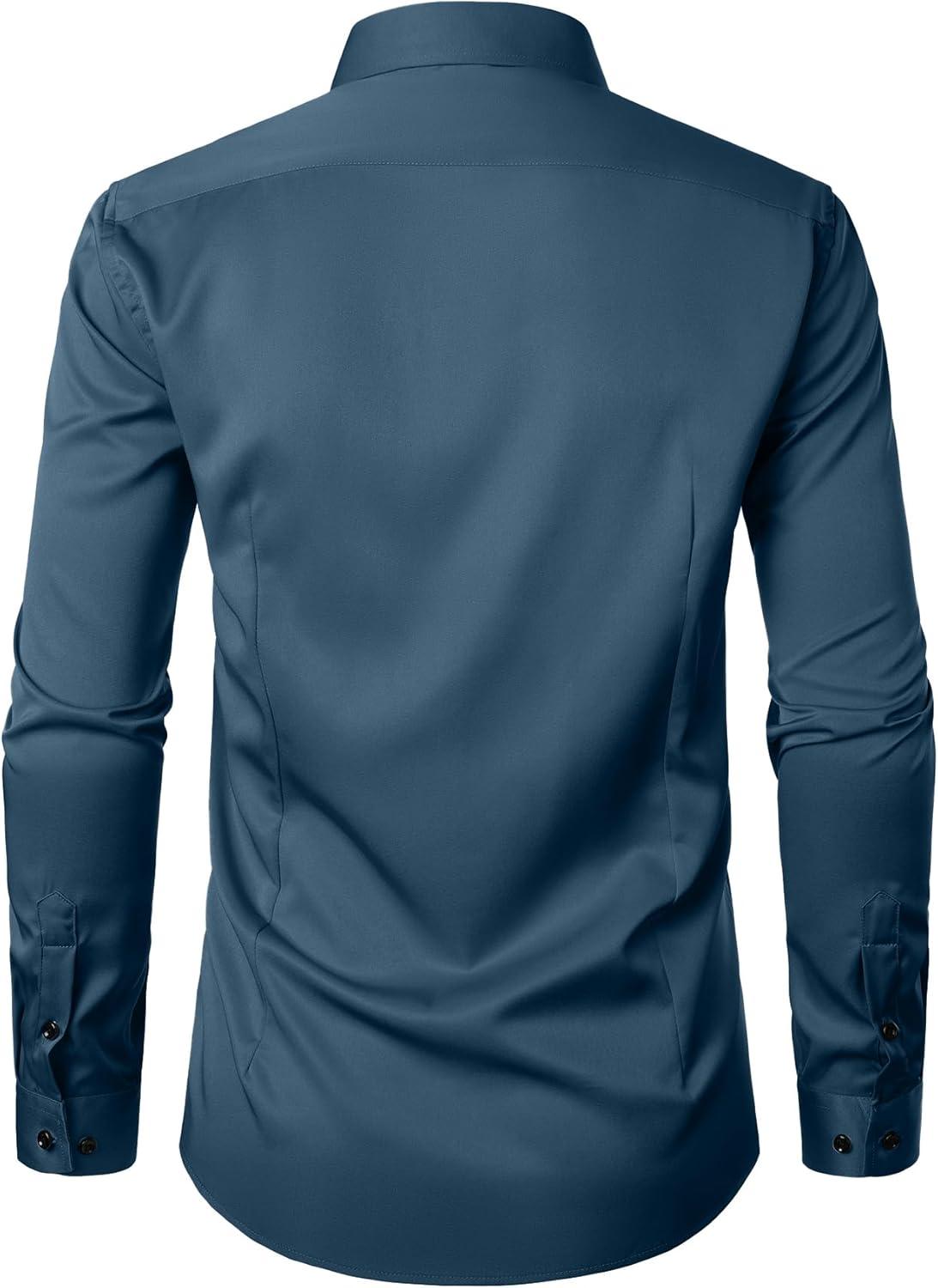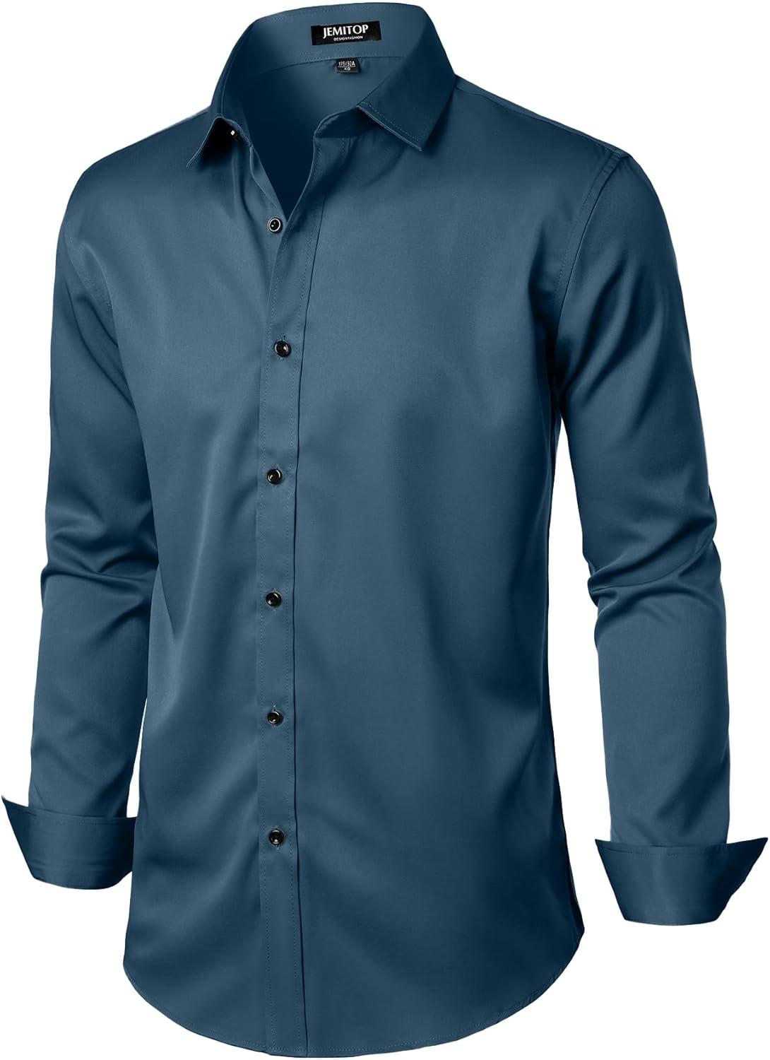 JEMITOP Men's Stretch Wrinkle Free Dress Shirt Formal Prom Wedding Long Sleeve Button Down Shirts(Dark Blue)
