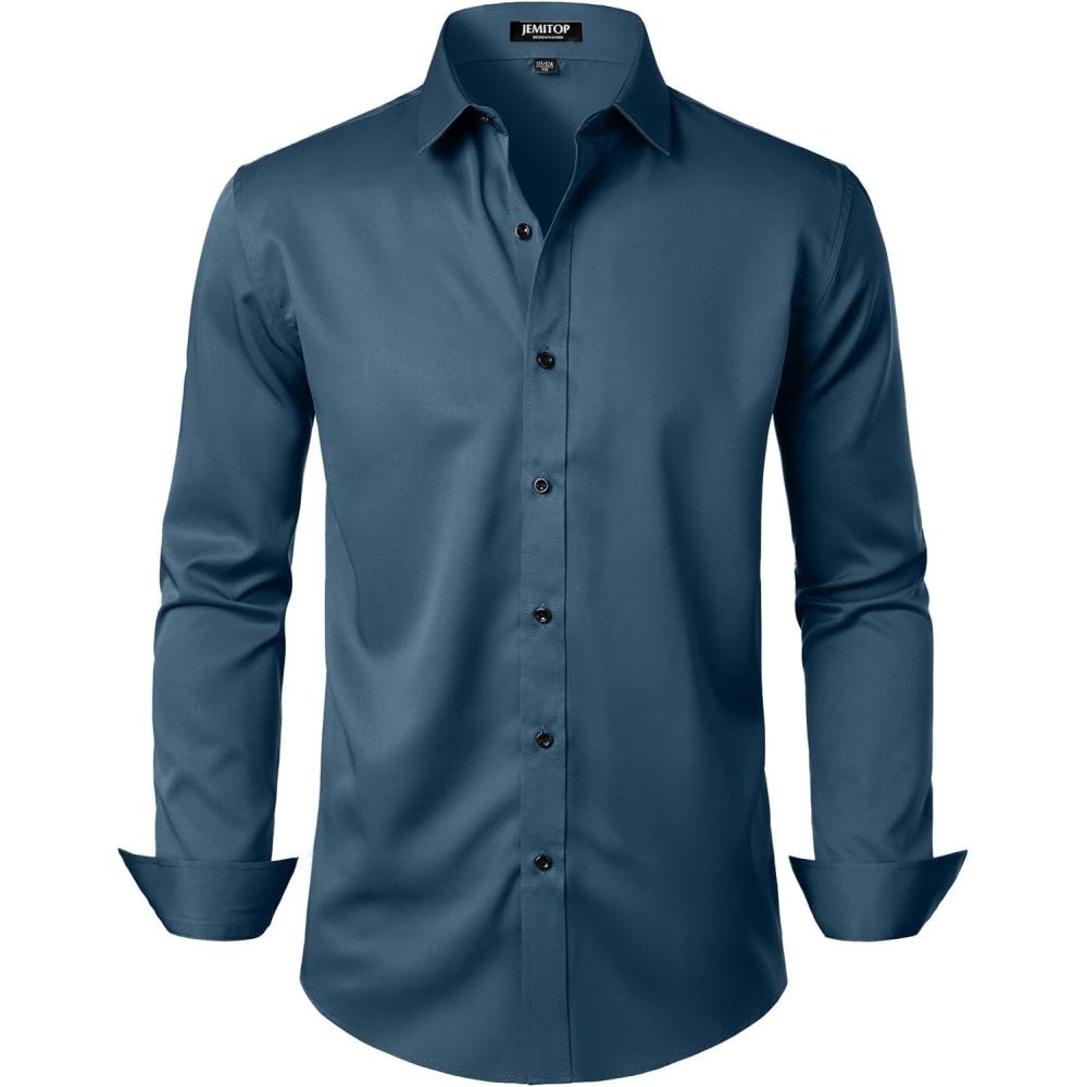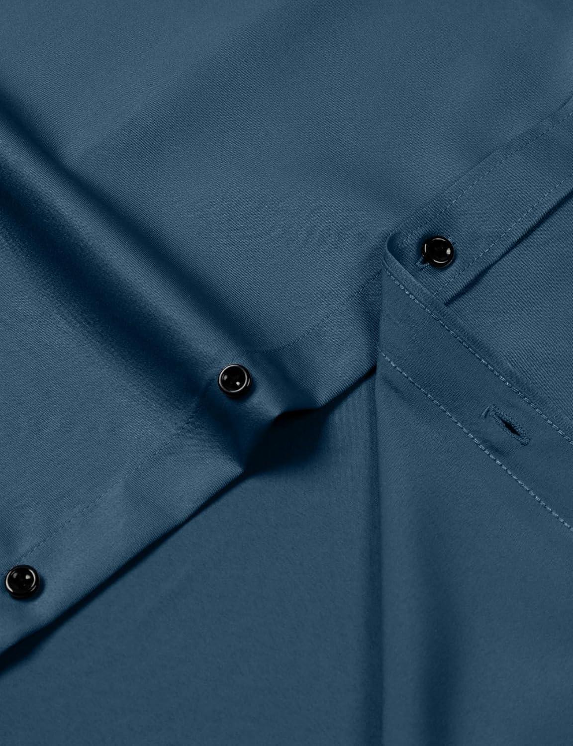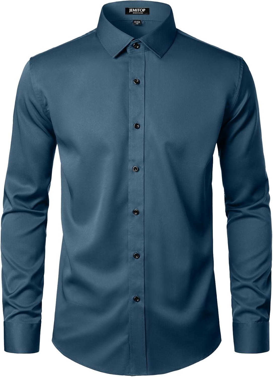 JEMITOP Men's Stretch Wrinkle Free Dress Shirt Formal Prom Wedding Long Sleeve Button Down Shirts(Dark Blue)