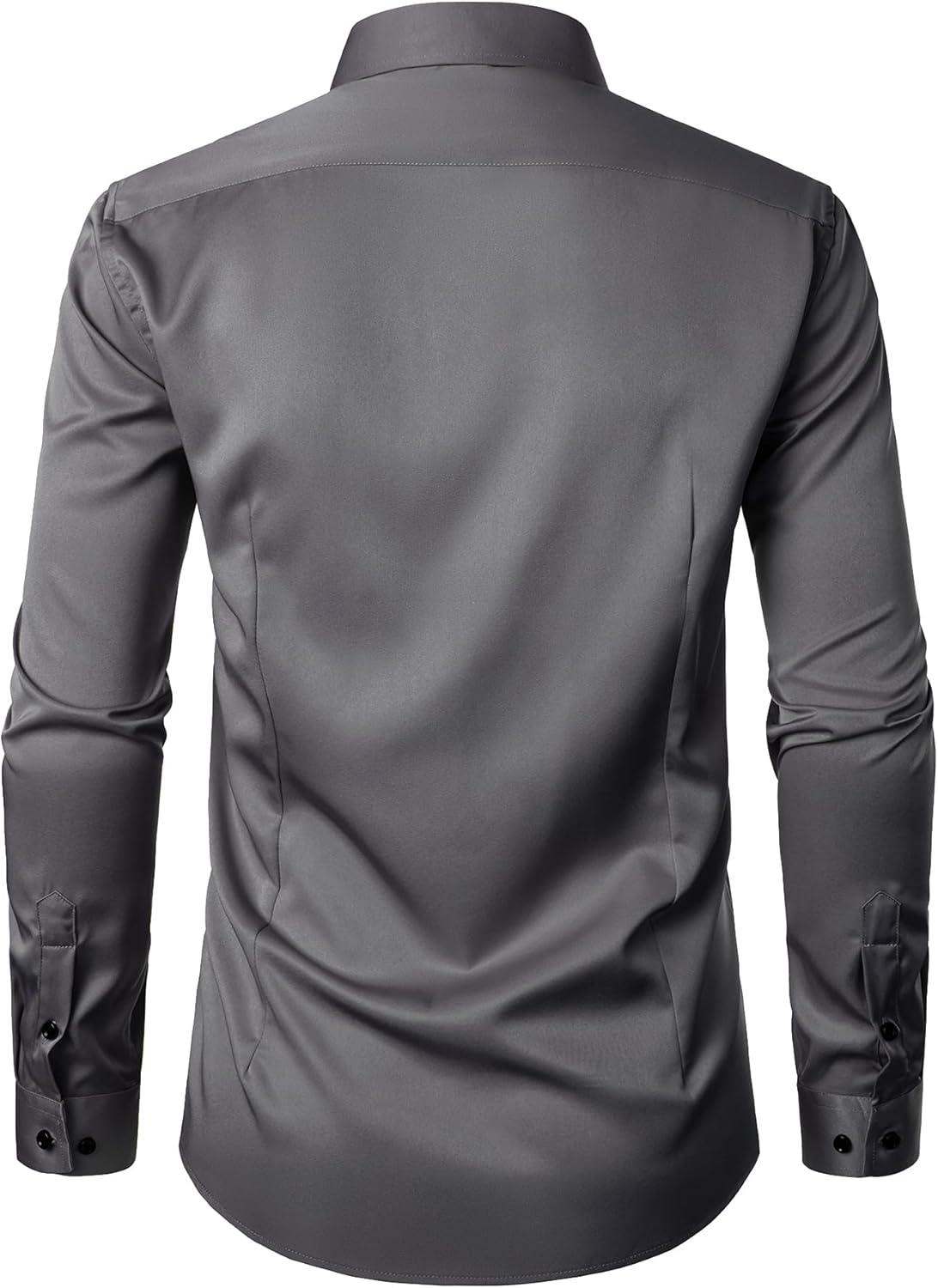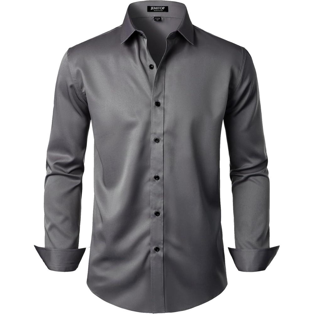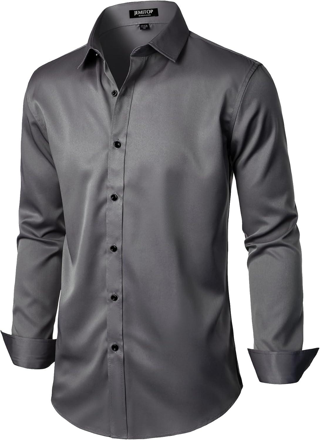 JEMITOP Men's Stretch Wrinkle Free Dress Shirt Formal Prom Wedding Long Sleeve Button Down Shirts(Dark Grey)
