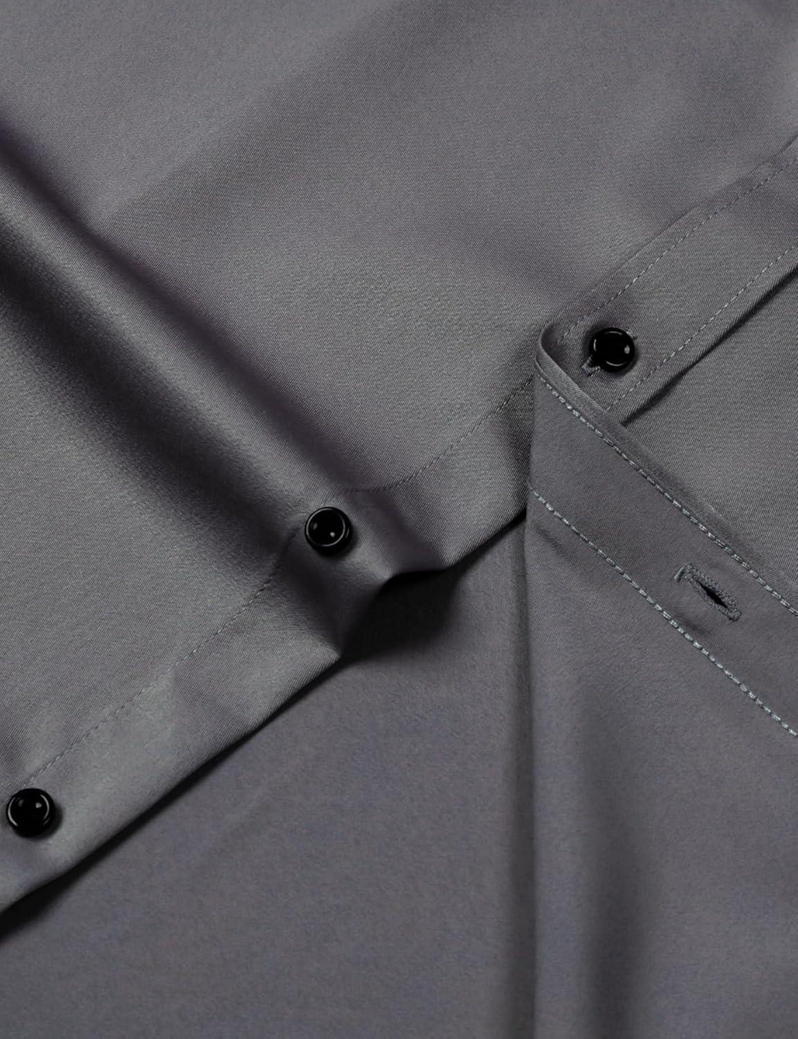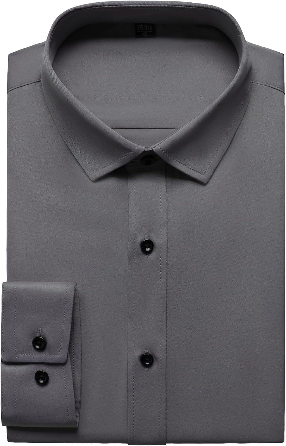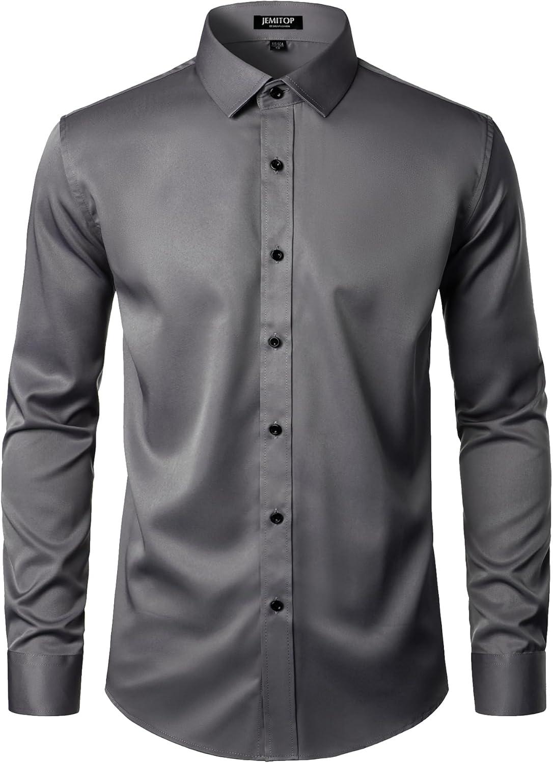 JEMITOP Men's Stretch Wrinkle Free Dress Shirt Formal Prom Wedding Long Sleeve Button Down Shirts(Dark Grey)