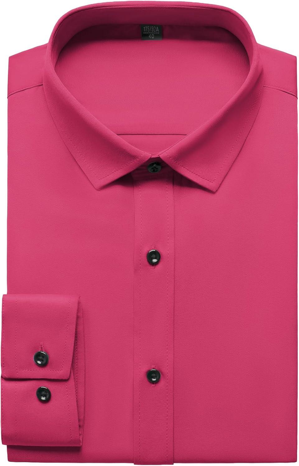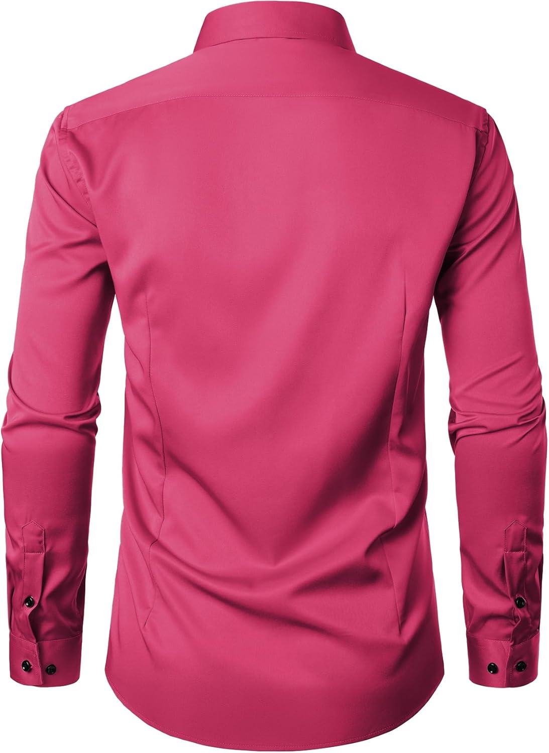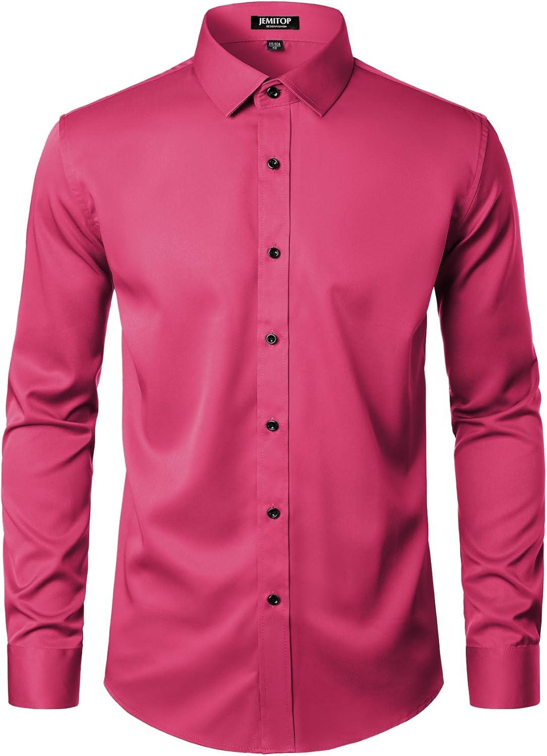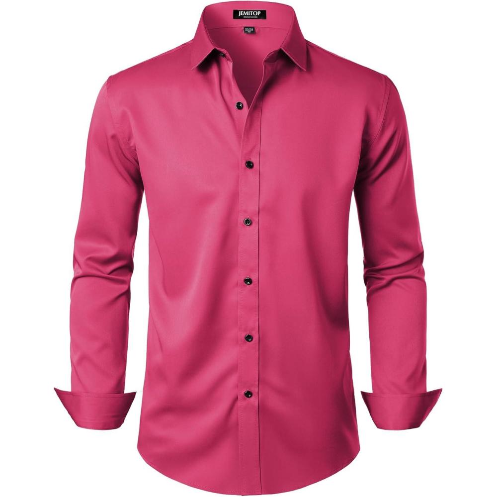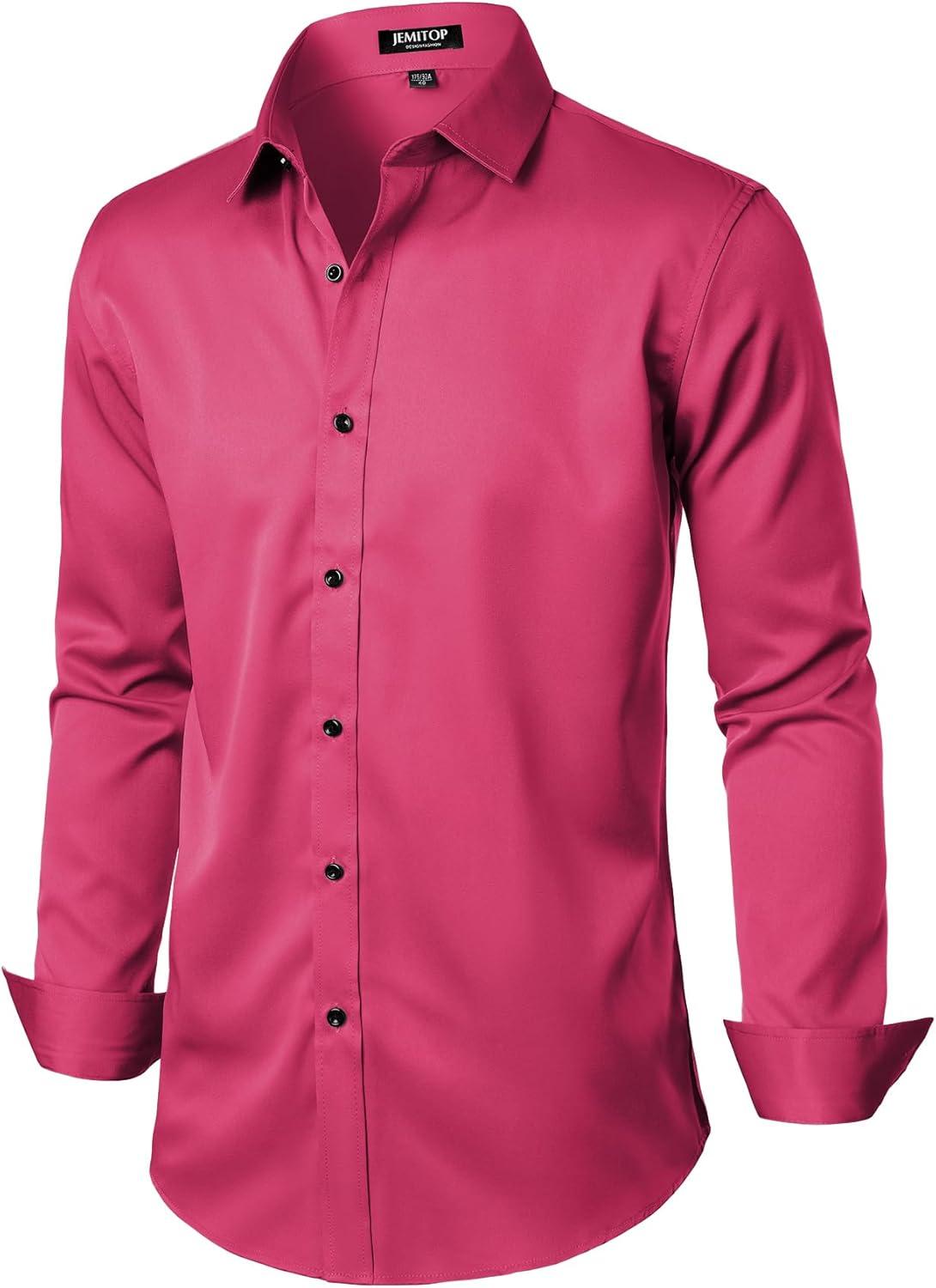 JEMITOP Men's Stretch Wrinkle Free Dress Shirt Formal Prom Wedding Long Sleeve Button Down Shirts(Hot Pink)