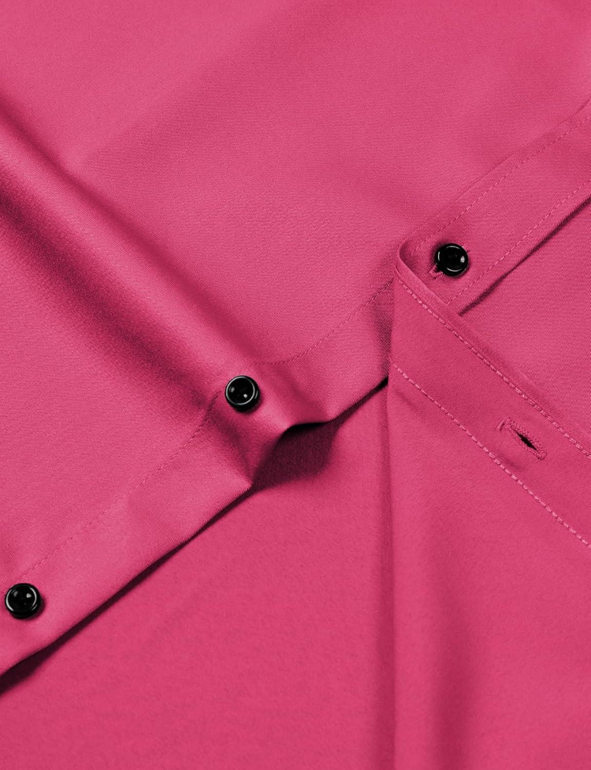 JEMITOP Men’s Stretch Wrinkle Free Dress Shirt Formal Prom Wedding Long Sleeve Button Down Shirts(Hot Pink)