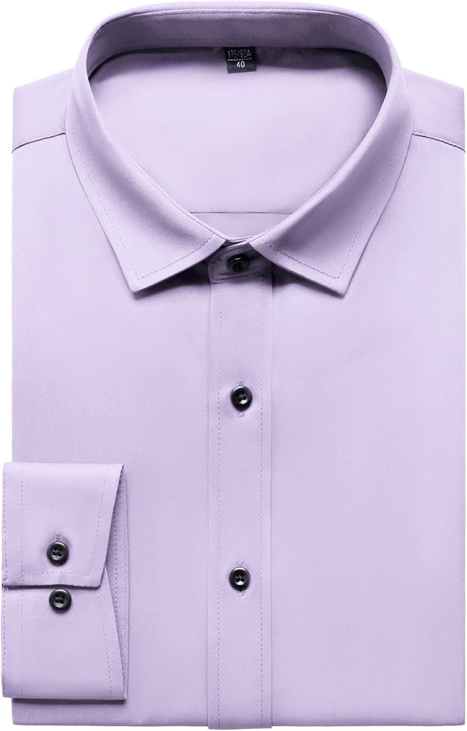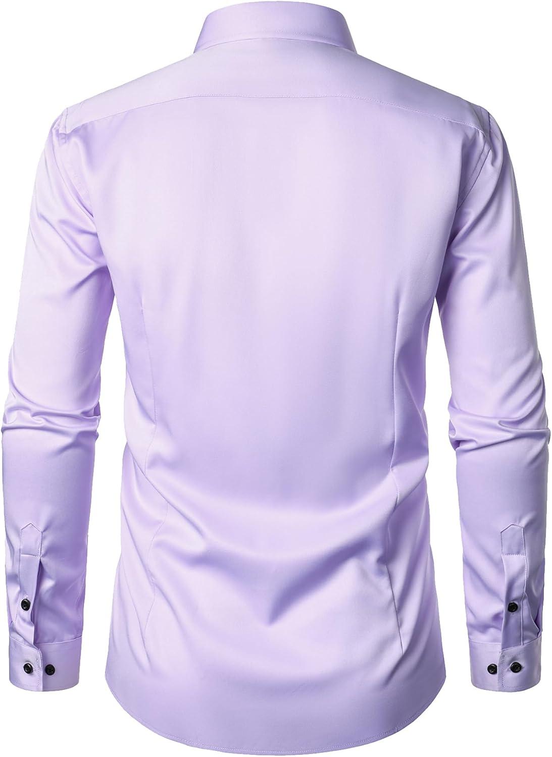 JEMITOP Men's Stretch Wrinkle Free Dress Shirt Formal Prom Wedding Long Sleeve Button Down Shirts(Lavender Purple)
