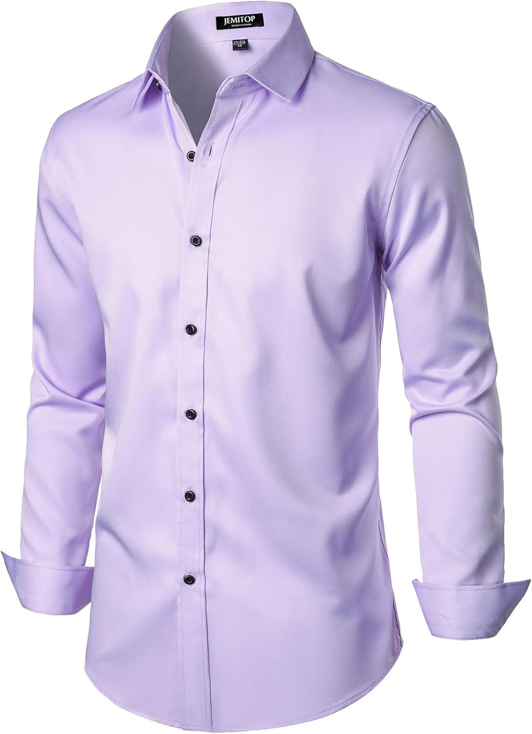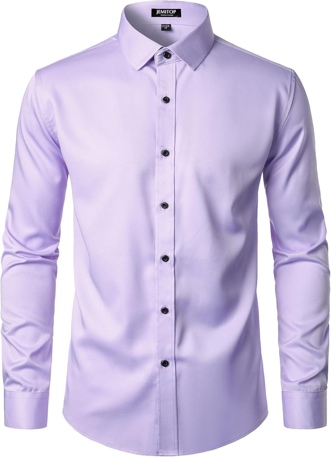 imageJEMITOP Mens Stretch Wrinkle Free Dress Shirt Formal Prom Wedding Long Sleeve Button Down ShirtsLavender Purple