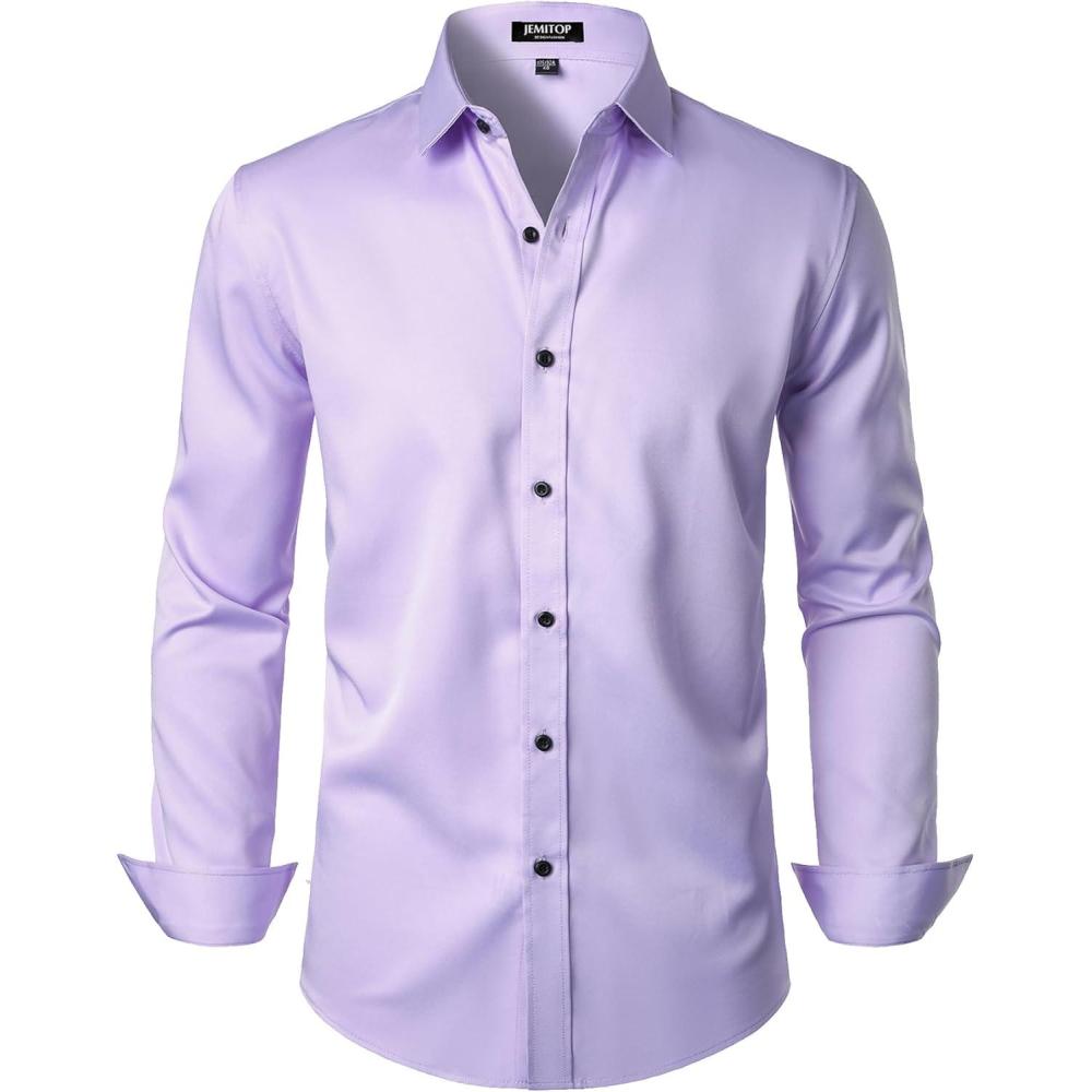JEMITOP Men’s Stretch Wrinkle Free Dress Shirt Formal Prom Wedding Long Sleeve Button Down Shirts(Lavender Purple)