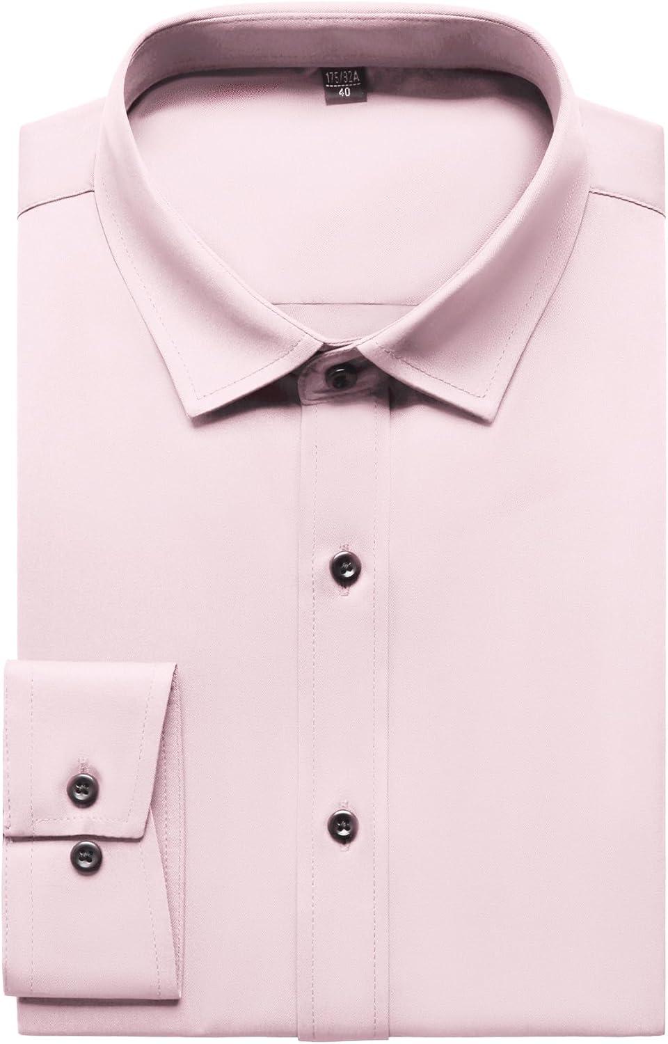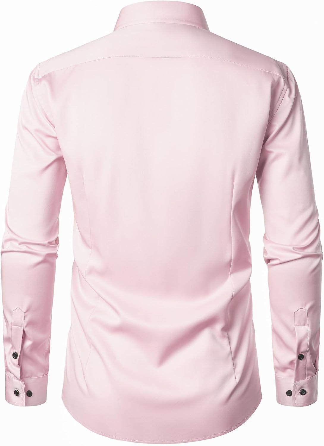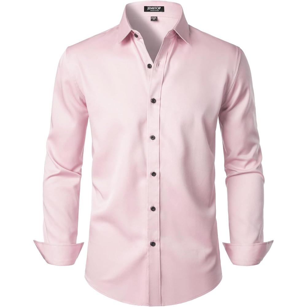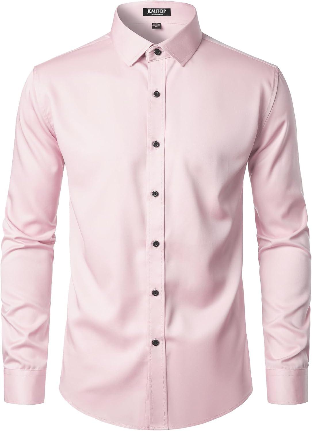 JEMITOP Men's Stretch Wrinkle Free Dress Shirt Formal Prom Wedding Long Sleeve Button Down Shirts(Pink)