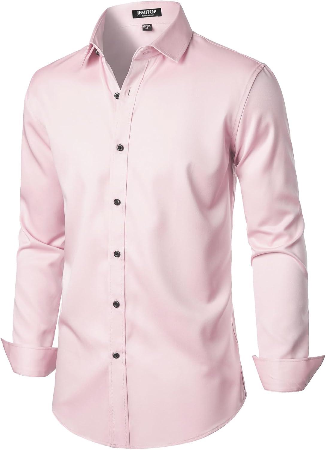 imageJEMITOP Mens Stretch Wrinkle Free Dress Shirt Formal Prom Wedding Long Sleeve Button Down ShirtsPink
