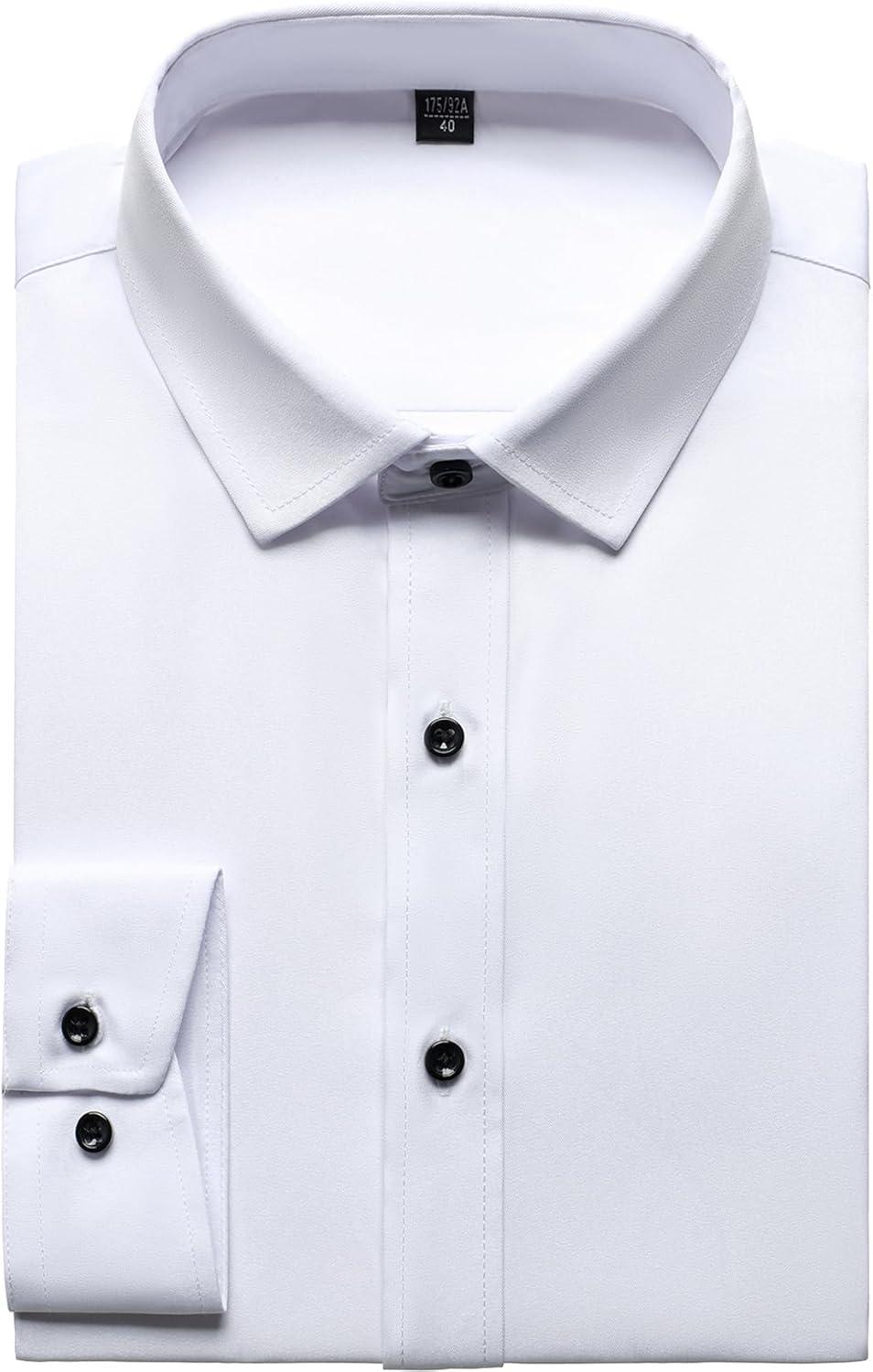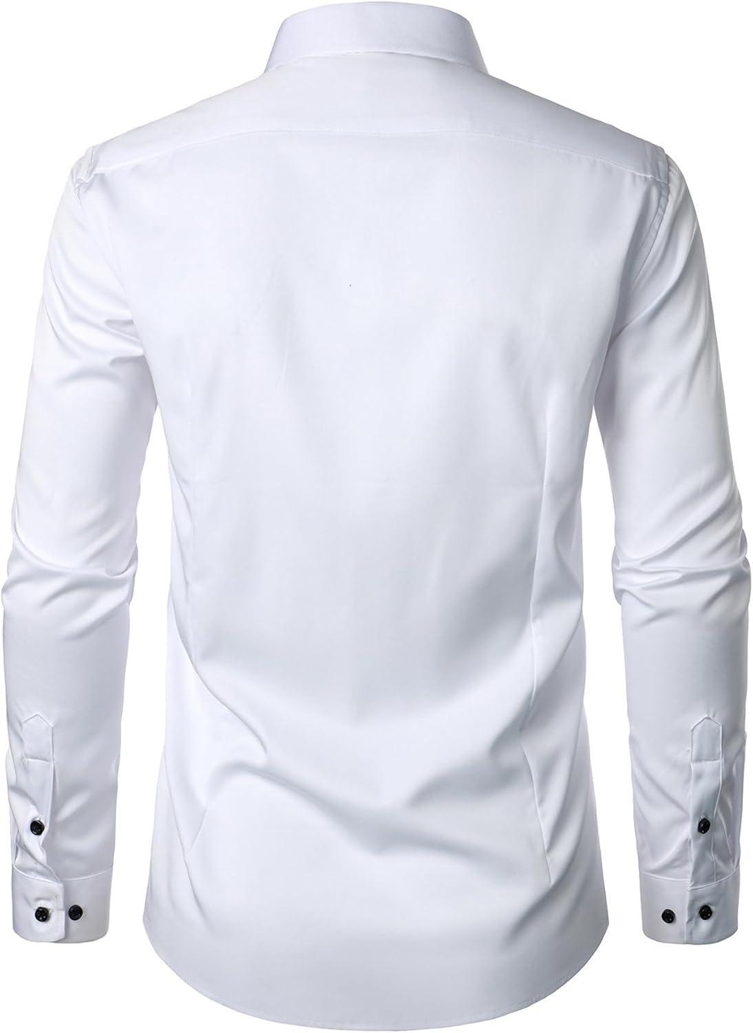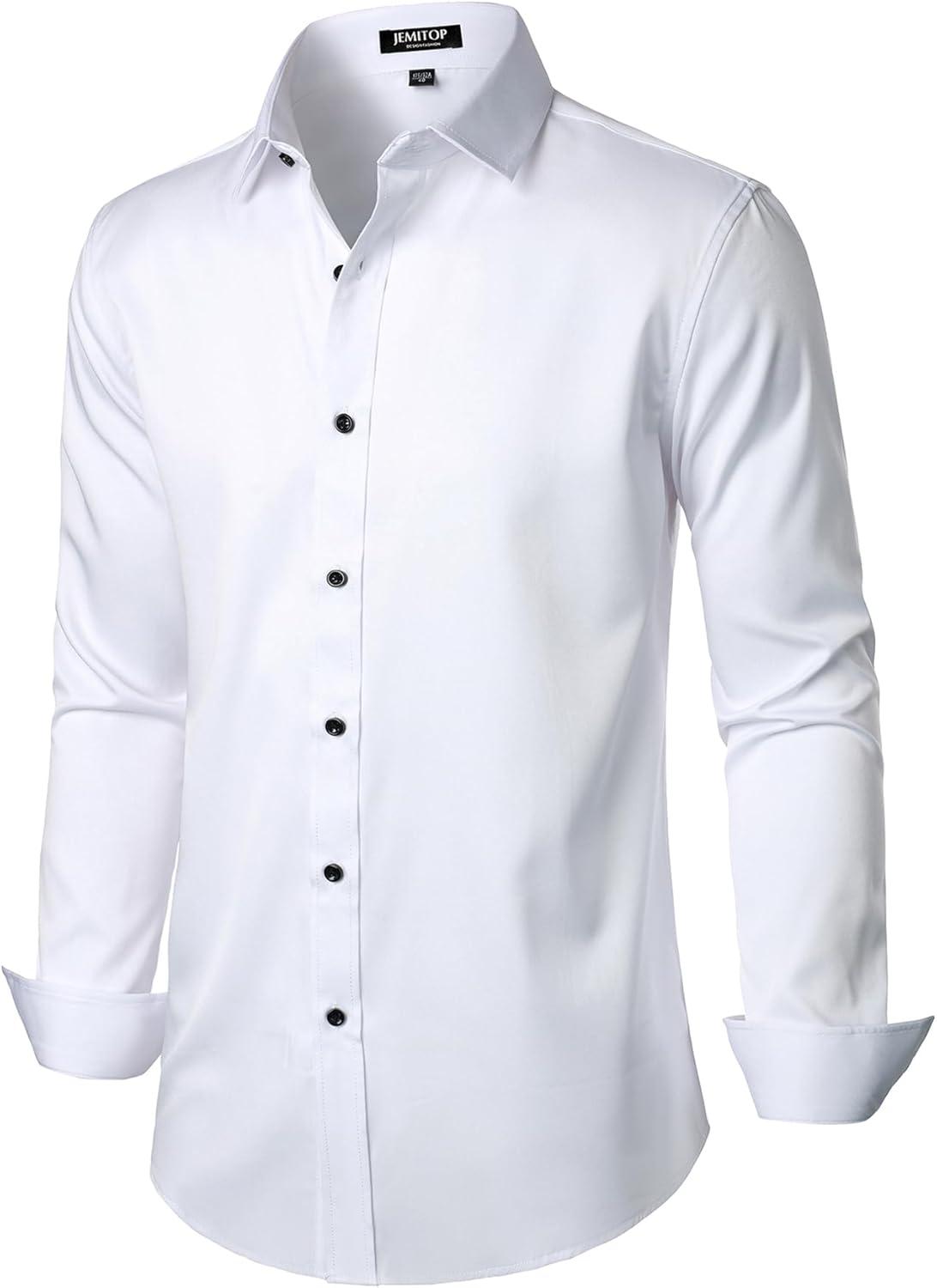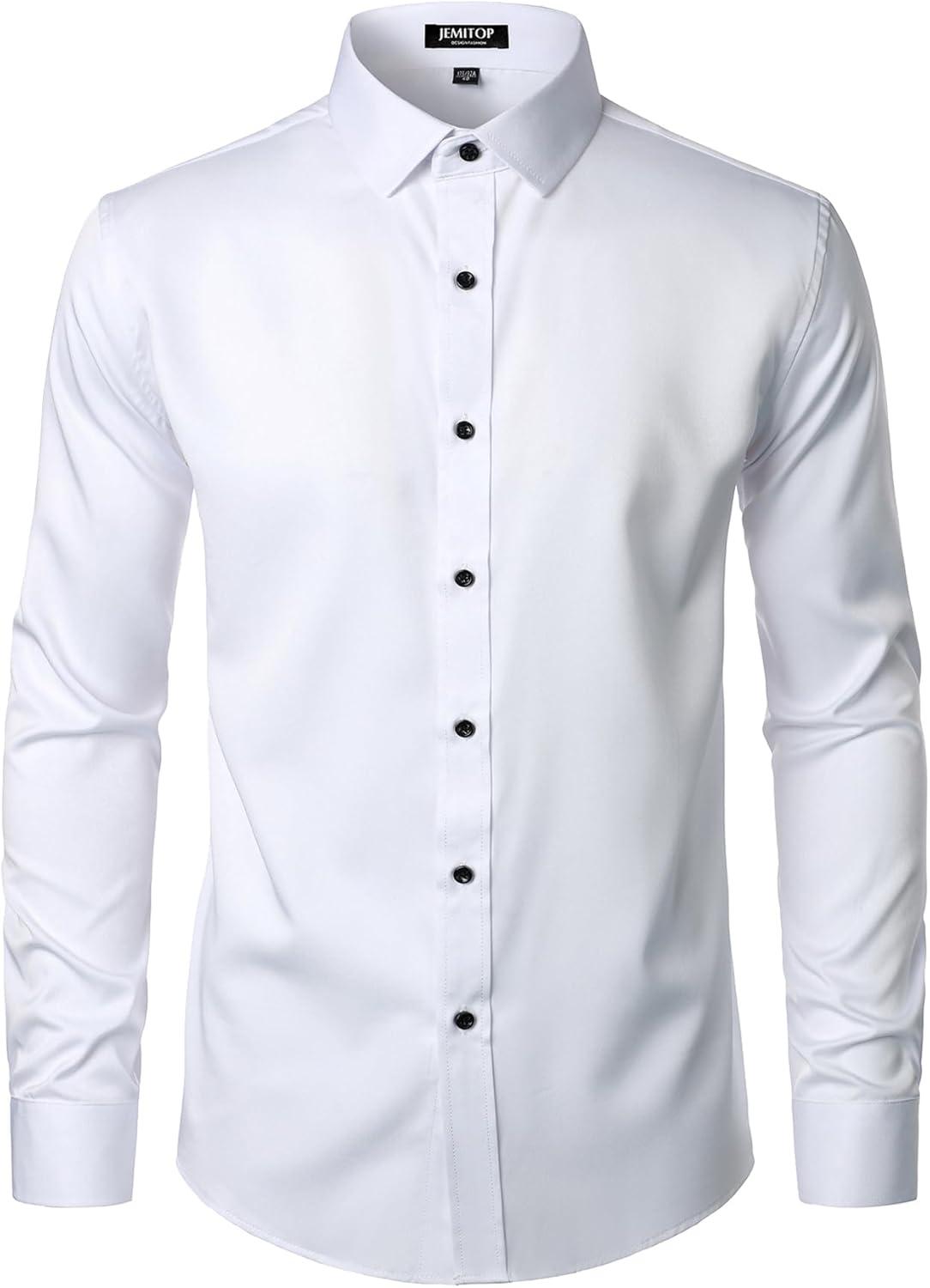 JEMITOP Men’s Stretch Wrinkle Free Dress Shirt Formal Prom Wedding Long Sleeve Button Down Shirts(White)