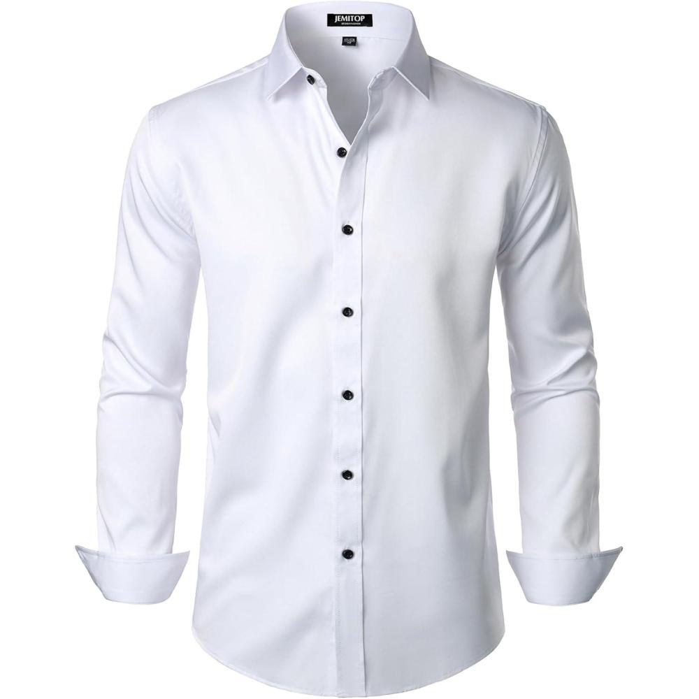 imageJEMITOP Mens Stretch Wrinkle Free Dress Shirt Formal Prom Wedding Long Sleeve Button Down ShirtsWhite