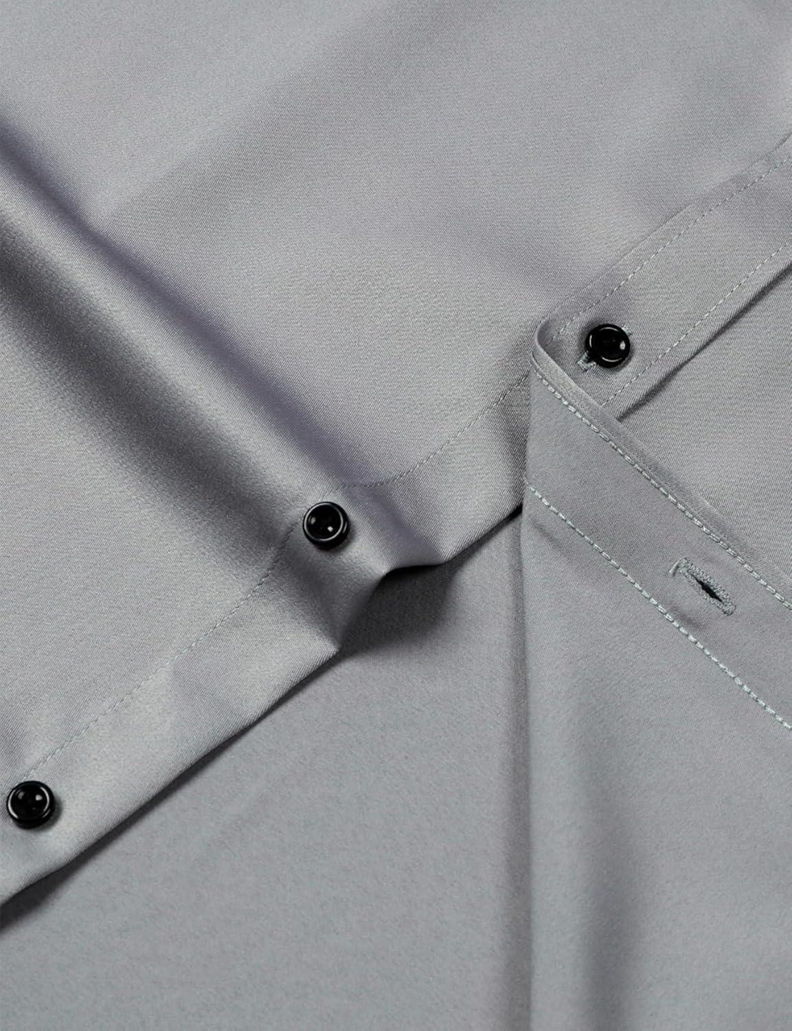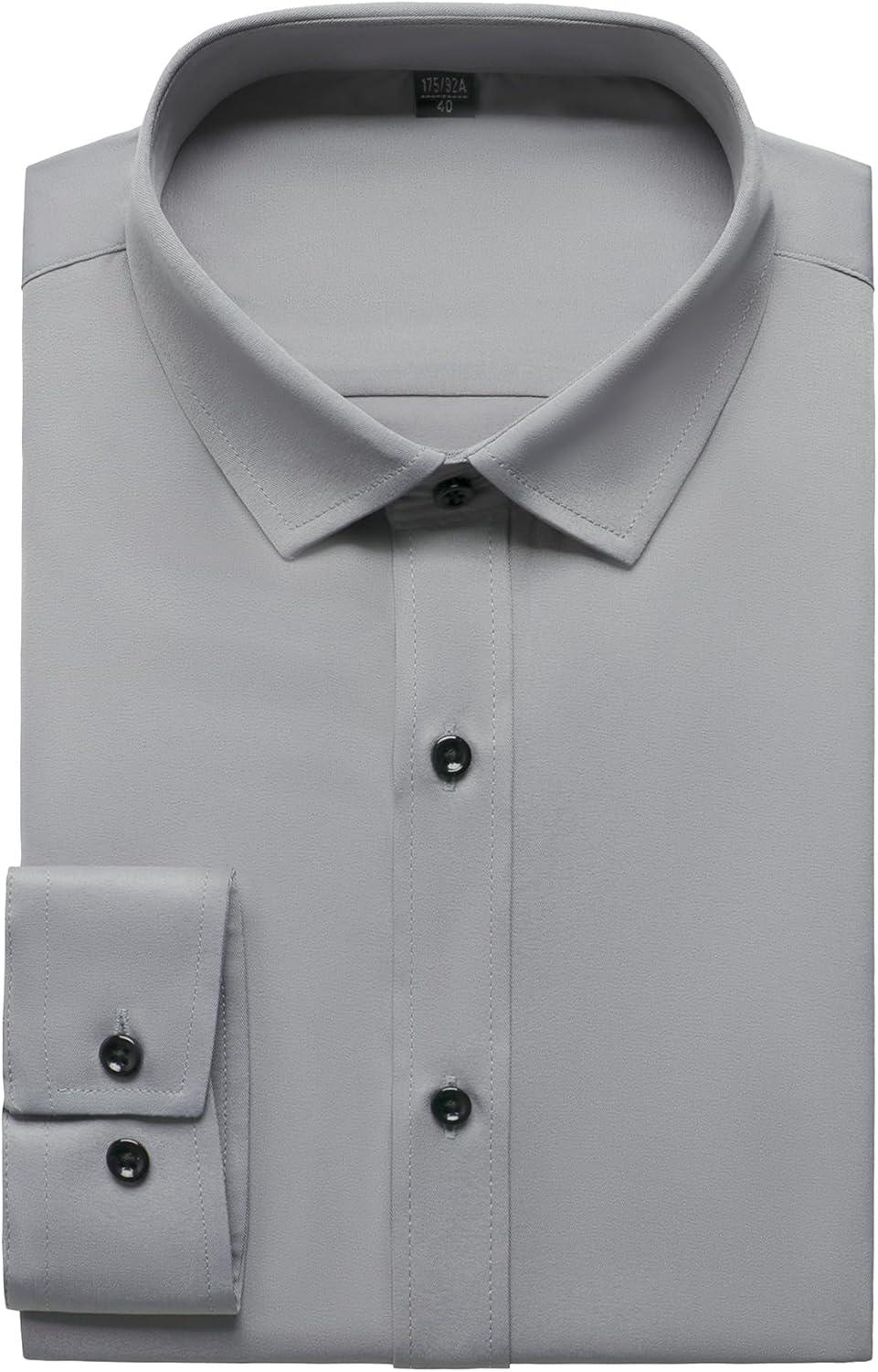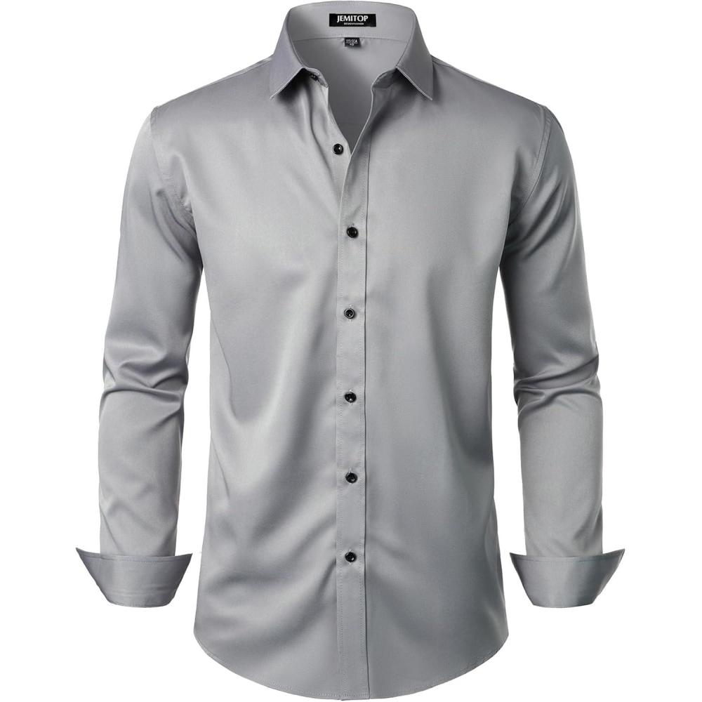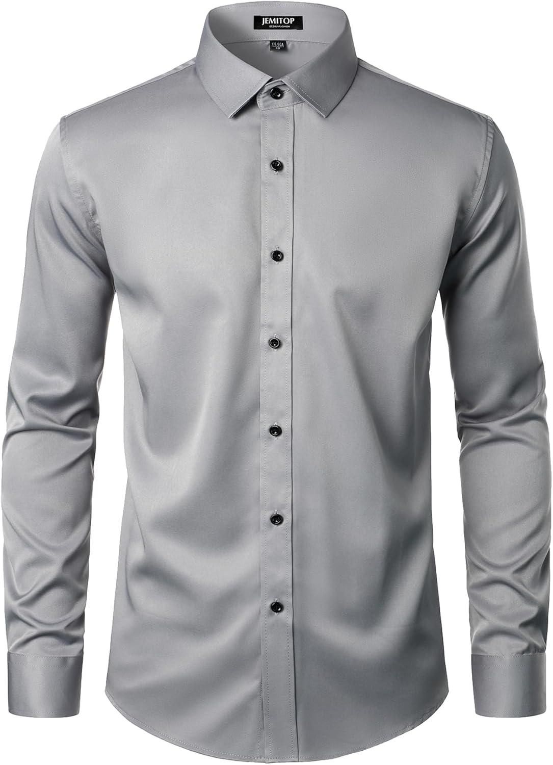 JEMITOP Men's Stretch Wrinkle Free Dress Shirts Formal Prom Wedding Long Sleeve Button Down Shirts(Grey)