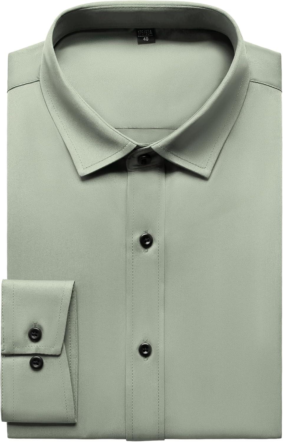 JEMITOP Men's Stretch Wrinkle Free Dress Shirts Formal Prom Wedding Long Sleeve Button Down Shirts(Mint Green)