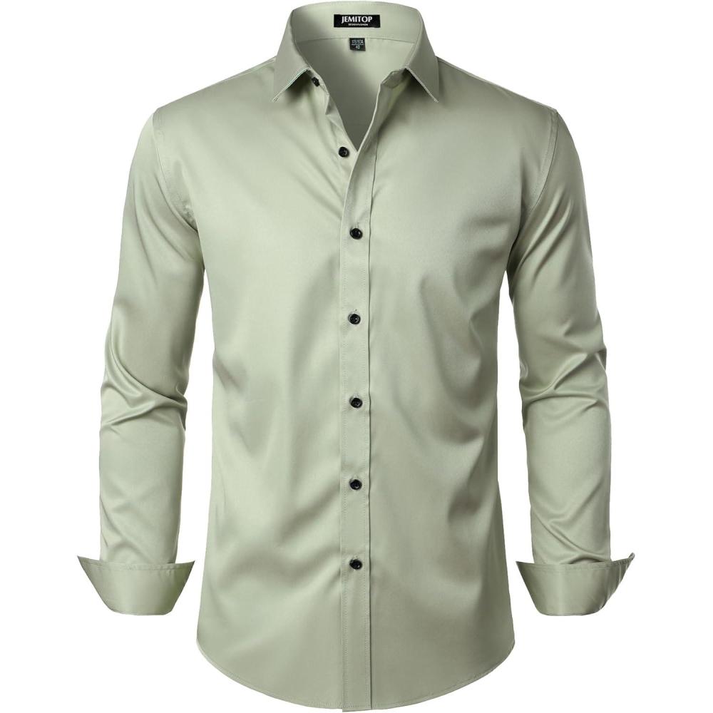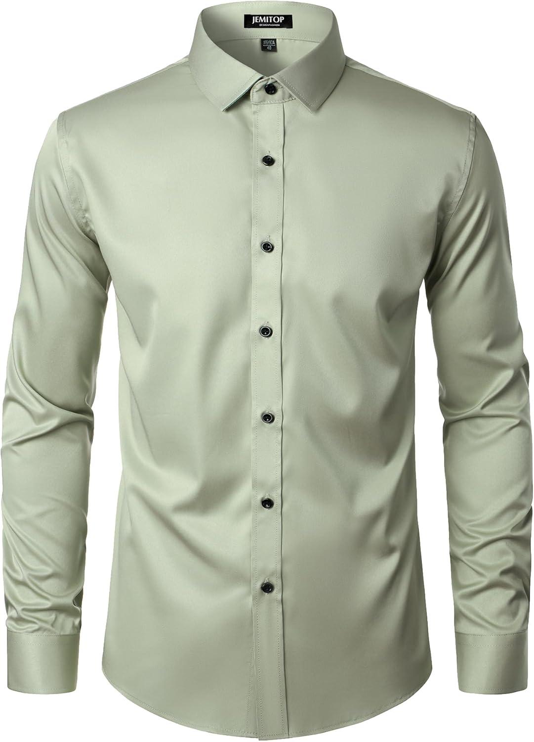 imageJEMITOP Mens Stretch Wrinkle Free Dress Shirts Formal Prom Wedding Long Sleeve Button Down ShirtsMint Green