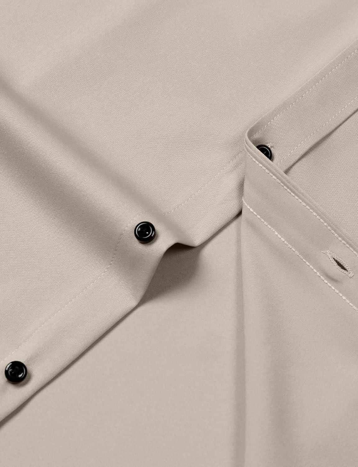 JEMITOP Men’s Stretch Wrinkle Free Dress Shirts Formal Prom Wedding Long Sleeve Button Down Shirts(Tan)