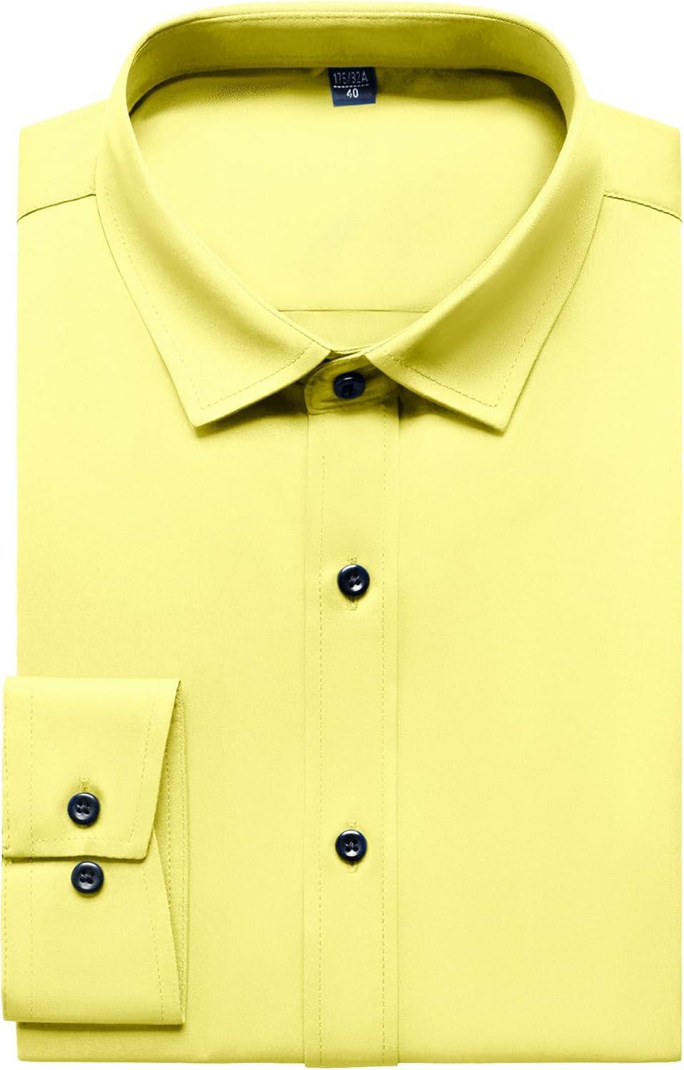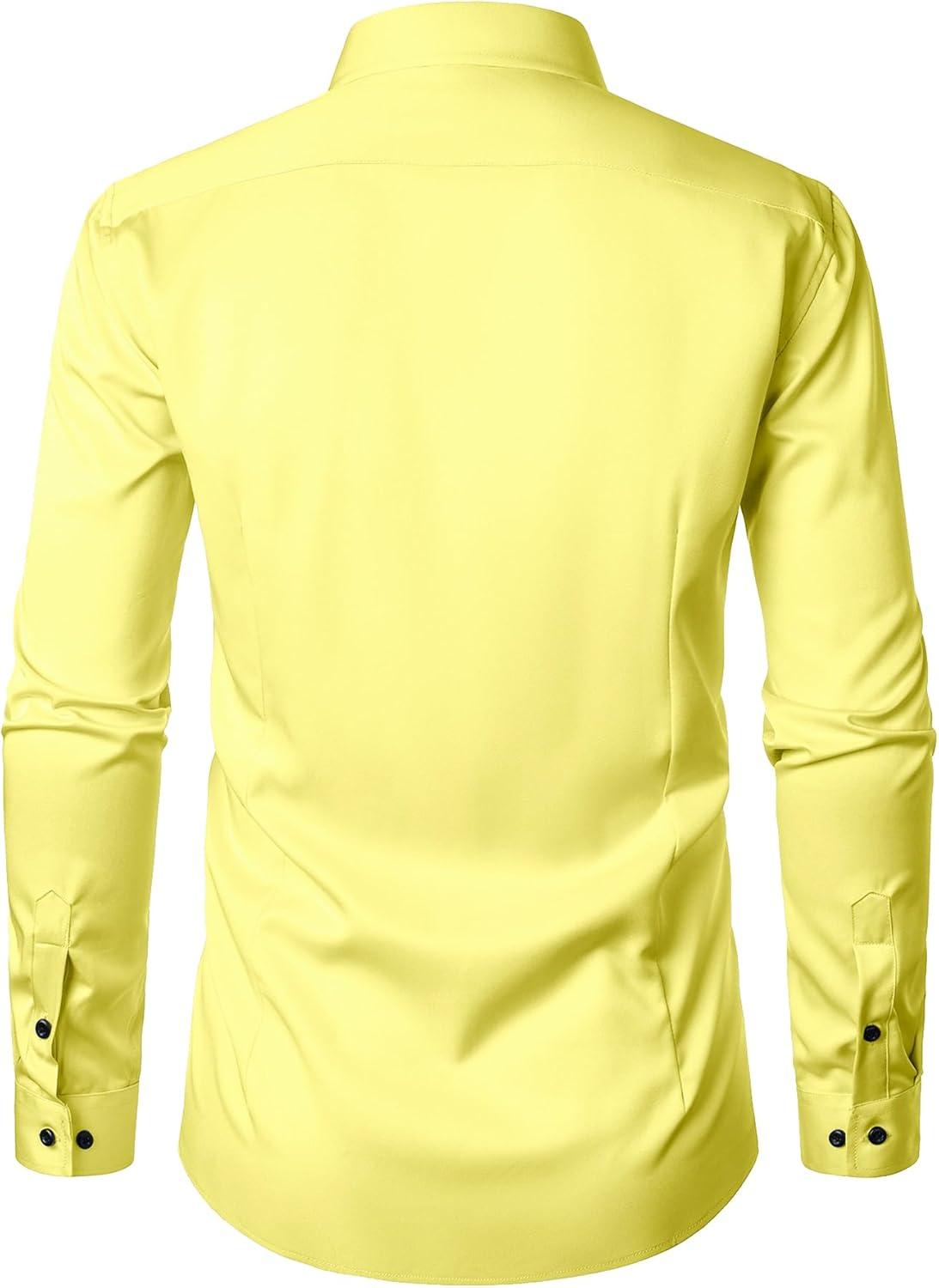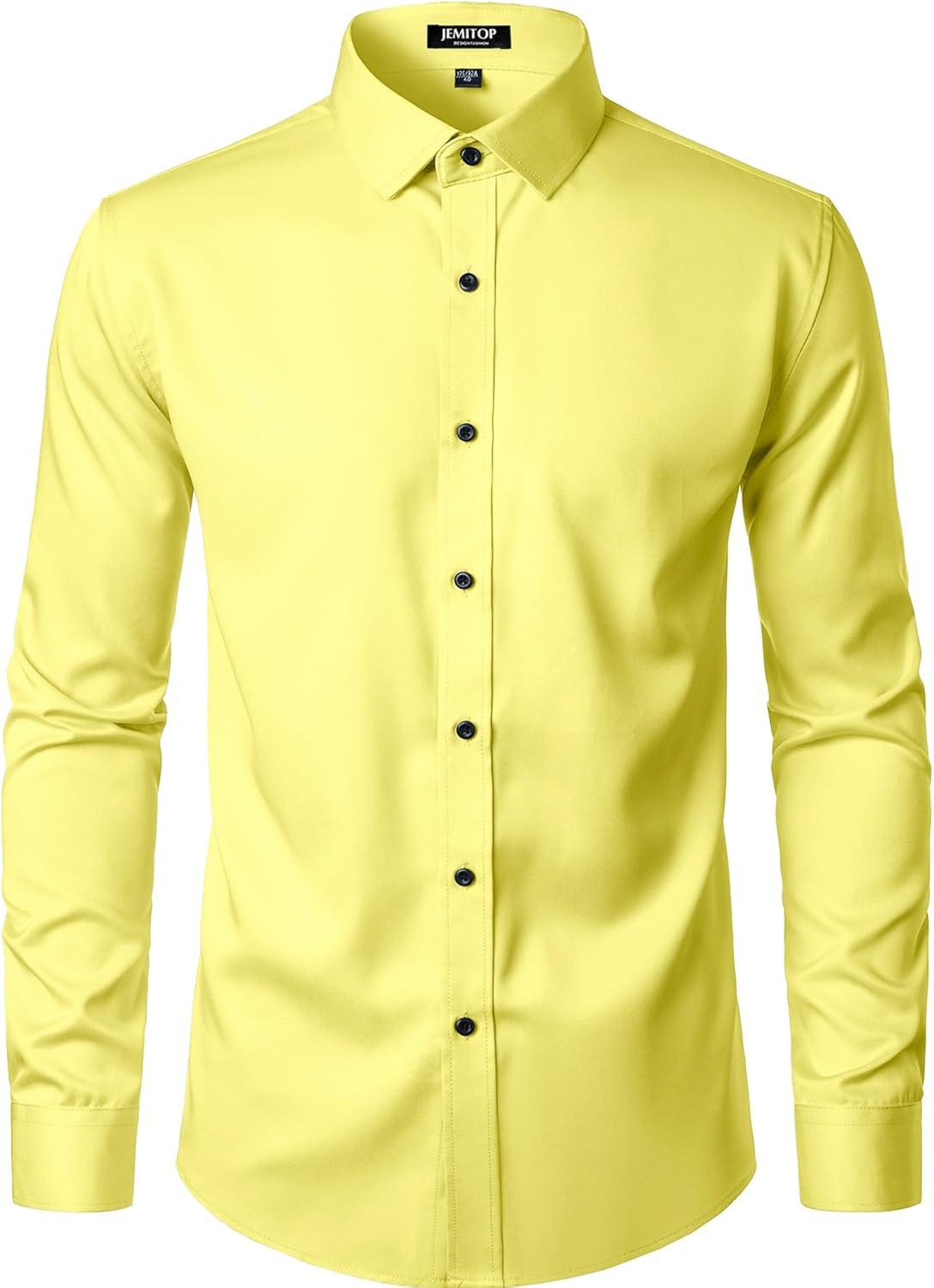 JEMITOP Men's Stretch Wrinkle Free Dress Shirts Formal Prom Wedding Long Sleeve Button Down Shirts(Yellow)