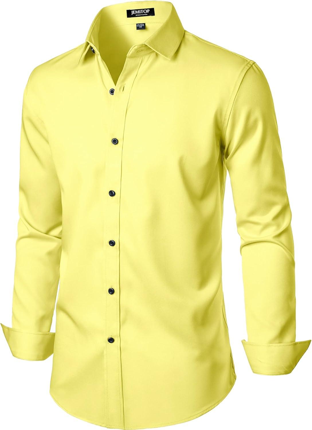 imageJEMITOP Mens Stretch Wrinkle Free Dress Shirts Formal Prom Wedding Long Sleeve Button Down ShirtsYellow