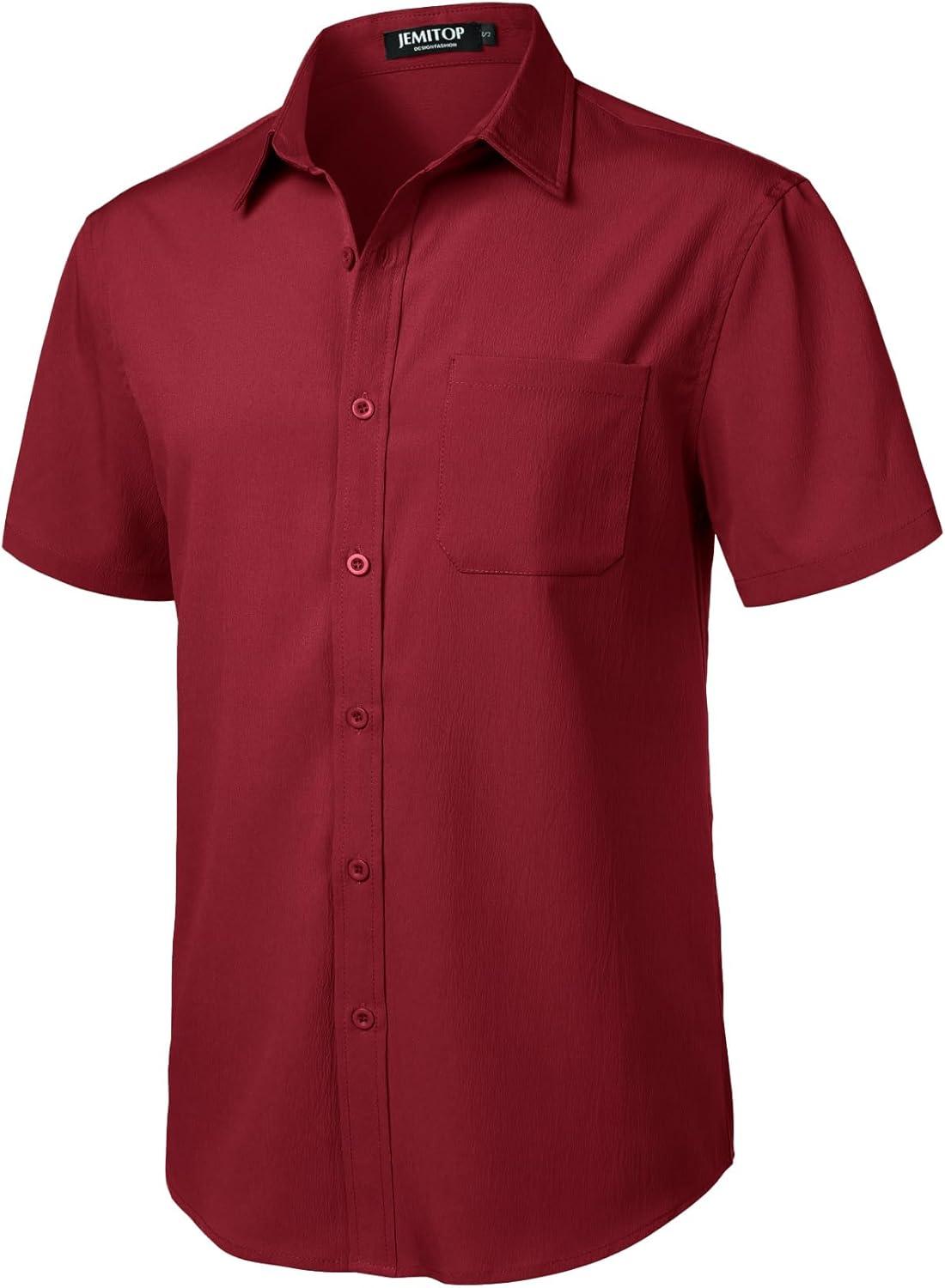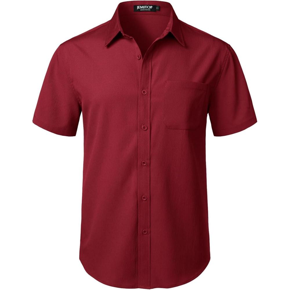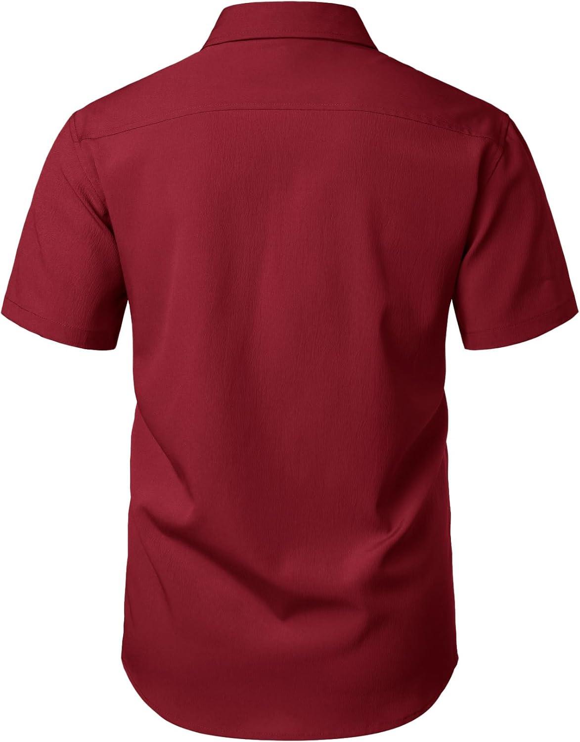 JEMITOP Men’s Stretch Wrinkle Free Short Sleeve Texture Shirt Lightweight Summer Button Down Shirts for Beach Vacation(Burgundy)