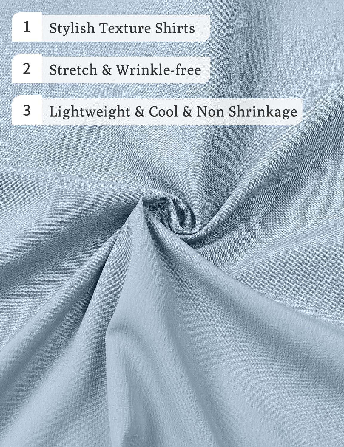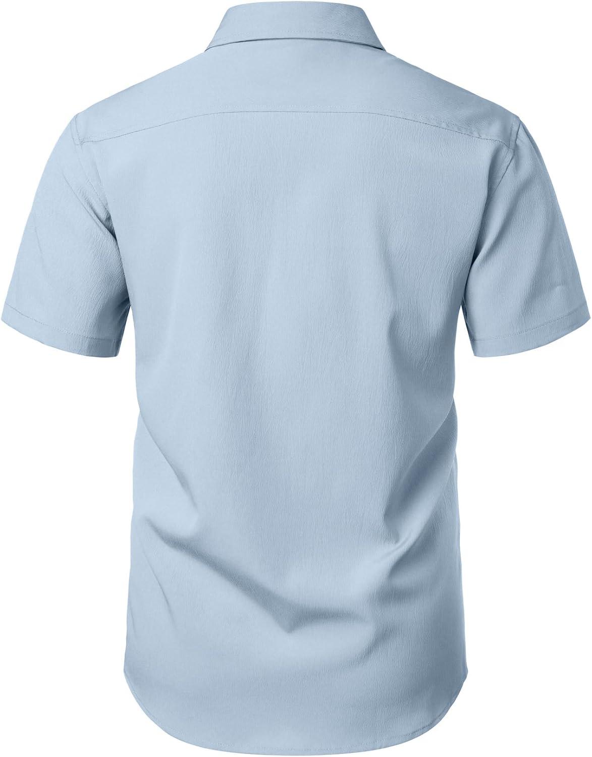 JEMITOP Men's Stretch Wrinkle Free Short Sleeve Texture Shirt Lightweight Summer Button Down Shirts for Beach Vacation(Cool Blue)