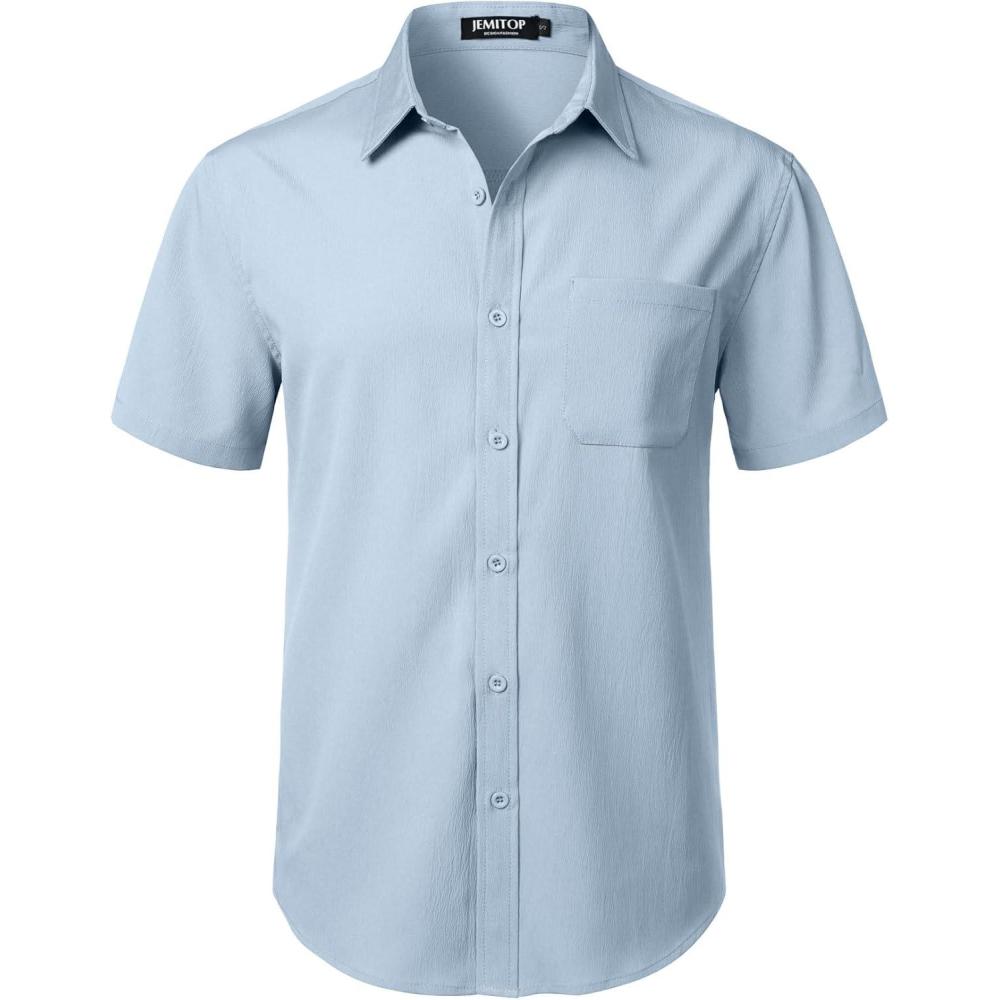 Be the first to review “JEMITOP Men’s Stretch Wrinkle Free Short Sleeve Texture Shirt Lightweight Summer Button Down Shirts for Beach Vacation(Cool Blue)”