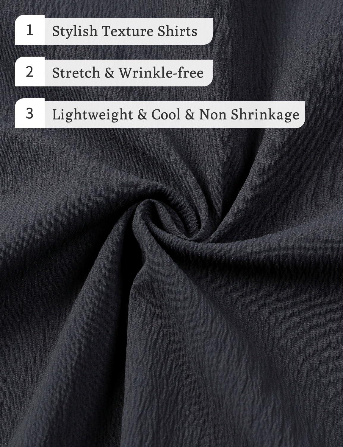 JEMITOP Men's Stretch Wrinkle Free Short Sleeve Texture Shirt Lightweight Summer Button Down Shirts for Beach Vacation(Dark Grey)