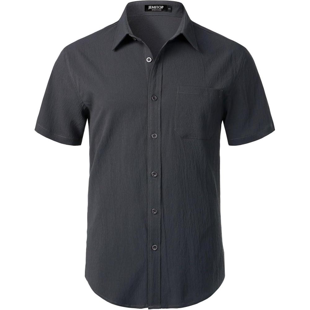 JEMITOP Men’s Stretch Wrinkle Free Short Sleeve Texture Shirt Lightweight Summer Button Down Shirts for Beach Vacation(Dark Grey)