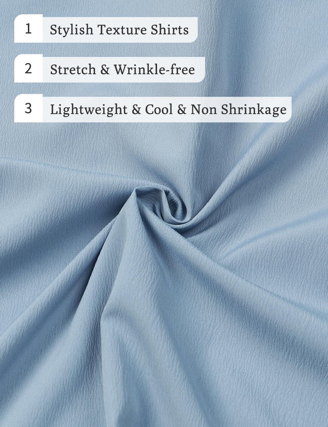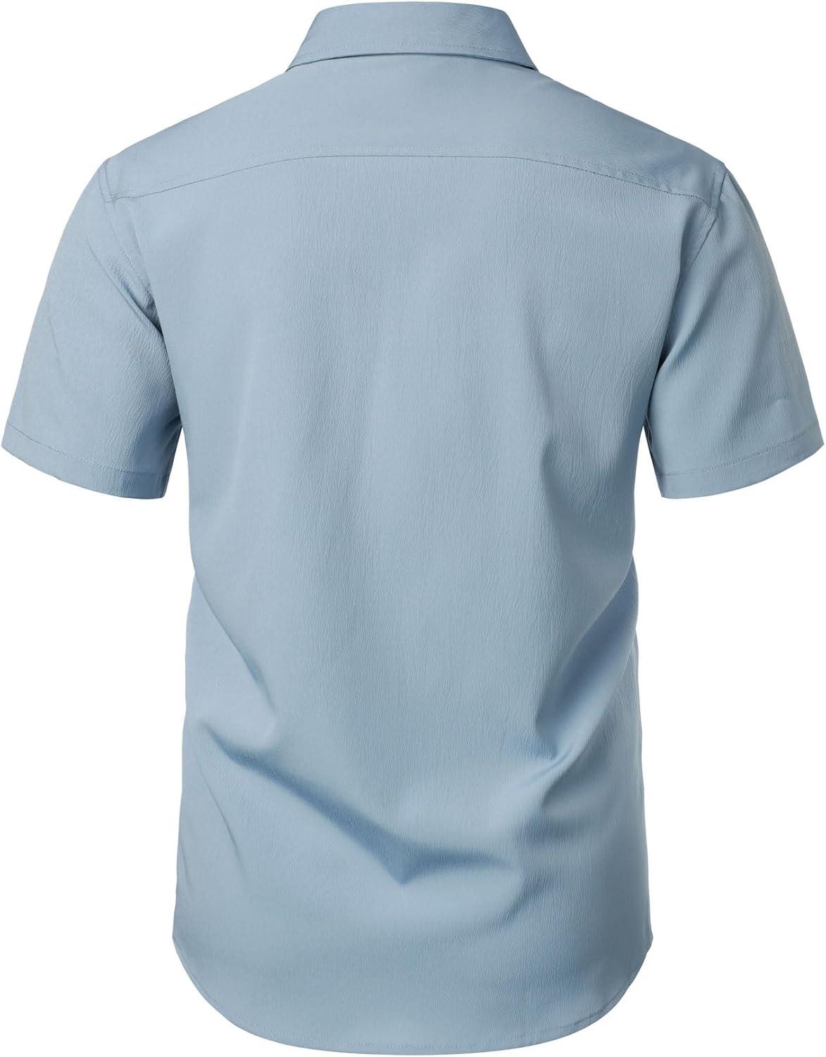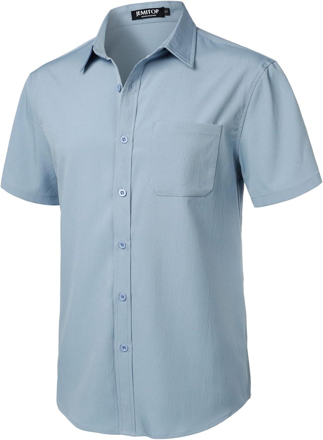 JEMITOP Men’s Stretch Wrinkle Free Short Sleeve Texture Shirt Lightweight Summer Button Down Shirts for Beach Vacation(Light Blue)