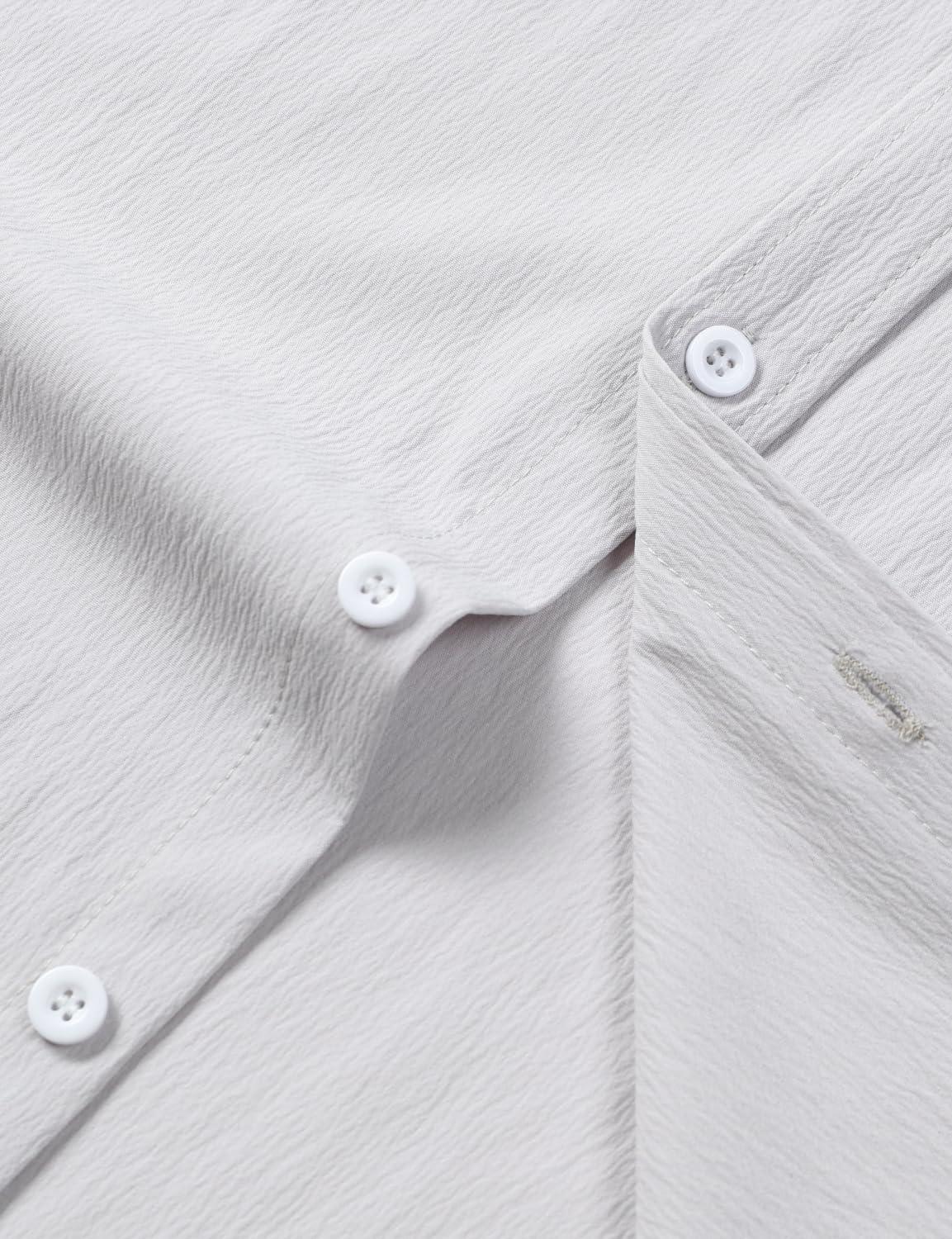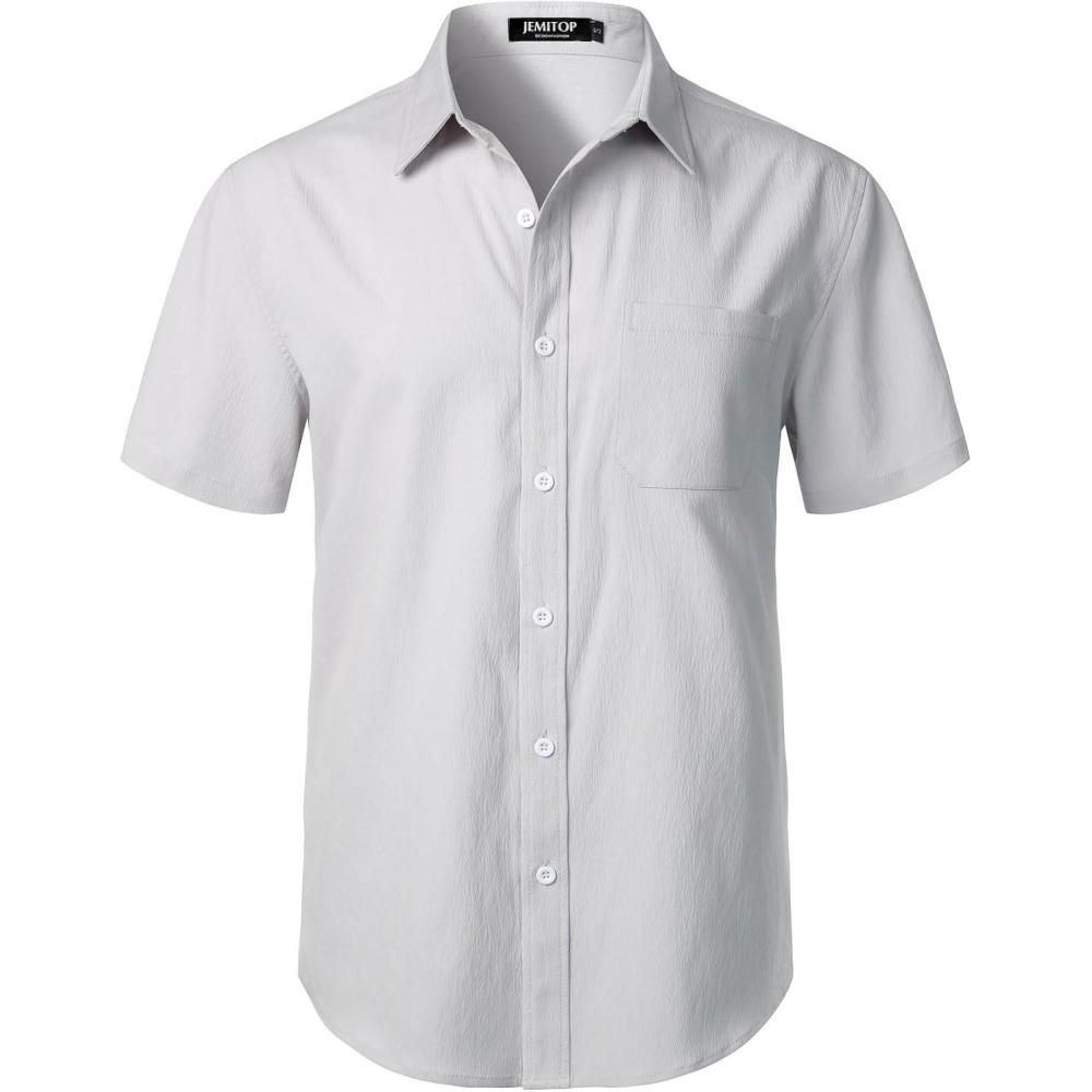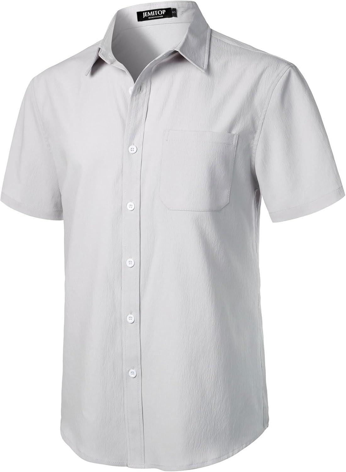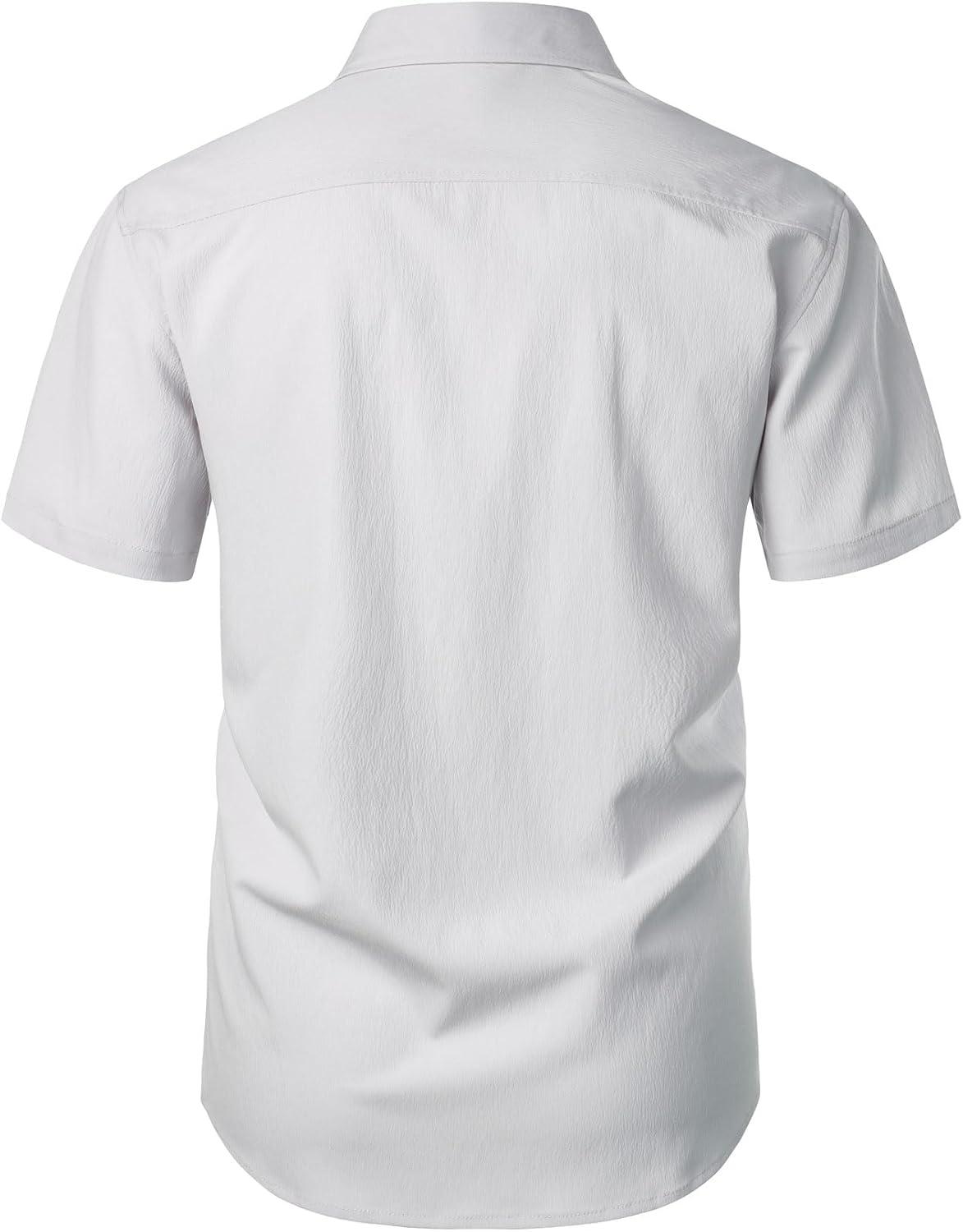 JEMITOP Men’s Stretch Wrinkle Free Short Sleeve Texture Shirt Lightweight Summer Button Down Shirts for Beach Vacation(Light Grey)