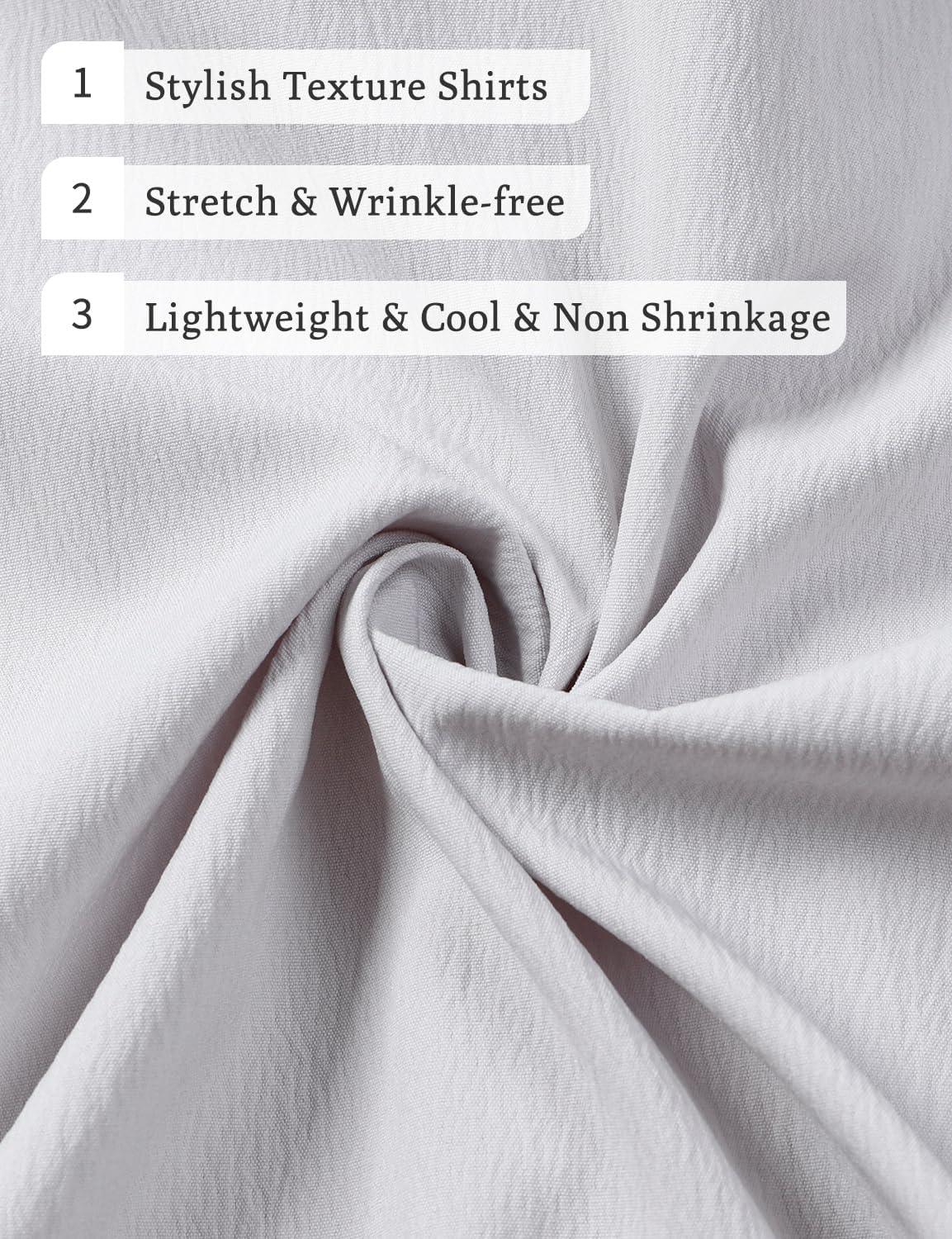 JEMITOP Men's Stretch Wrinkle Free Short Sleeve Texture Shirt Lightweight Summer Button Down Shirts for Beach Vacation(Light Grey)