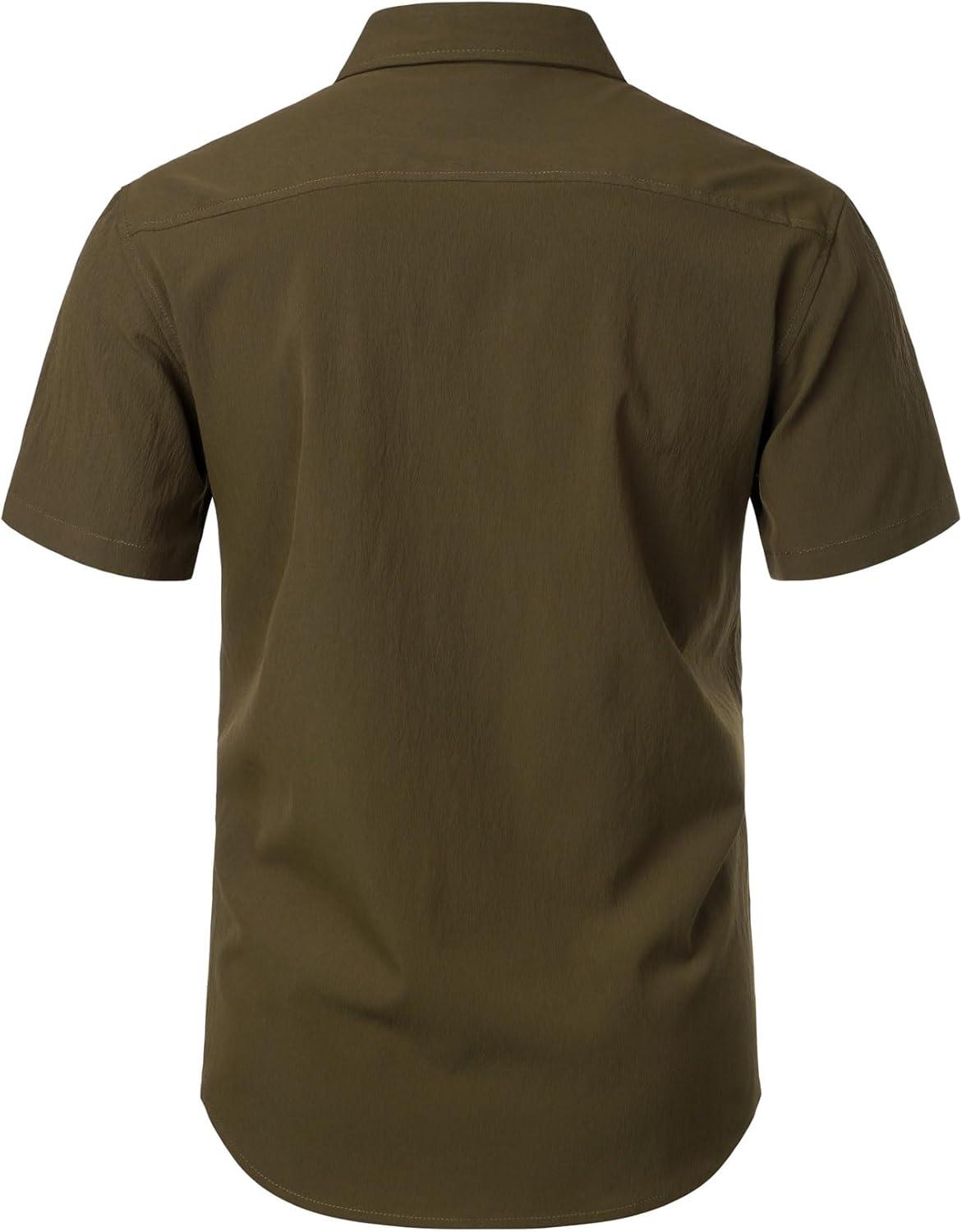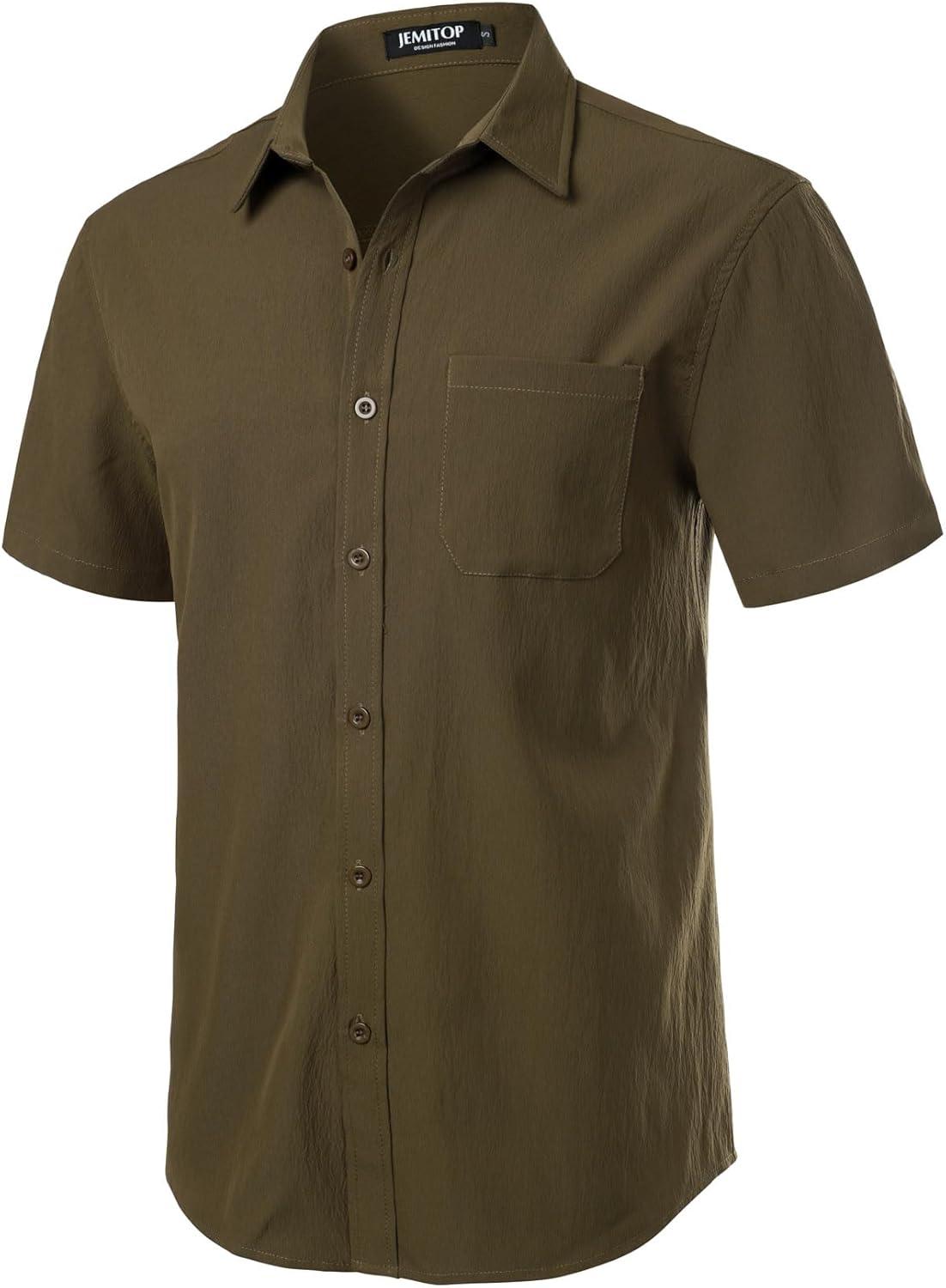 JEMITOP Men’s Stretch Wrinkle Free Short Sleeve Texture Shirt Lightweight Summer Button Down Shirts for Beach Vacation(Olive Green)