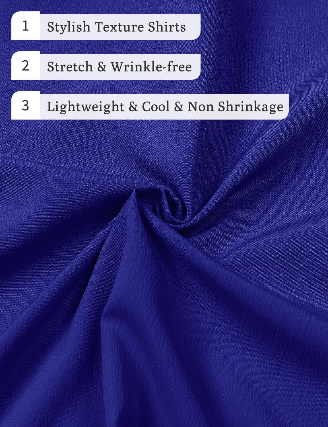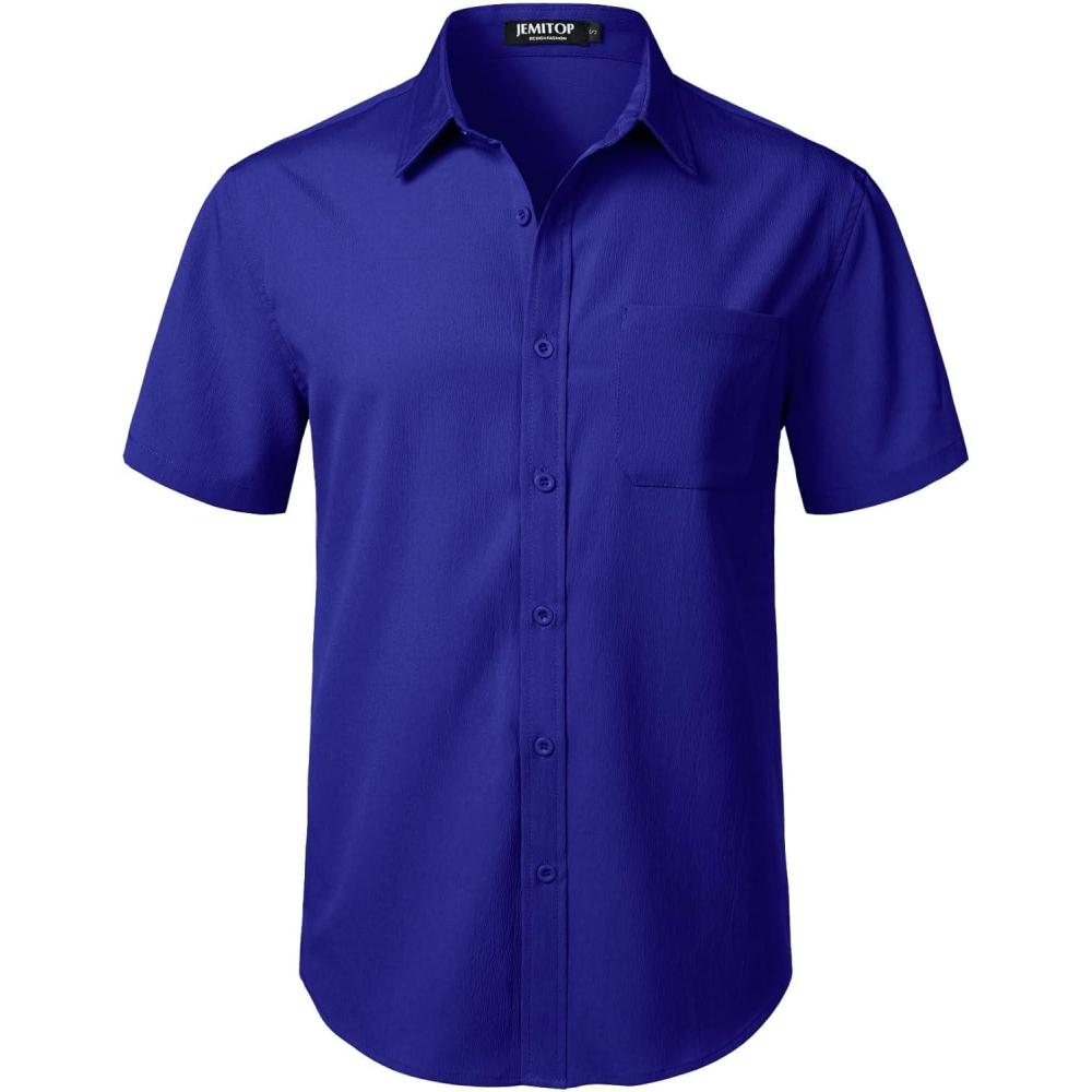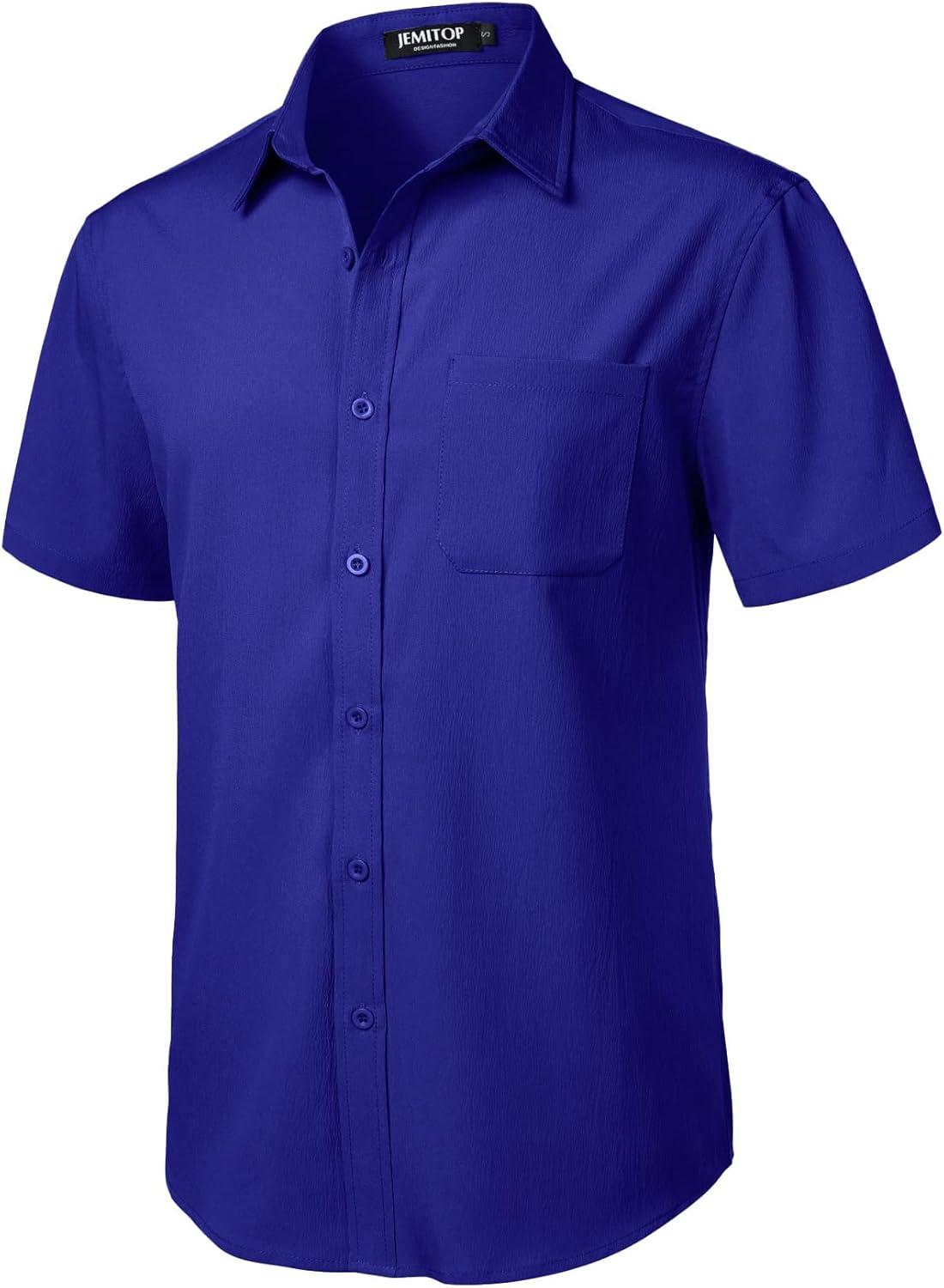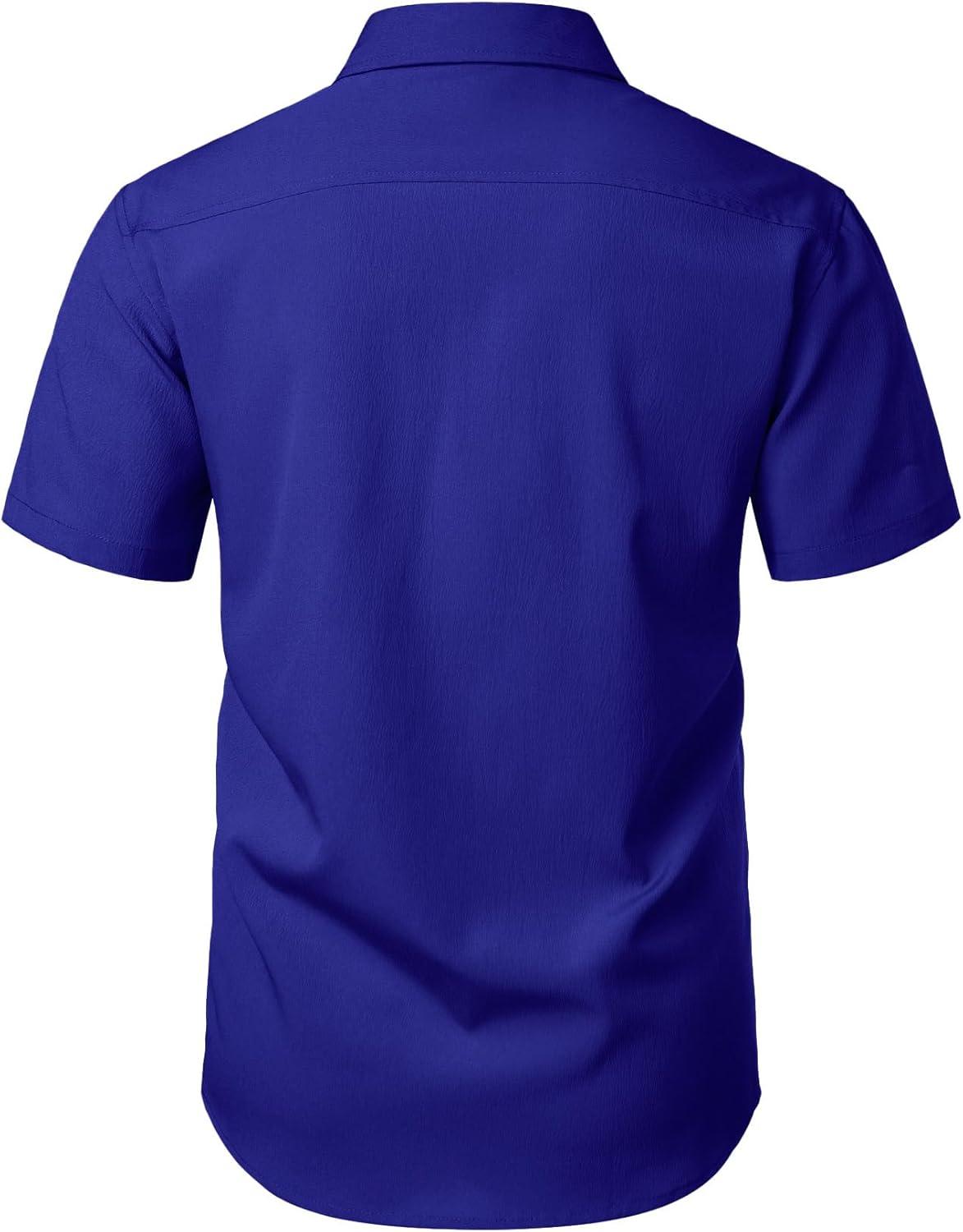 JEMITOP Men’s Stretch Wrinkle Free Short Sleeve Texture Shirt Lightweight Summer Button Down Shirts for Beach Vacation(Royal Blue)