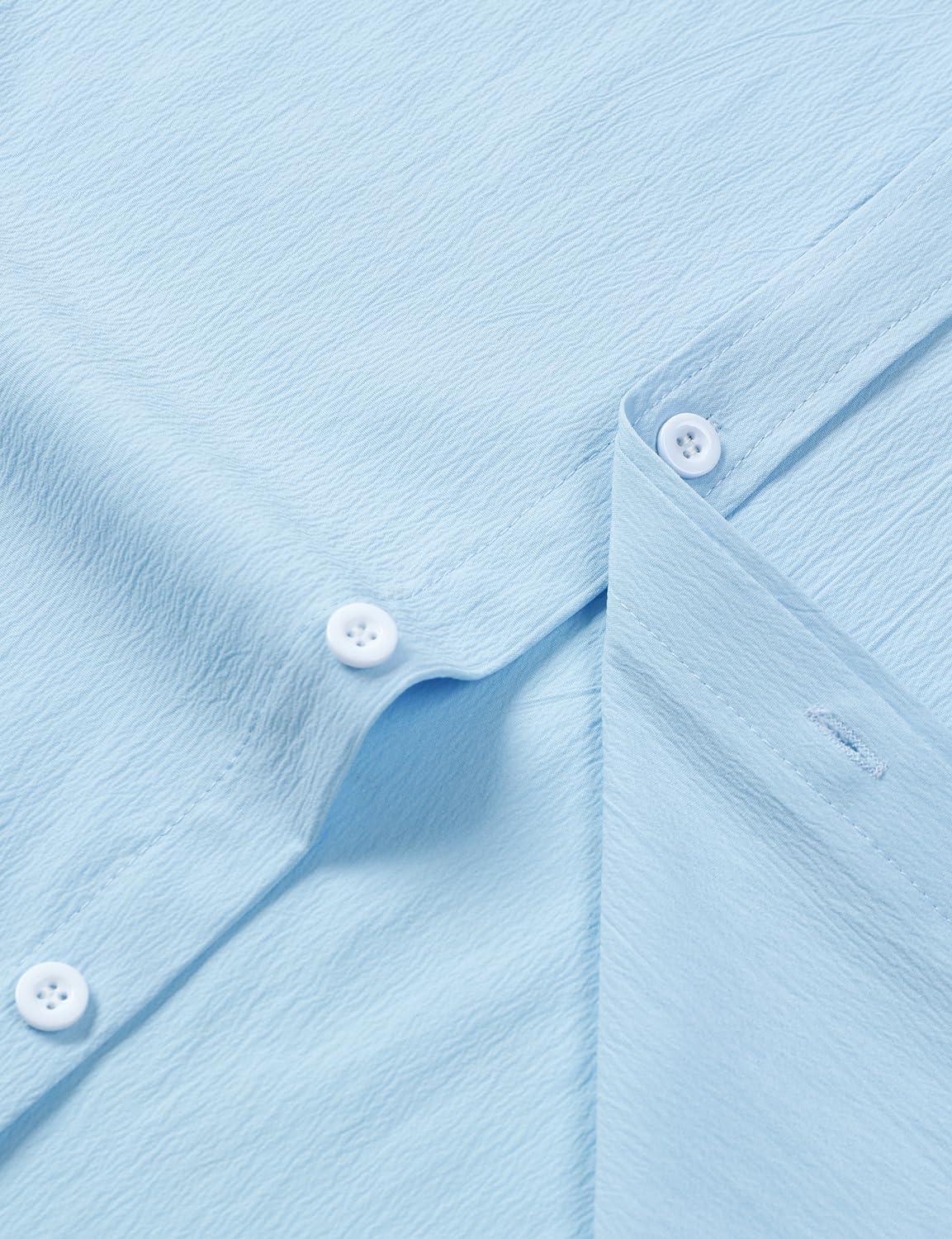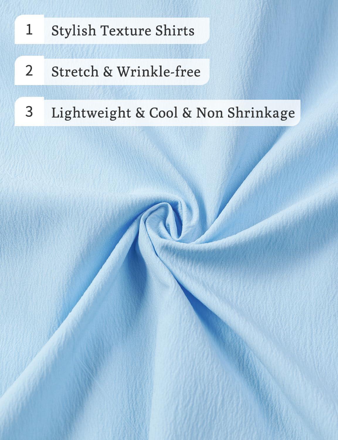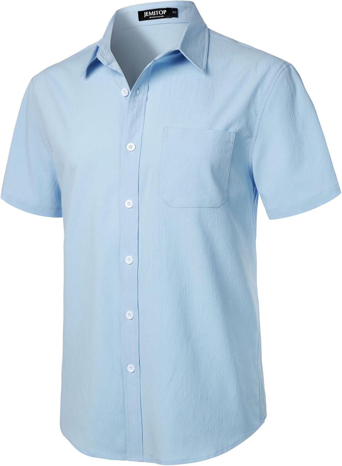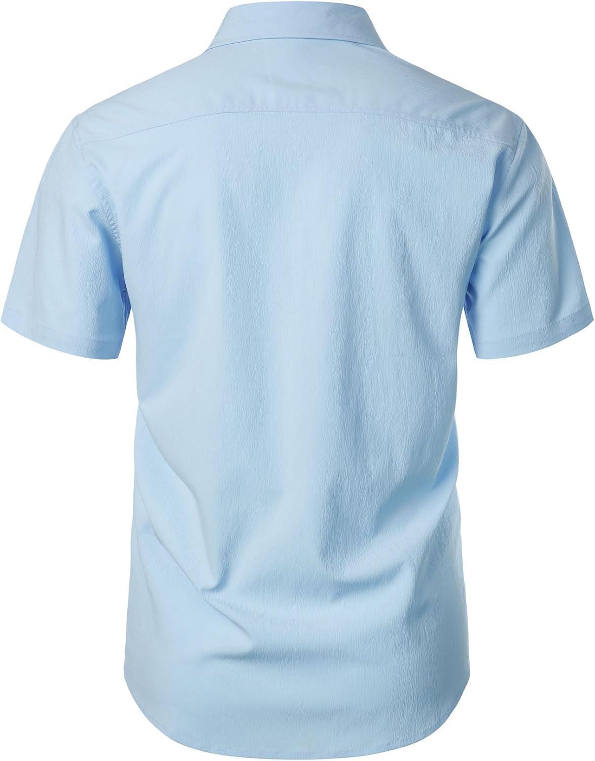 JEMITOP Men’s Stretch Wrinkle Free Short Sleeve Texture Shirt Lightweight Summer Button Down Shirts for Beach Vacation(Sky Blue)