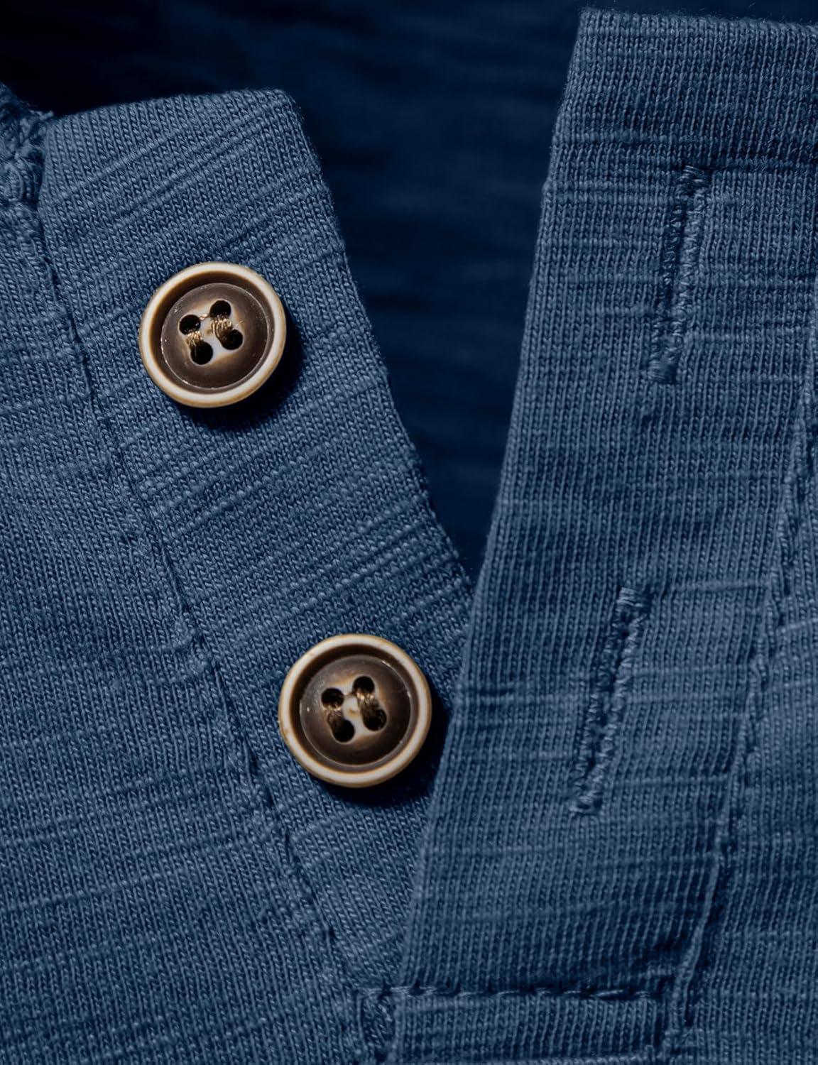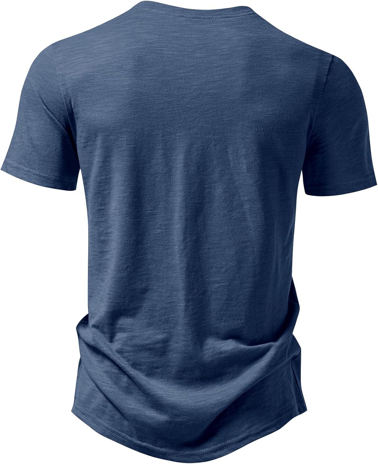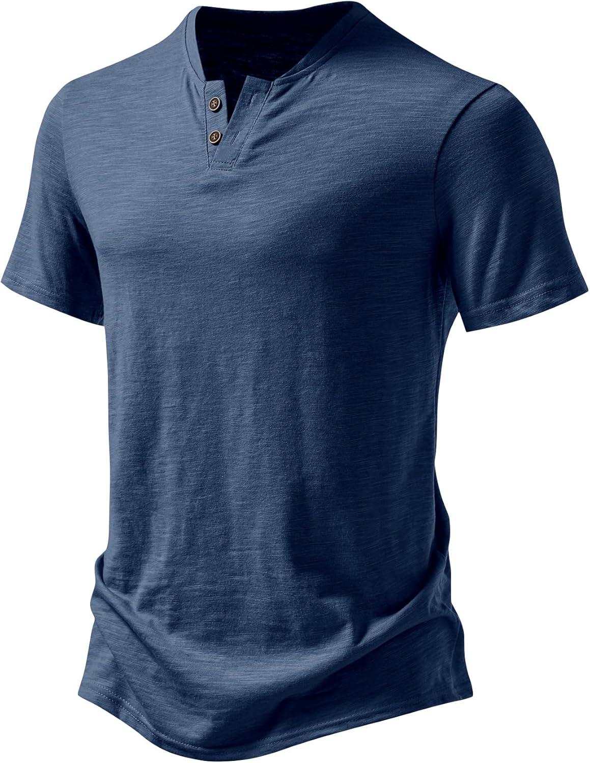 JEMITOP Men’s Stretchy Short Sleeve Henley T-Shirt Casual Cotton 2 Buttons Notch Neck Tee Shirts(Dark Blue)