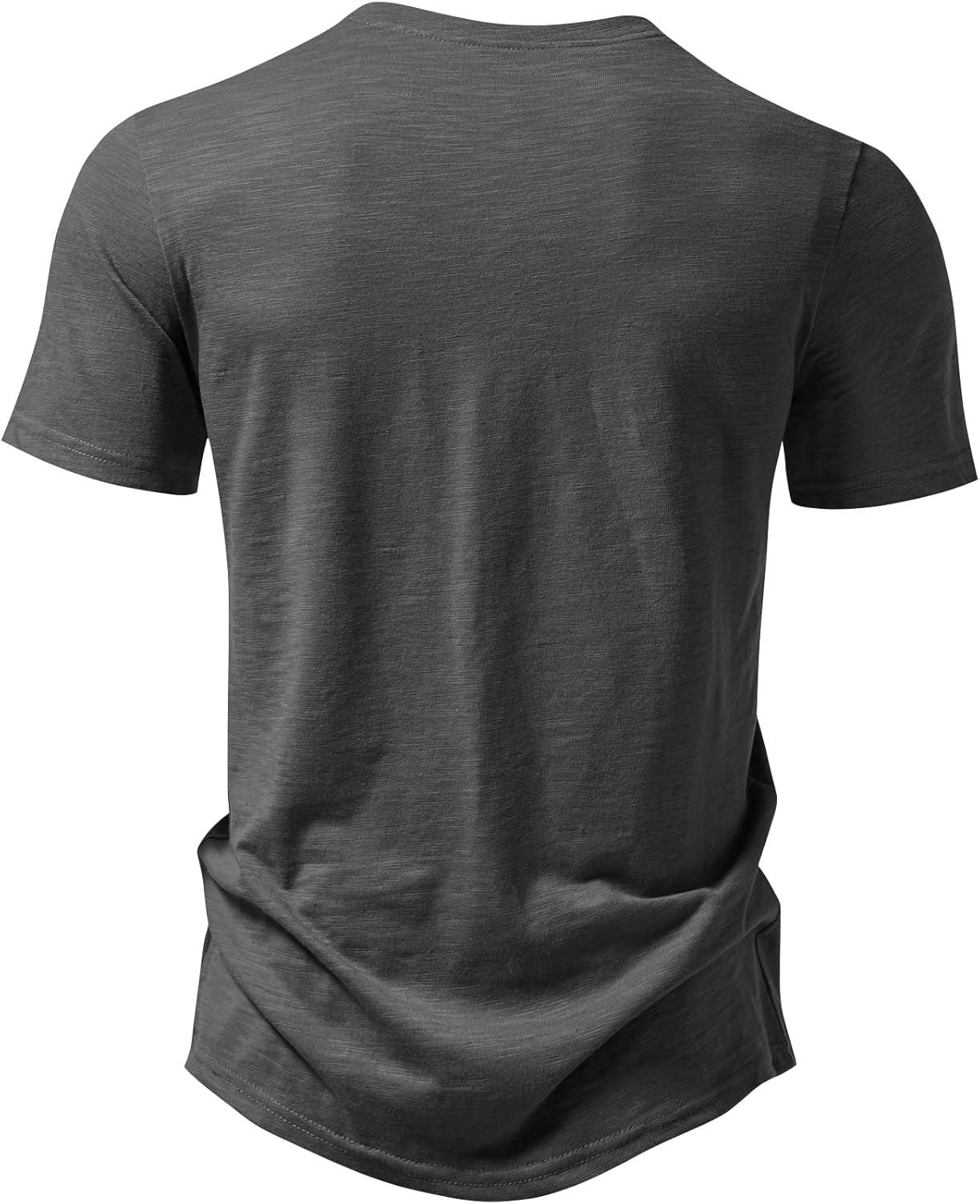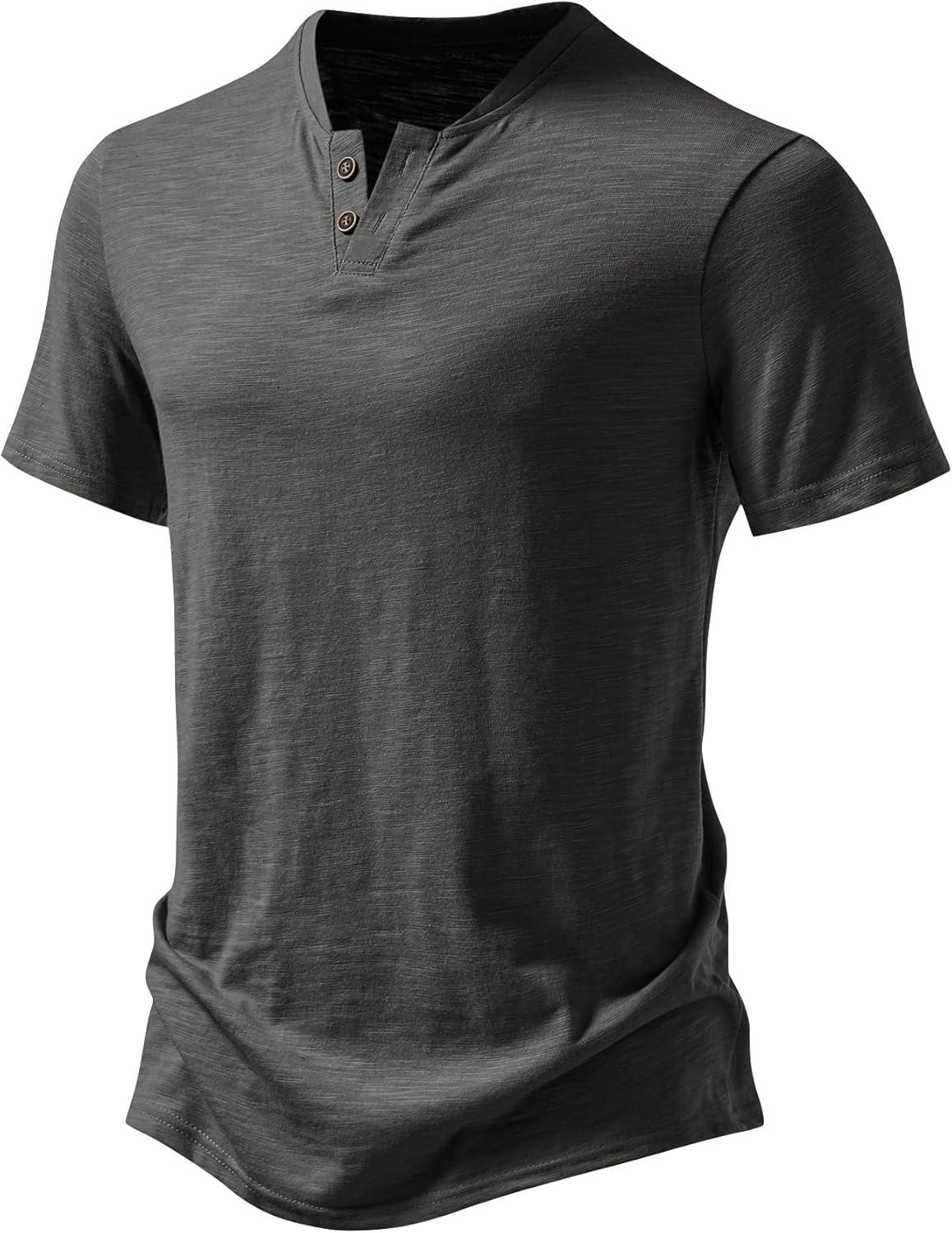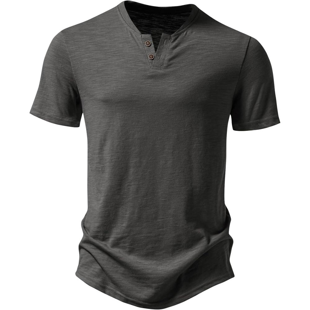 JEMITOP Men’s Stretchy Short Sleeve Henley T-Shirt Casual Cotton 2 Buttons Notch Neck Tee Shirts(Grey)