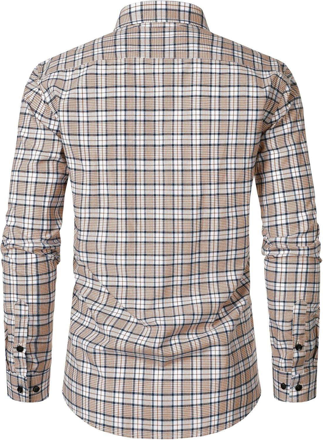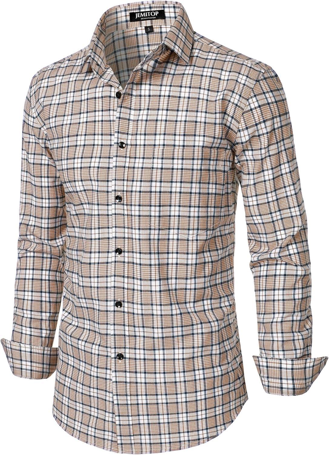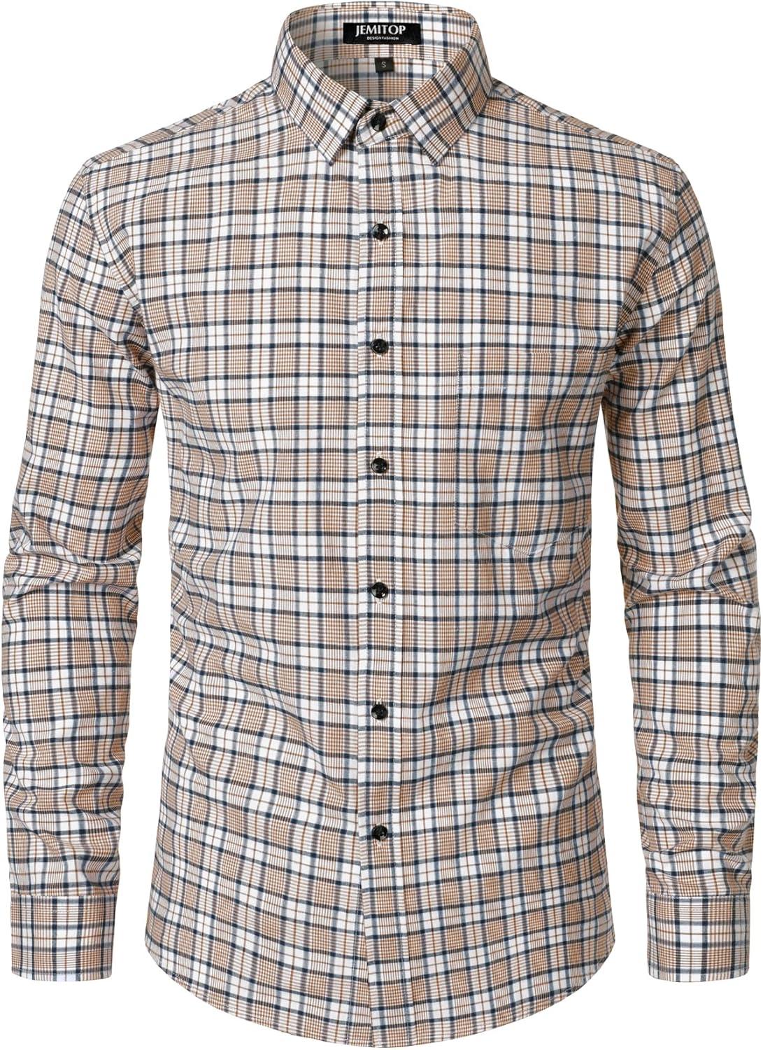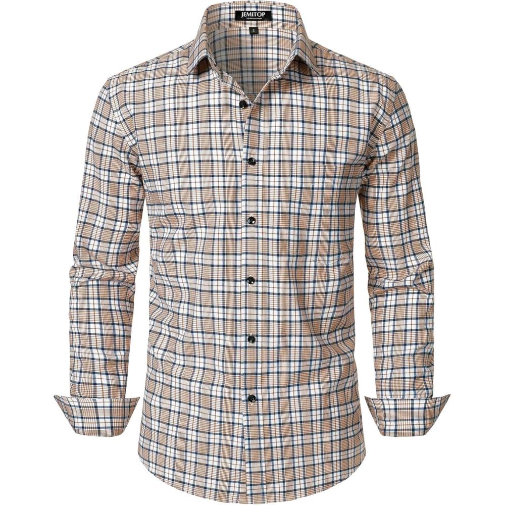 JEMITOP Men’s Transitional Weather Slim Fit Long Sleeve Button Down Shirt Business Casual Dress Shirts with Pocket(Khaki Gingham)