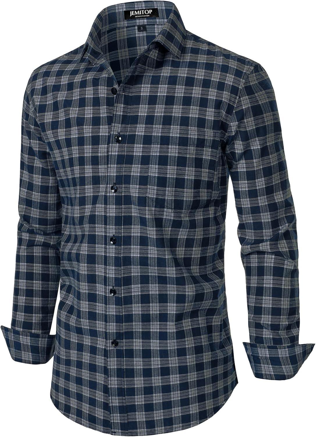 JEMITOP Men’s Transitional Weather Slim Fit Long Sleeve Button Down Shirt Business Casual Dress Shirts with Pocket(Navy Tan Gingham)