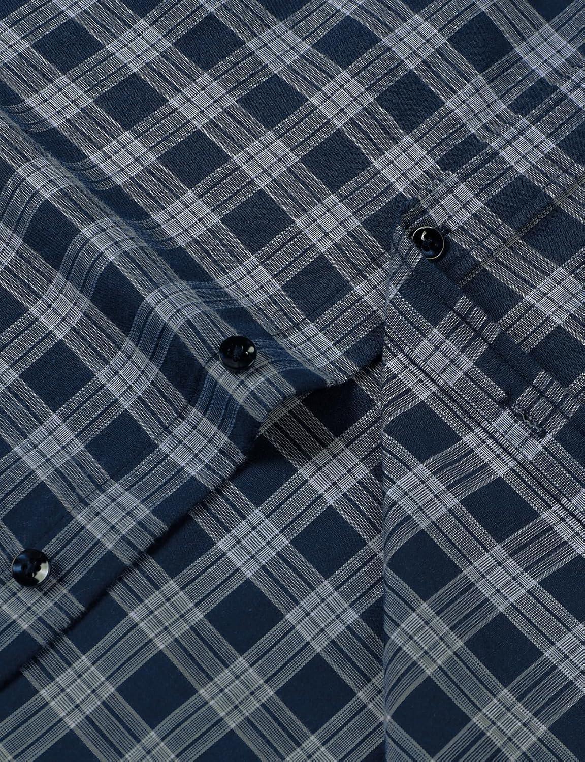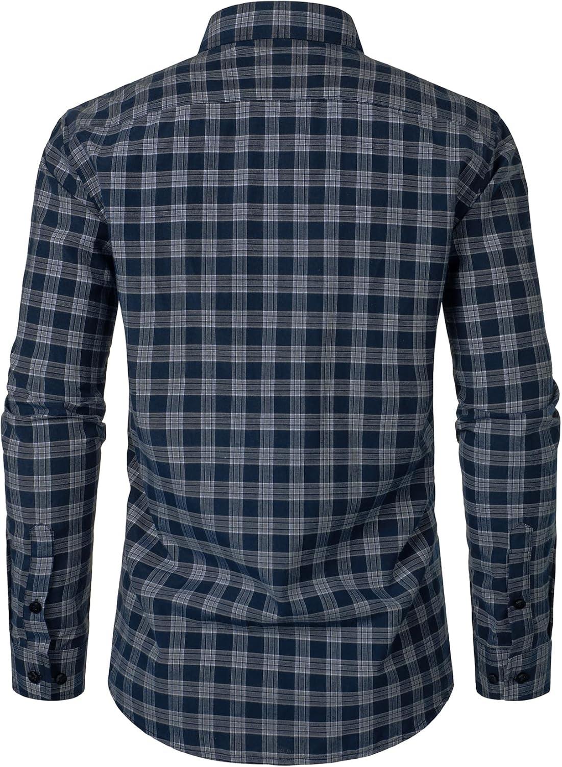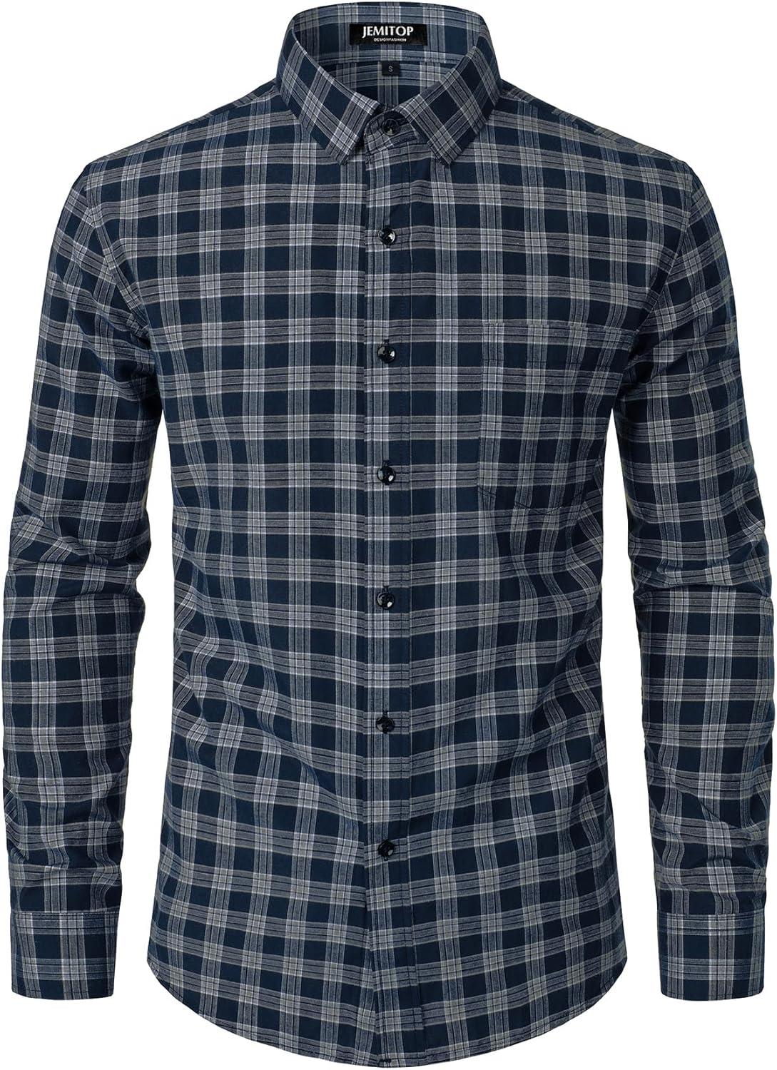 JEMITOP Men’s Transitional Weather Slim Fit Long Sleeve Button Down Shirt Business Casual Dress Shirts with Pocket(Navy White Gingham)