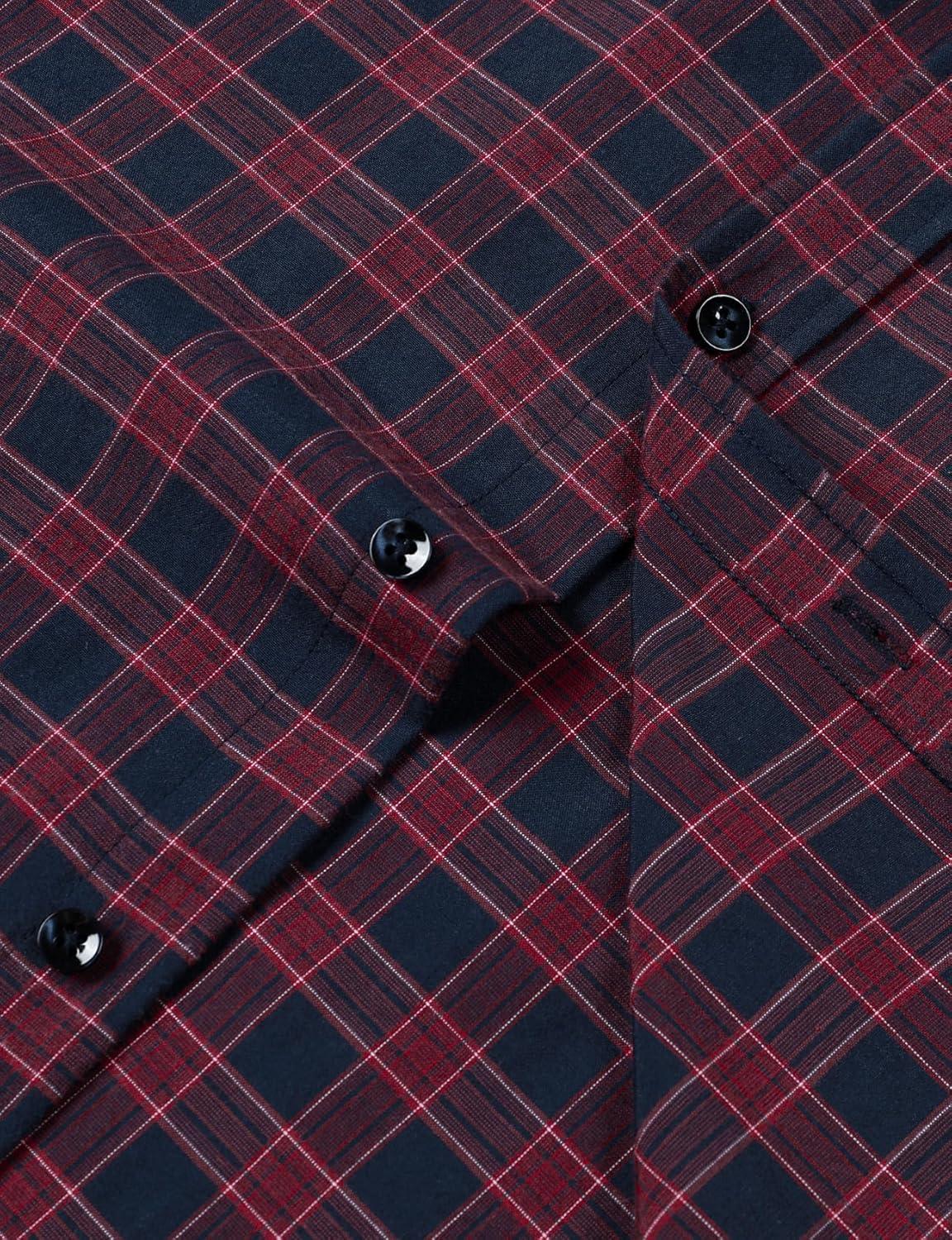 JEMITOP Men’s Transitional Weather Slim Fit Long Sleeve Button Down Shirt Business Casual Dress Shirts with Pocket(Red Navy Gingham)