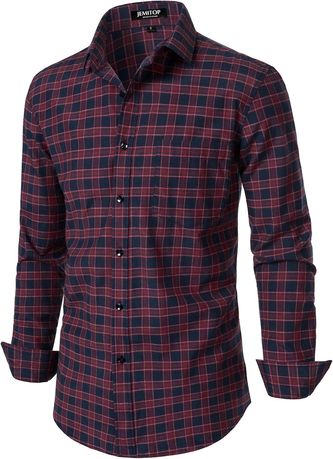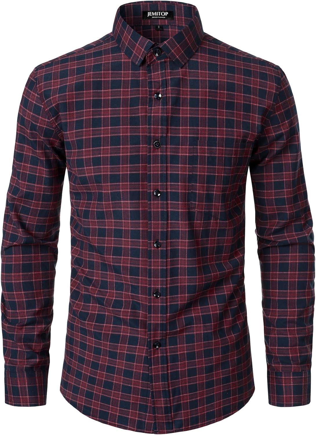 JEMITOP Men's Transitional Weather Slim Fit Long Sleeve Button Down Shirt Business Casual Dress Shirts with Pocket(Red Navy Gingham)