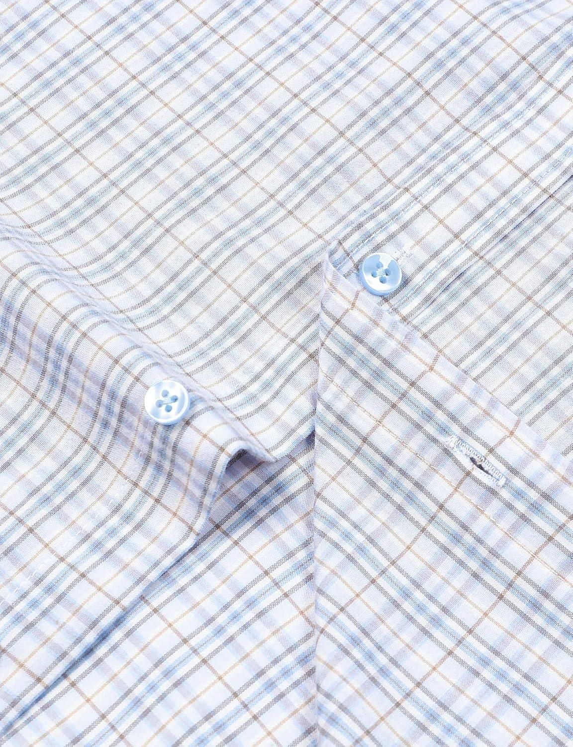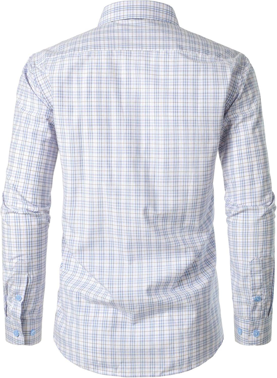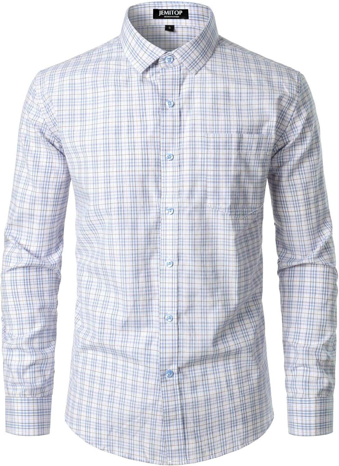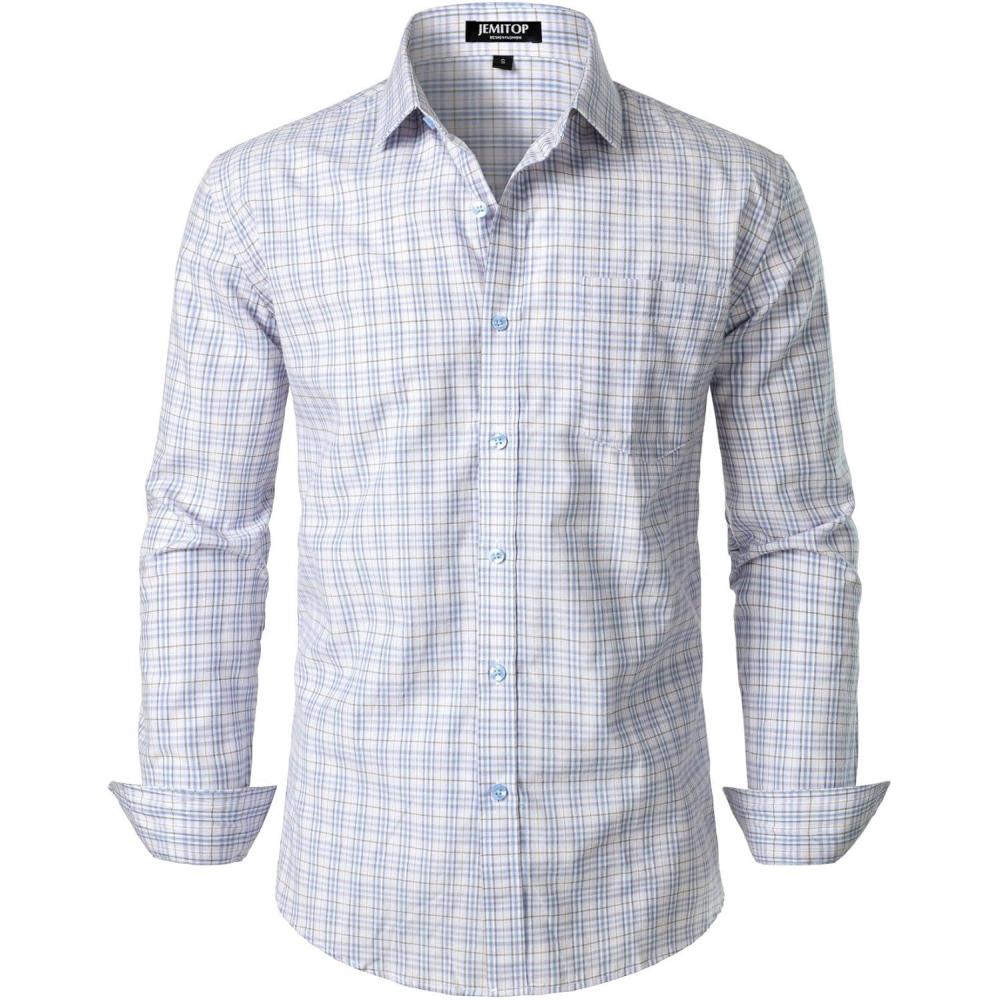 JEMITOP Men’s Transitional Weather Slim Fit Long Sleeve Button Down Shirt Business Casual Dress Shirts with Pocket(White Blue Gingham)
