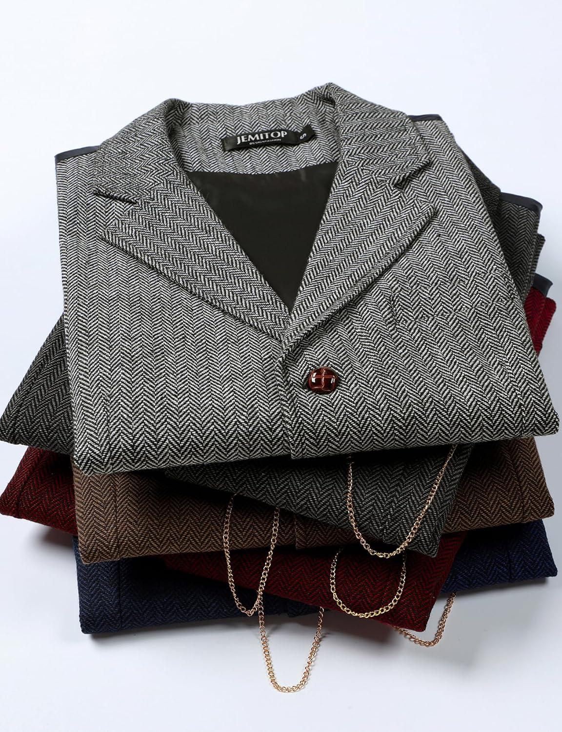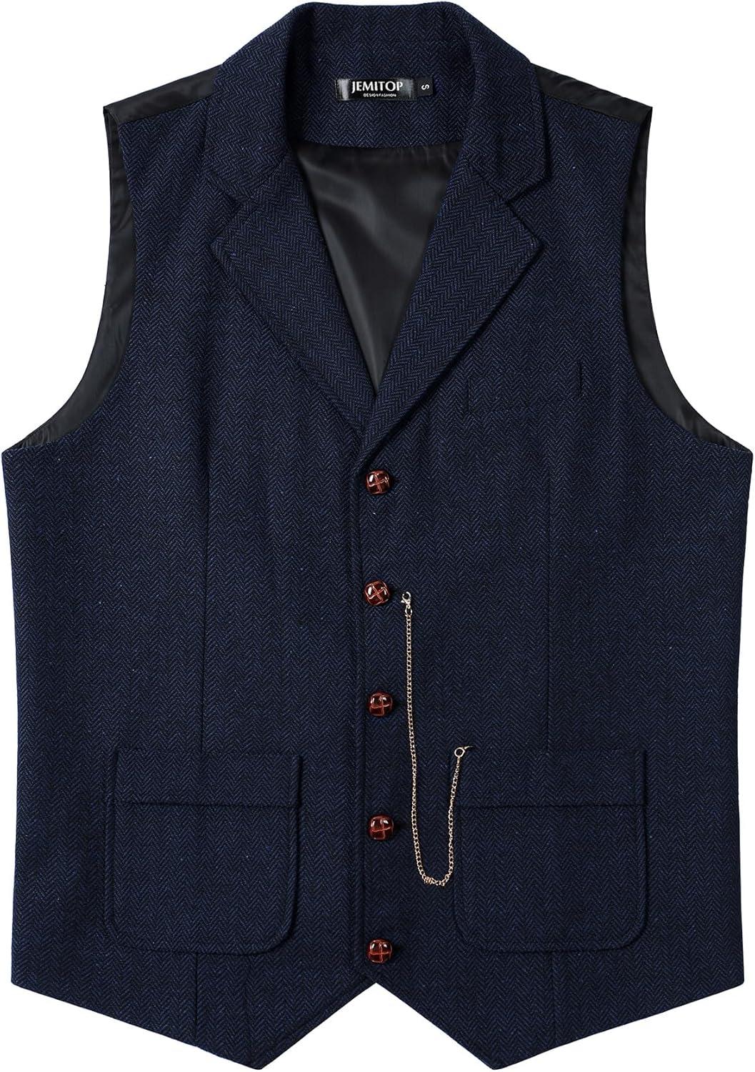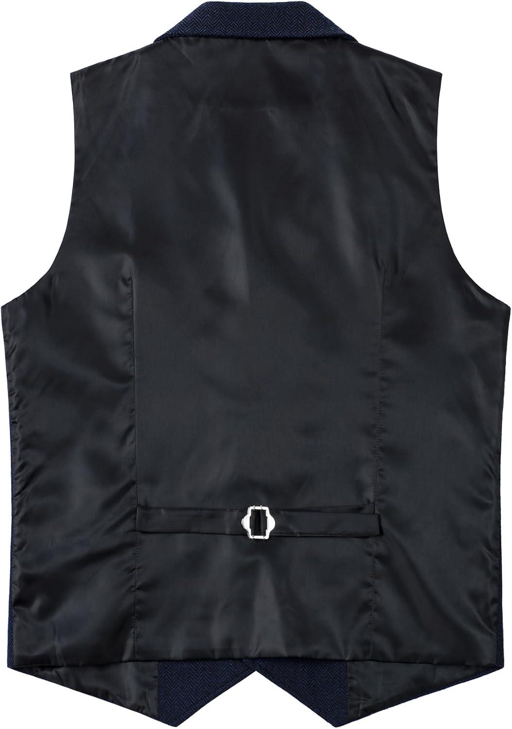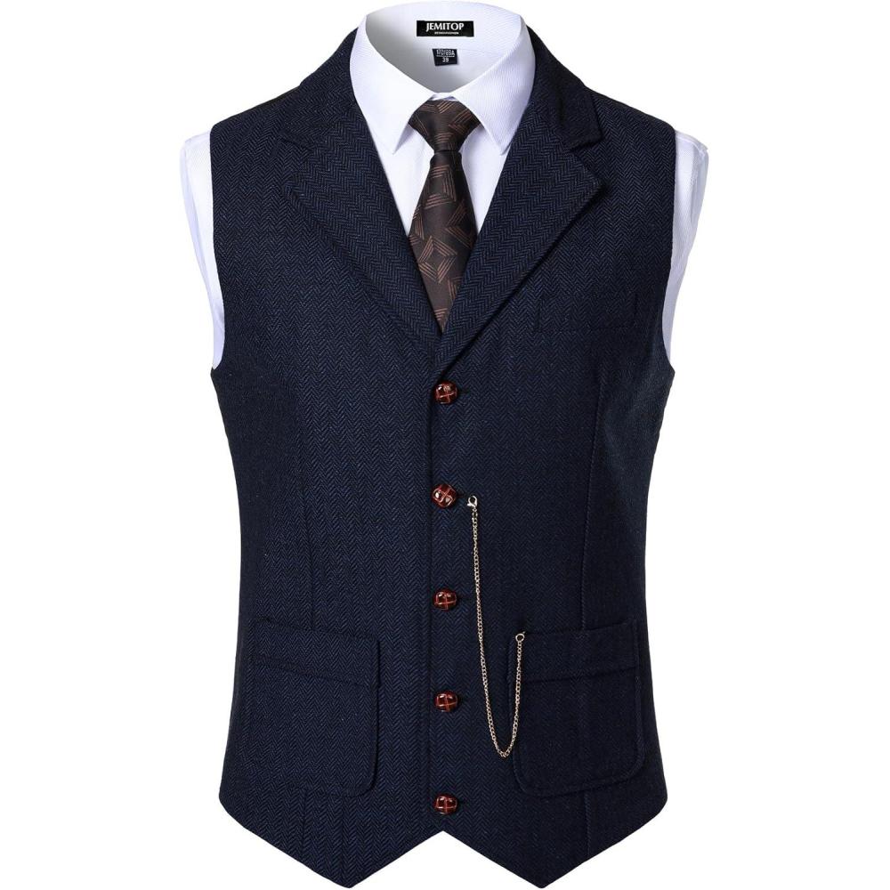 JEMITOP Men's Vintage Slim Fit Suit Vest Formal Prom Party Herringbone Pattern Waistcoat with Chain Detail(Navy Blue)