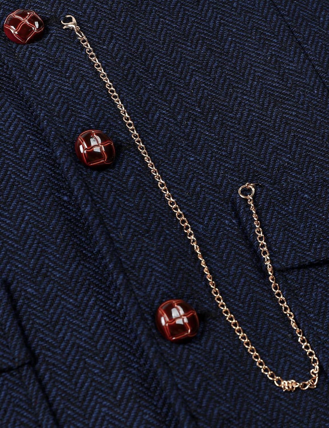 JEMITOP Men’s Vintage Slim Fit Suit Vest Formal Prom Party Herringbone Pattern Waistcoat with Chain Detail(Navy Blue)