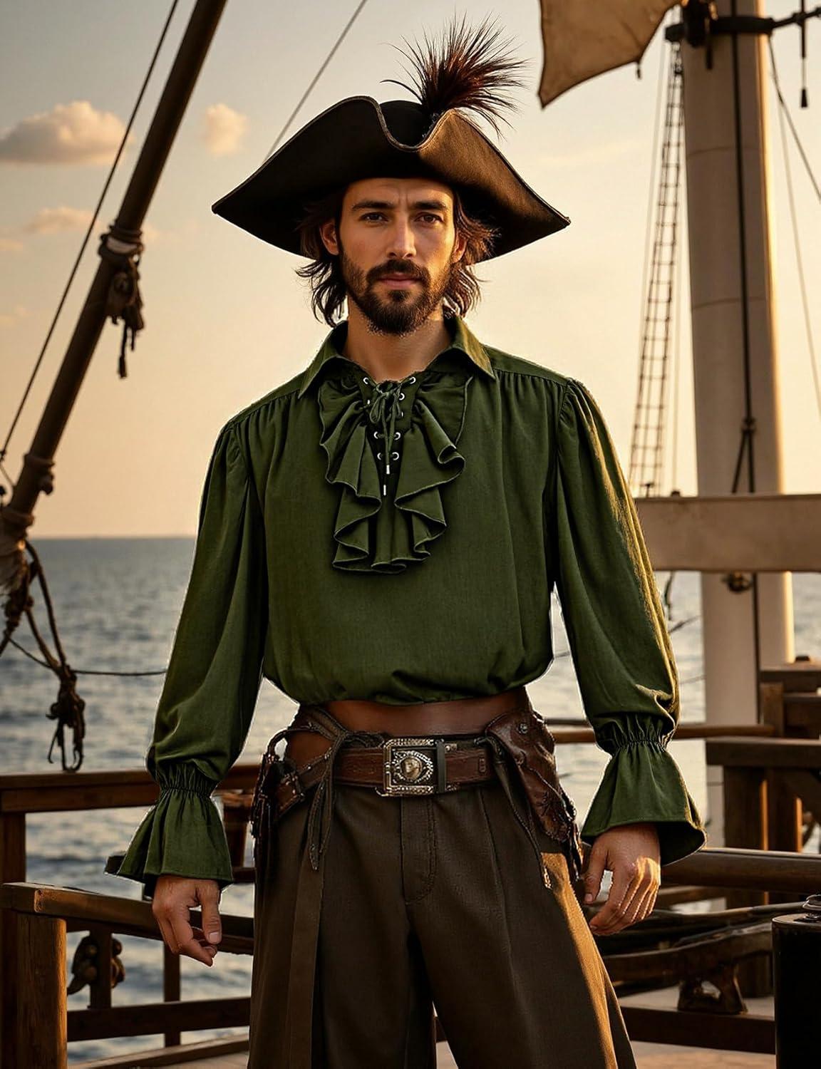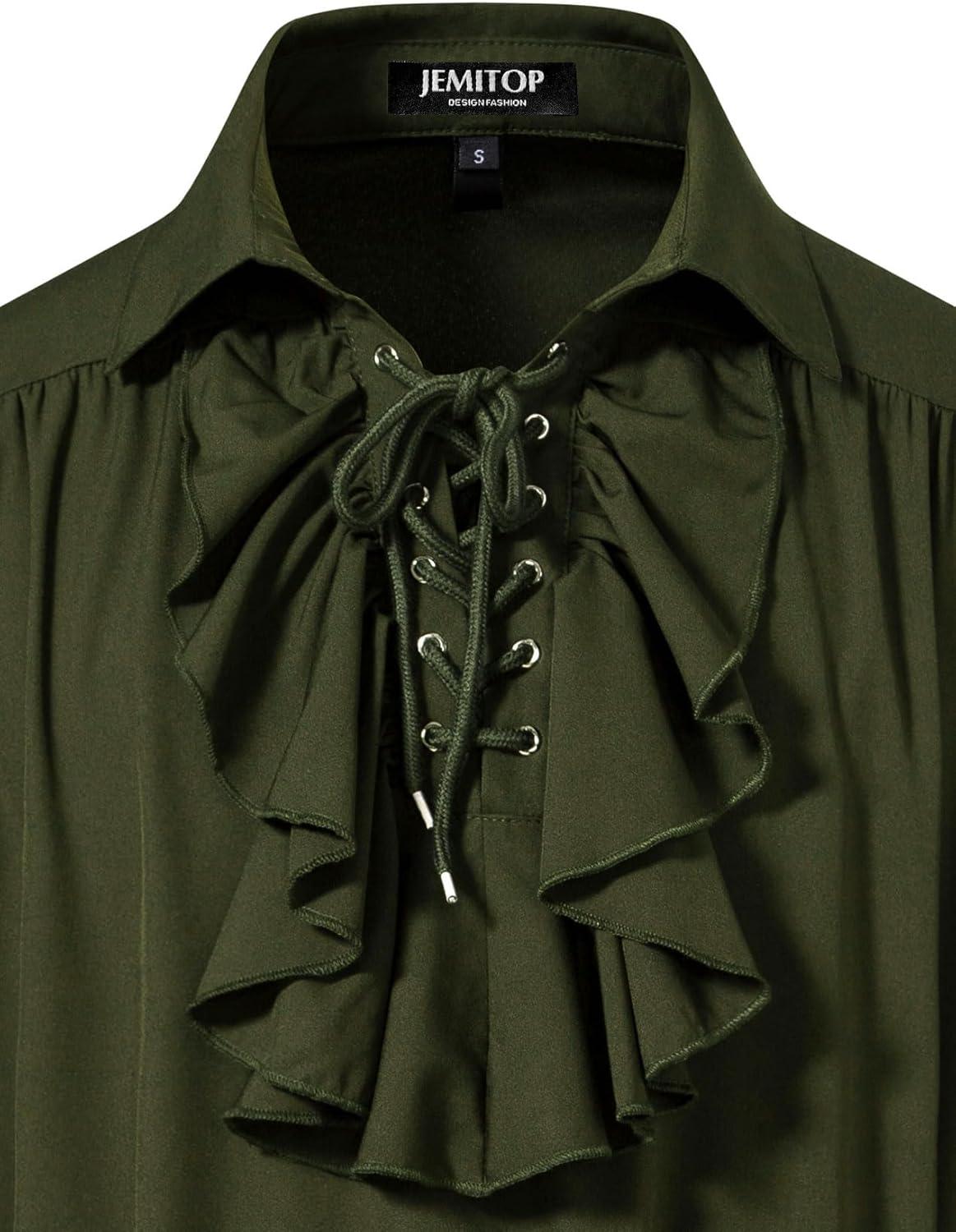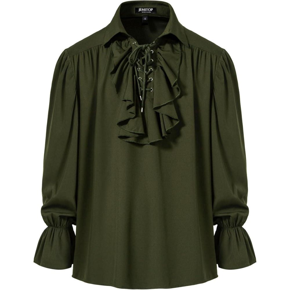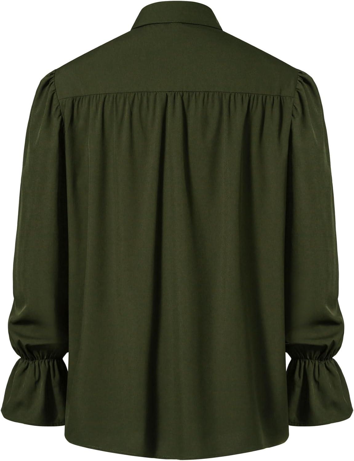 Mens Pirate Vampire Ruffle Shirt Elastic Cuff Poet Victorian Steampunk Renaissance Medieval Cosplay Costume(Army Green)