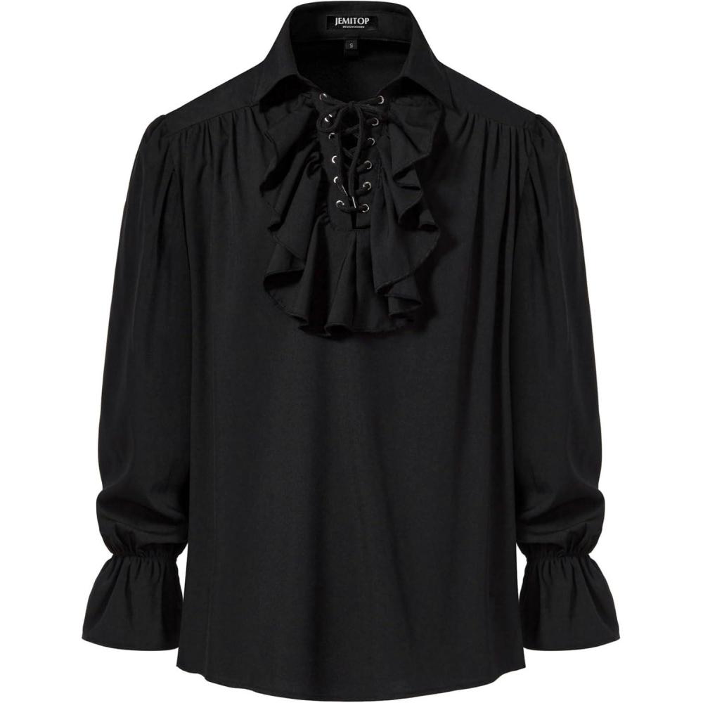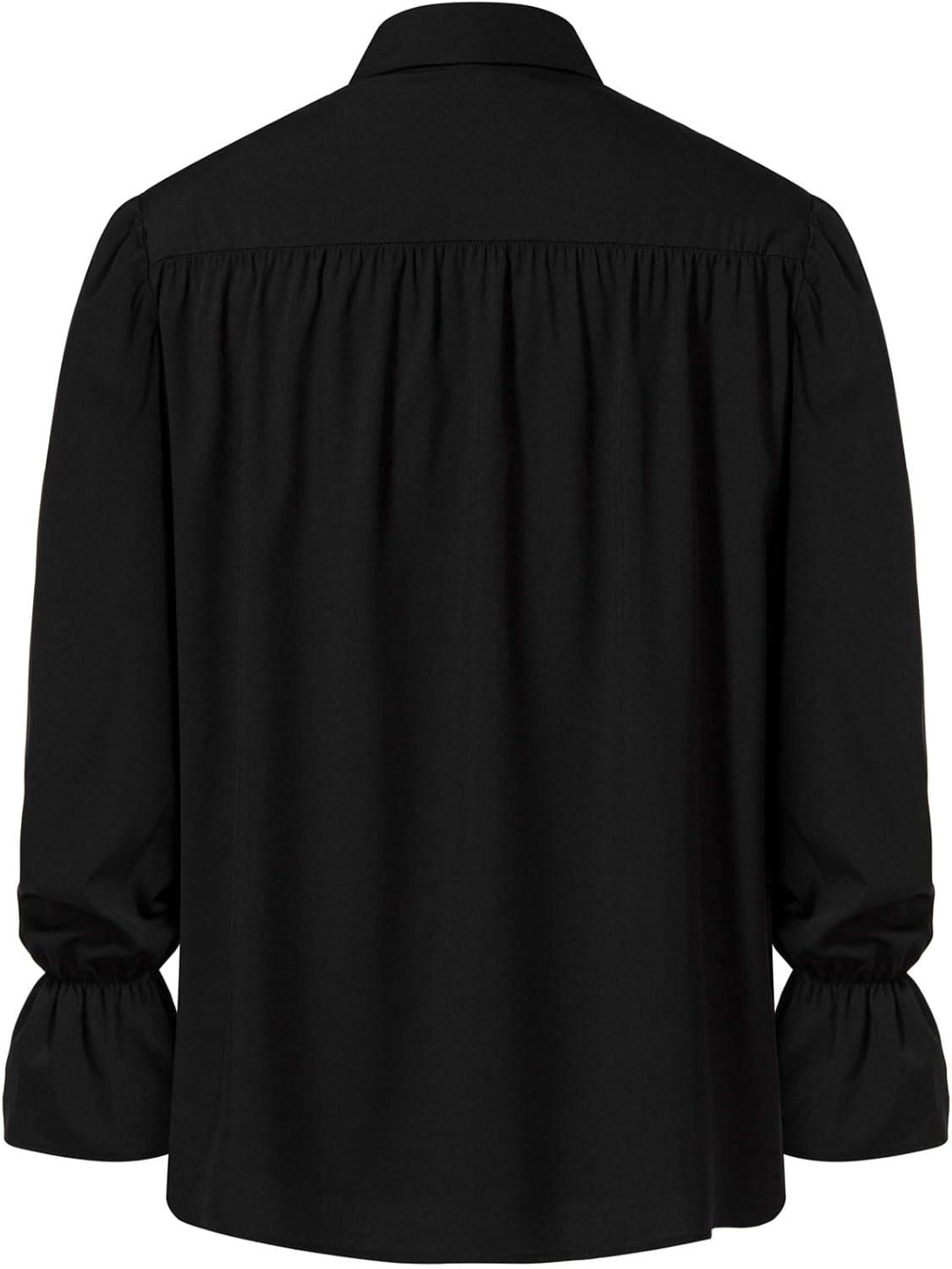 Mens Pirate Vampire Ruffle Shirt Elastic Cuff Poet Victorian Steampunk Renaissance Medieval Cosplay Costume(Black)