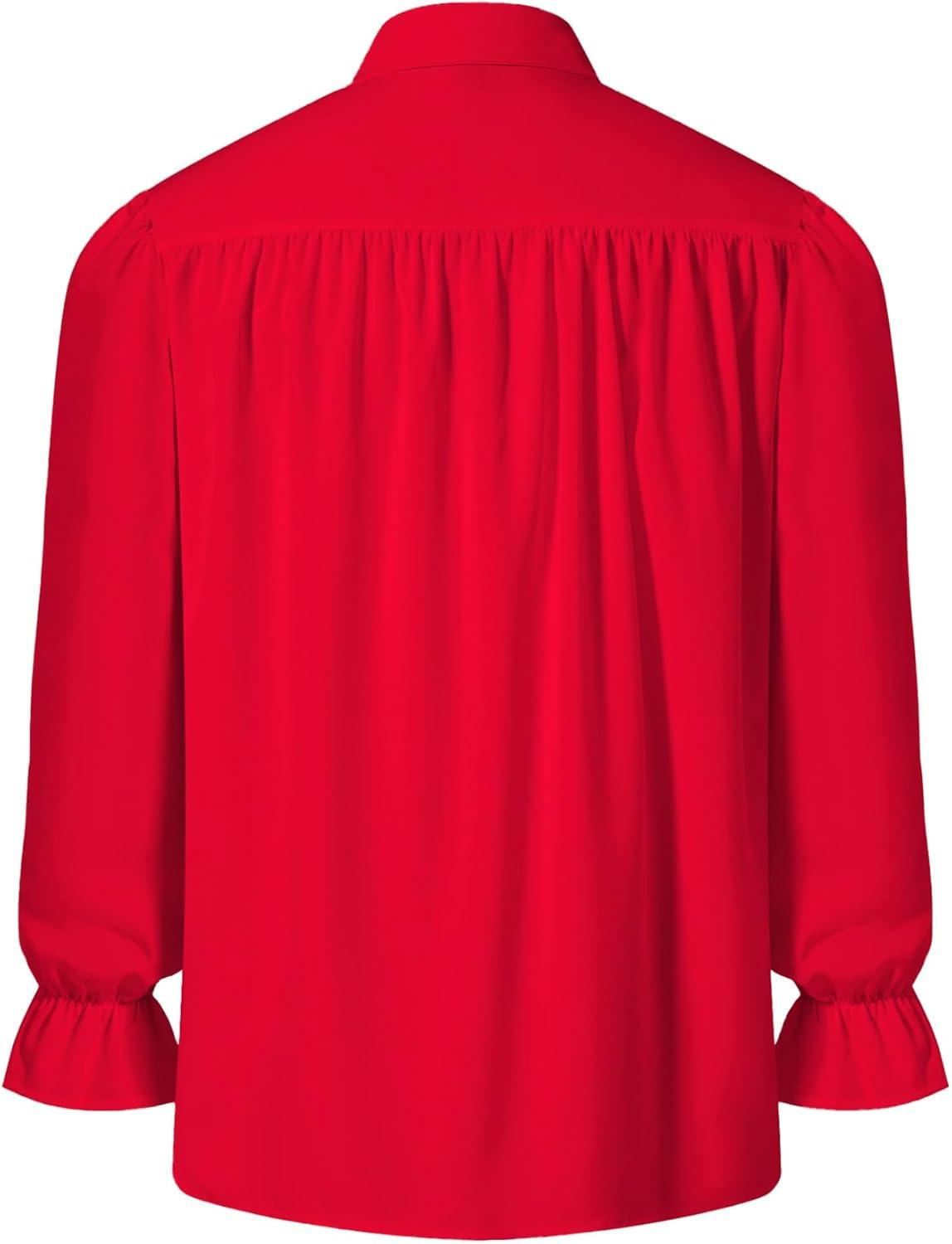 Mens Pirate Vampire Ruffle Shirt Elastic Cuff Poet Victorian Steampunk Renaissance Medieval Cosplay Costume(Classic Red)