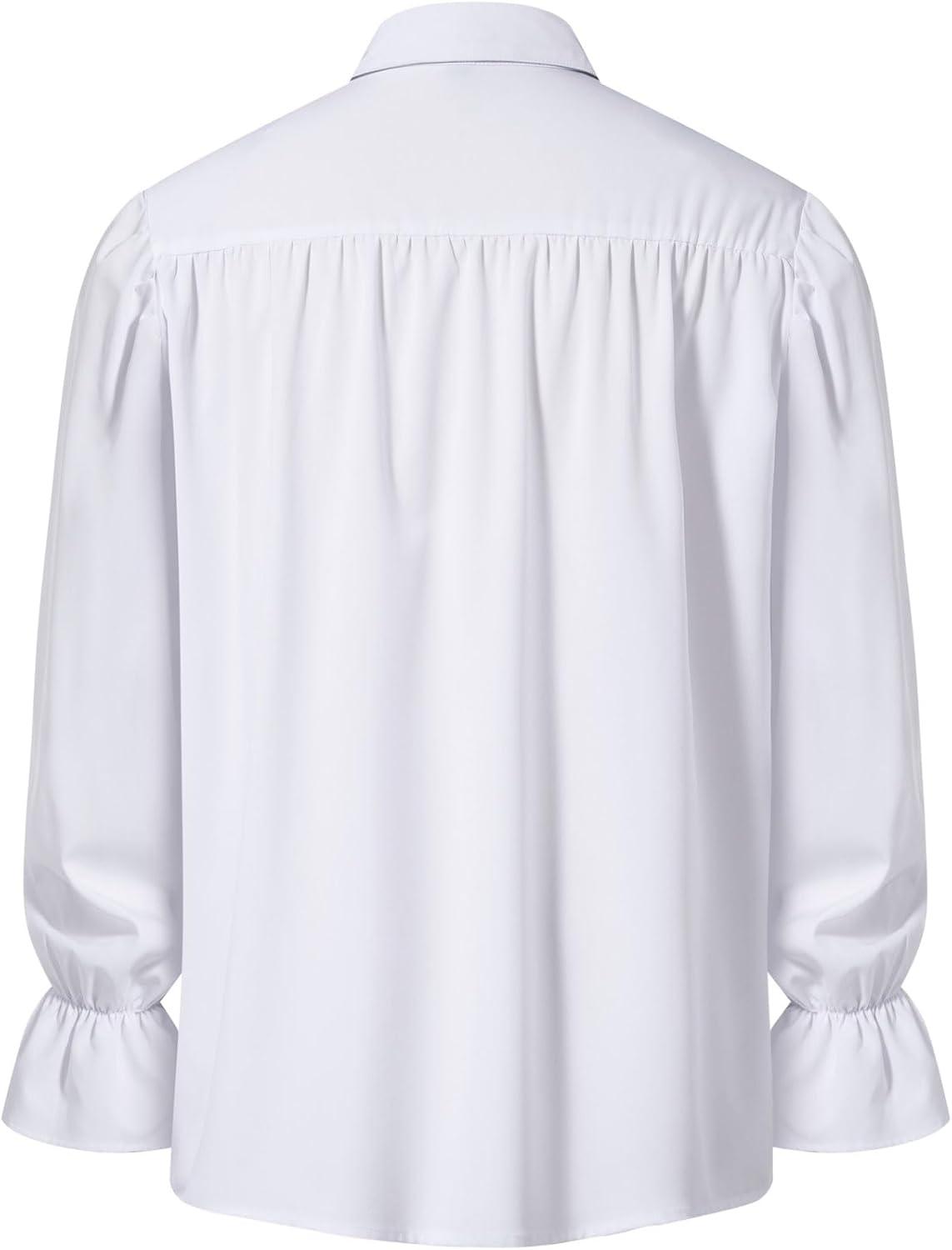 Mens Pirate Vampire Ruffle Shirt Elastic Cuff Poet Victorian Steampunk Renaissance Medieval Cosplay Costume(White)