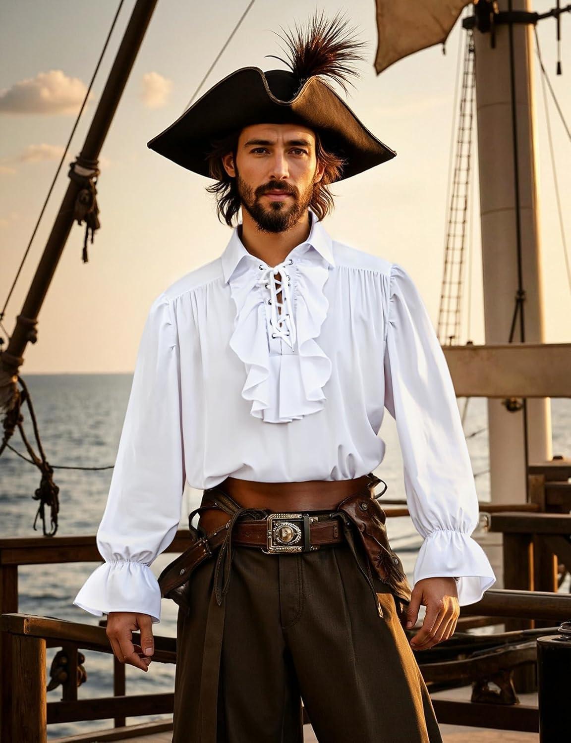 Score big savings on Mens Pirate Vampire Ruffle Shirt Elastic Cuff Poet Victorian Steampunk Renaissance Medieval Cosplay Costume(White) during our back-to-school sale. Limited quantities available.