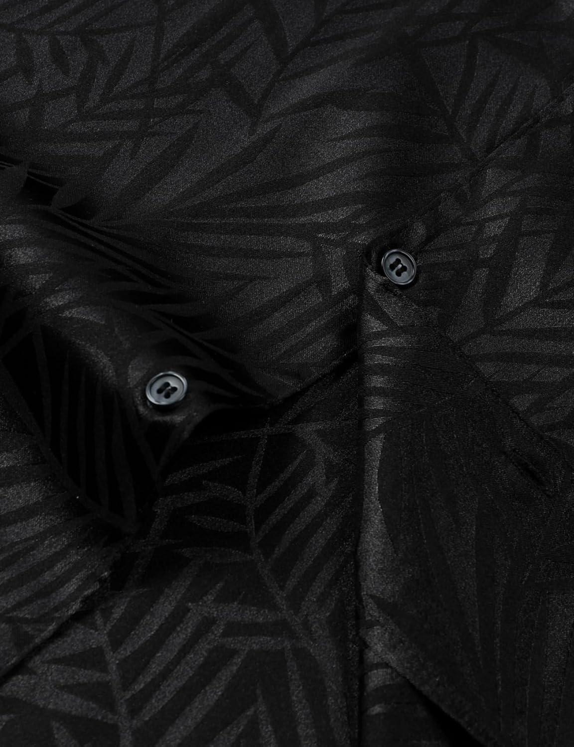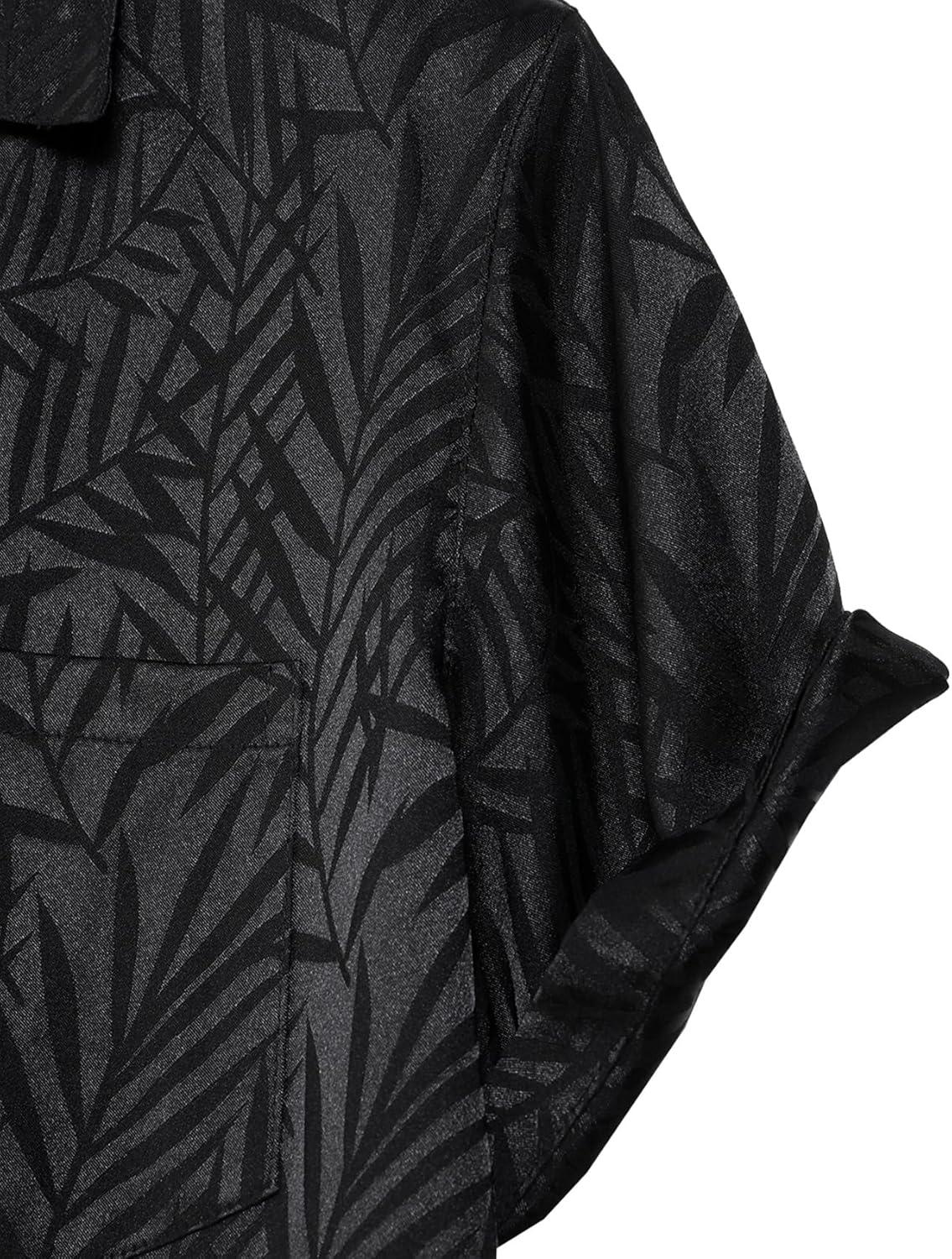 Mens Shiny Satin Silk-Like Designer Shirt Summer Regular Fit Short Sleeve Button Up Floral Shirt with Pocket(Black)