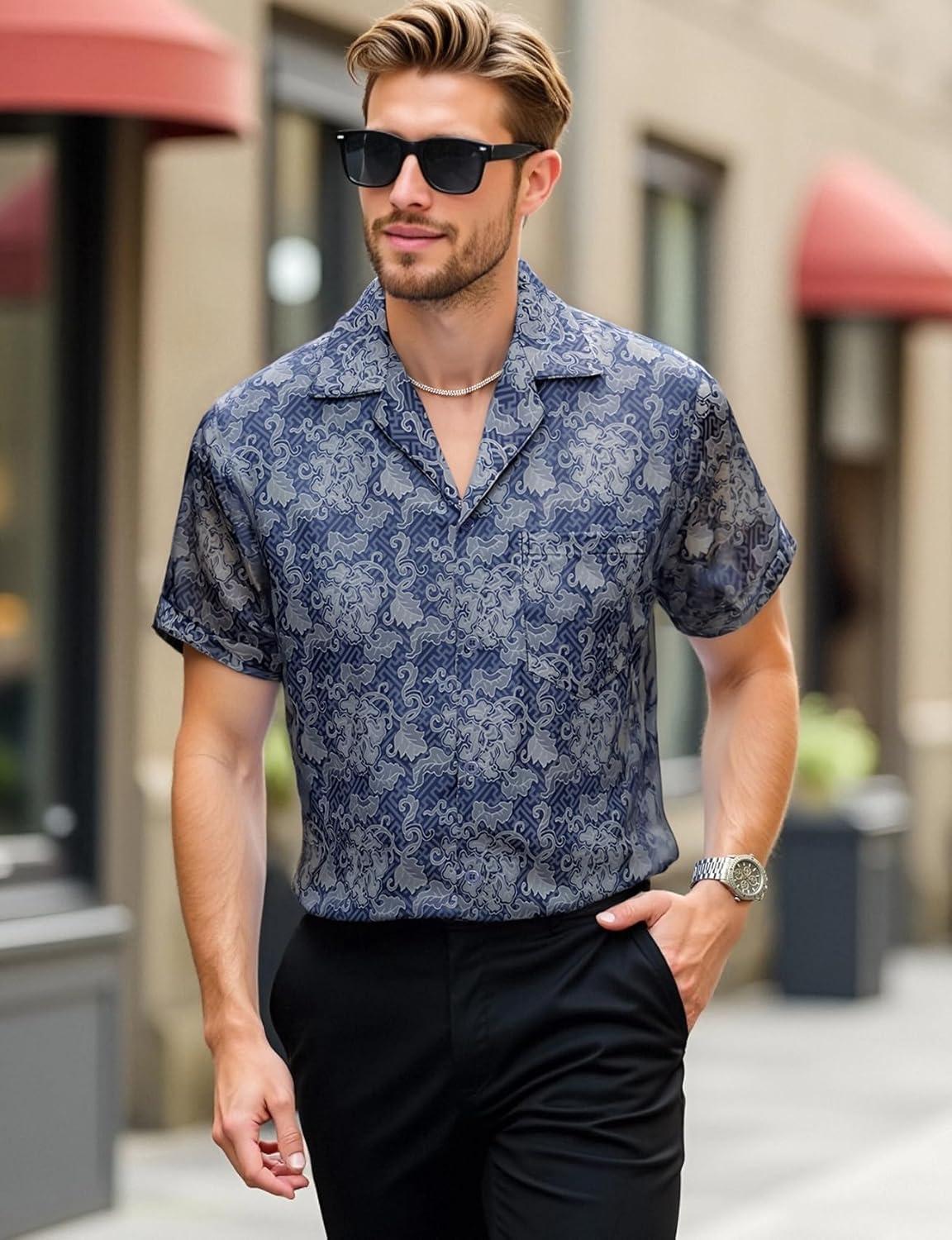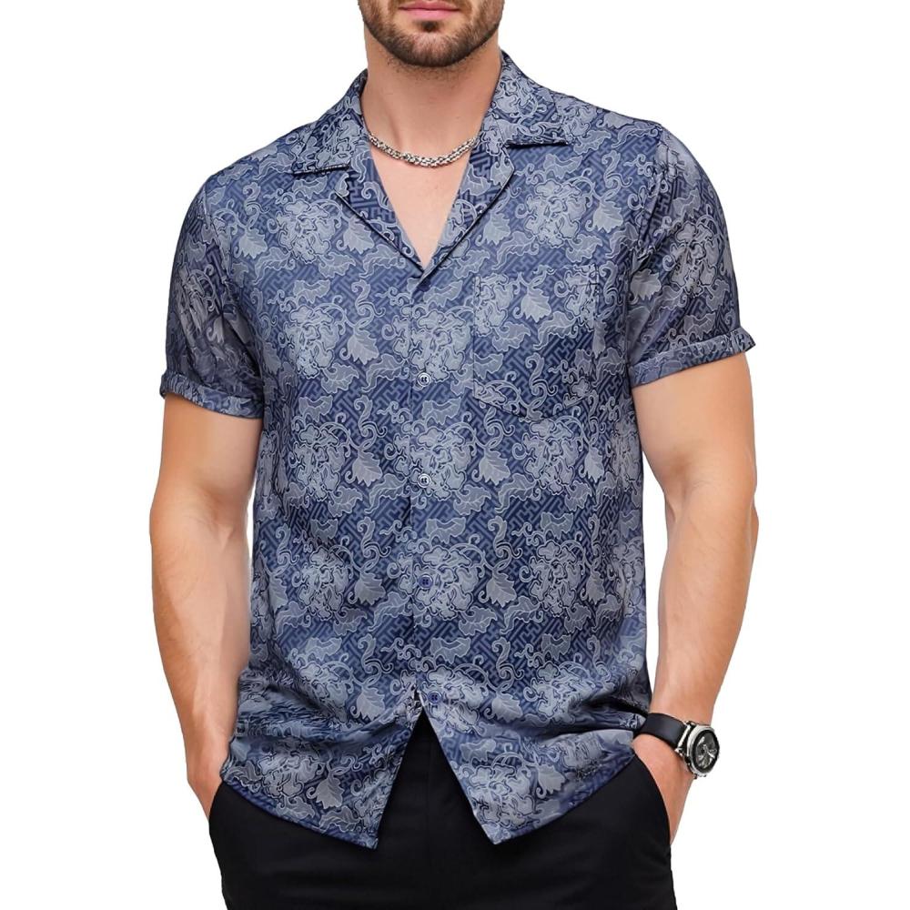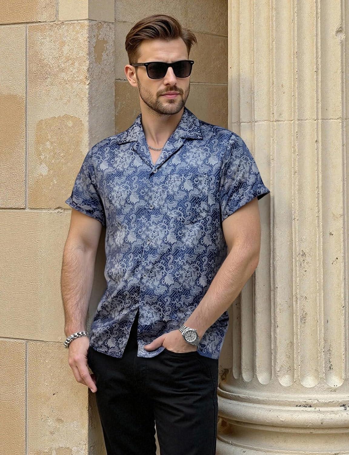 Be the first to review “Mens Shiny Satin Silk-Like Designer Shirt Summer Regular Fit Short Sleeve Button Up Floral Shirt with Pocket(Blue)”