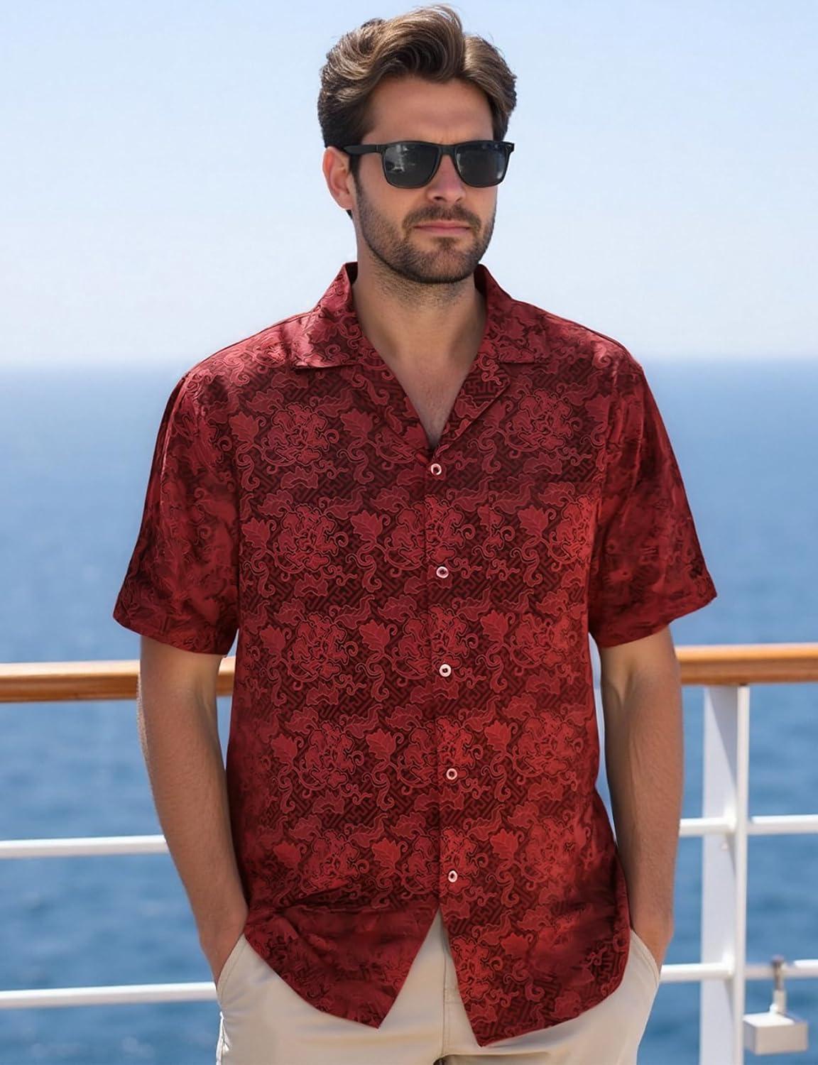 Be the first to review “Mens Shiny Satin Silk-Like Designer Shirt Summer Regular Fit Short Sleeve Button Up Floral Shirt with Pocket(Red)”