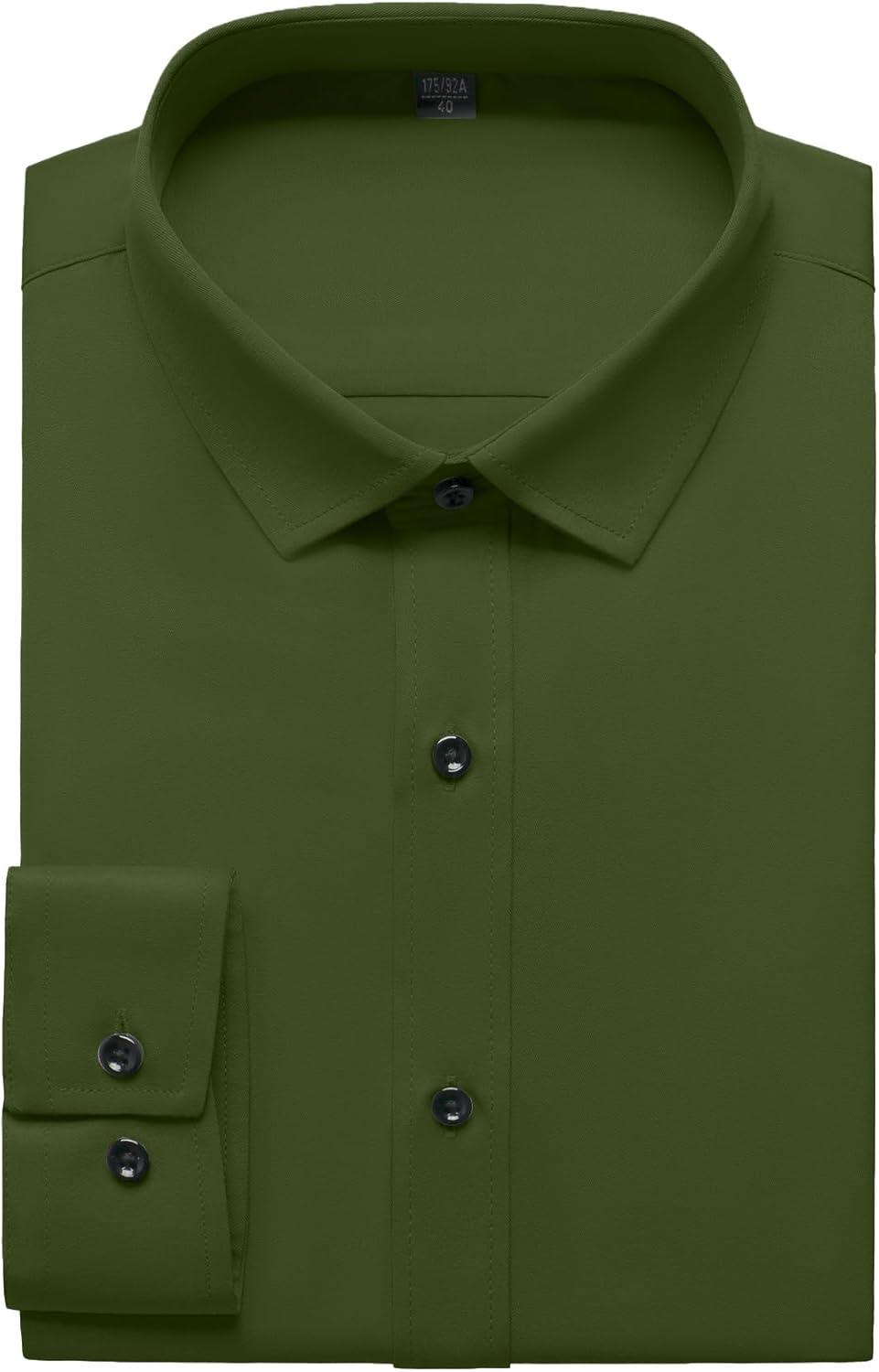 Men's Stretch Wrinkle Free Dress Shirts Formal Prom Wedding Long Sleeve Button Down Shirts(Army Green)