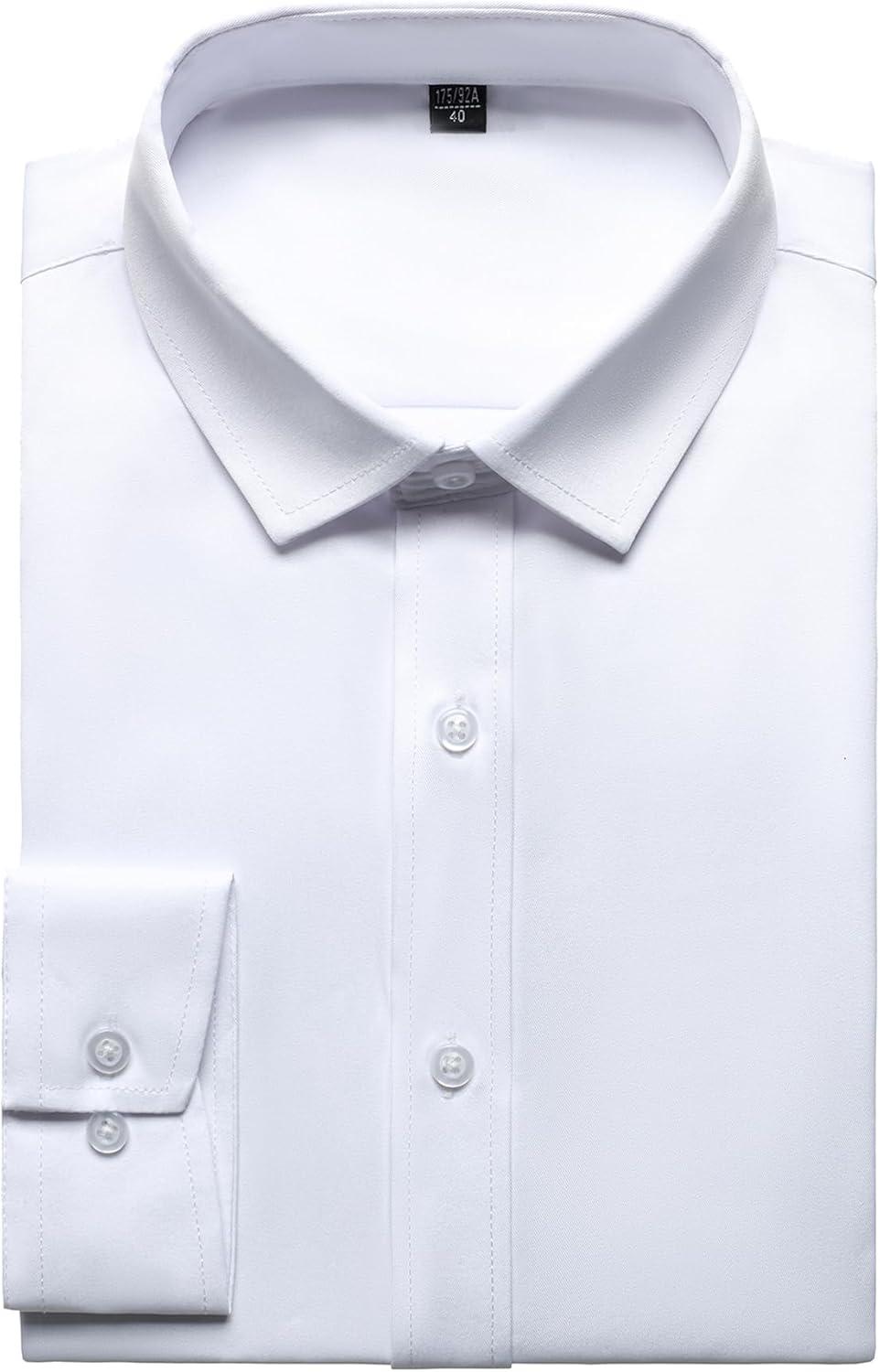 Men's Stretch Wrinkle Free Dress Shirts Formal Prom Wedding Long Sleeve Button Down Shirts(Solid White)
